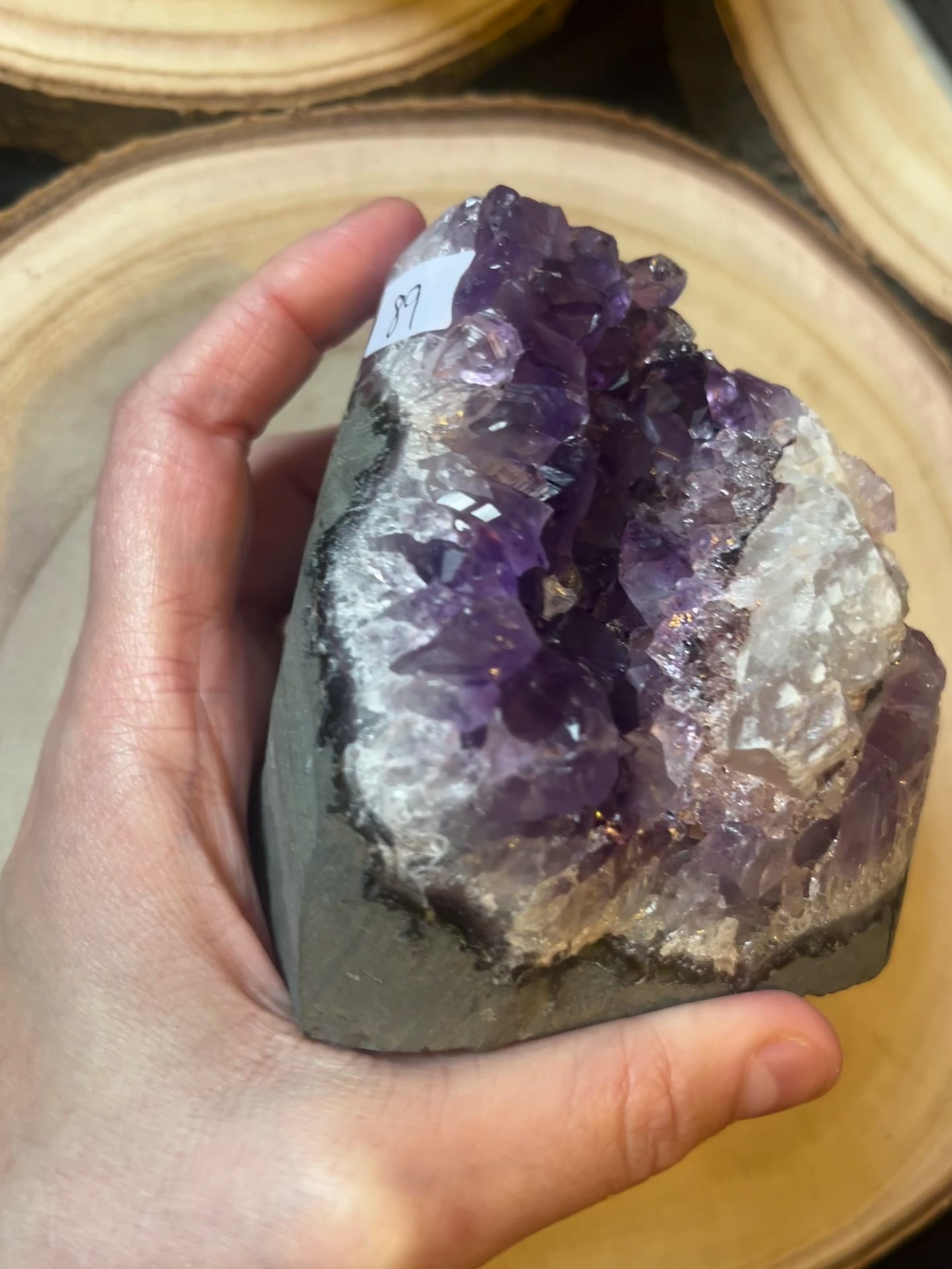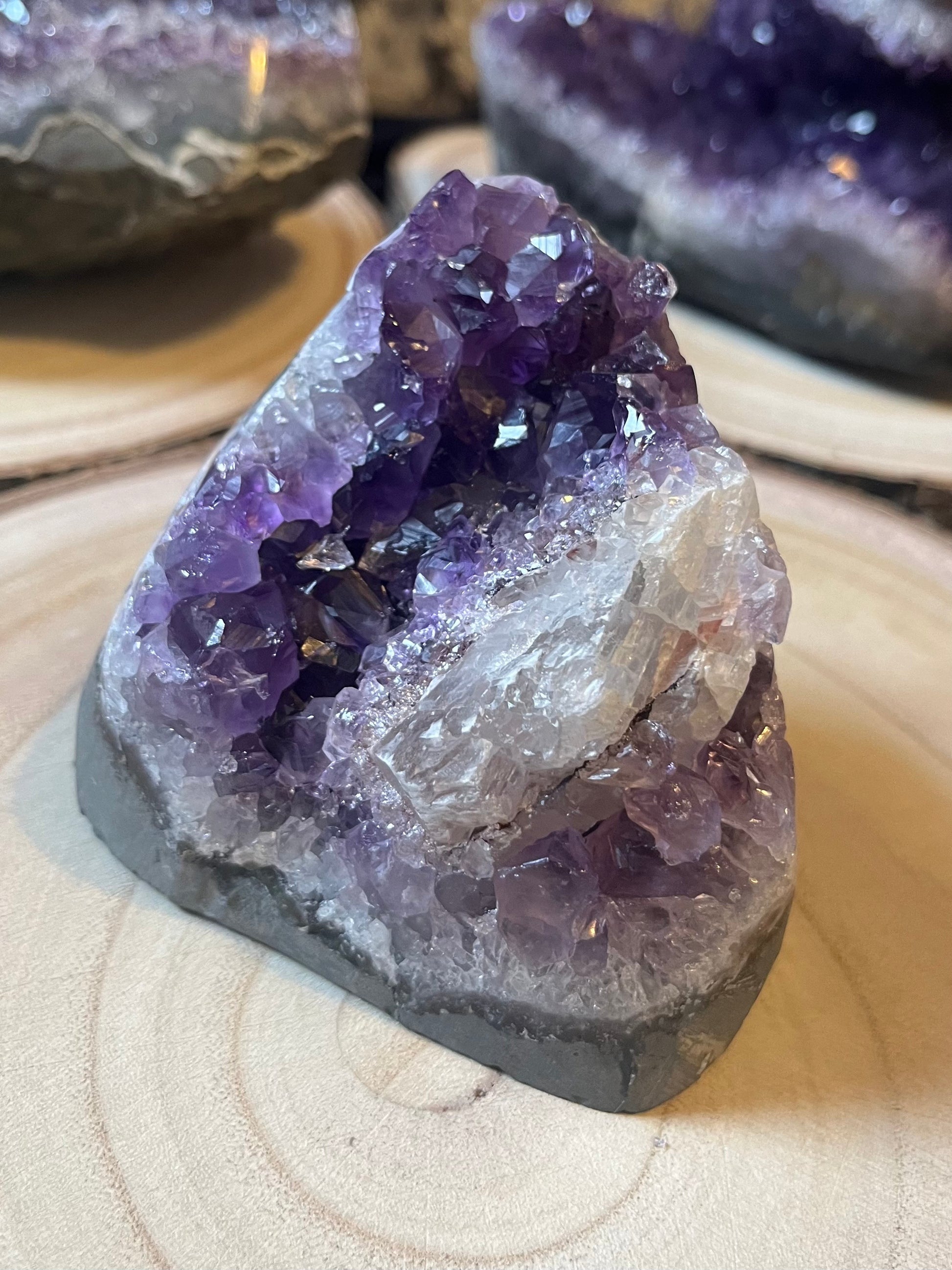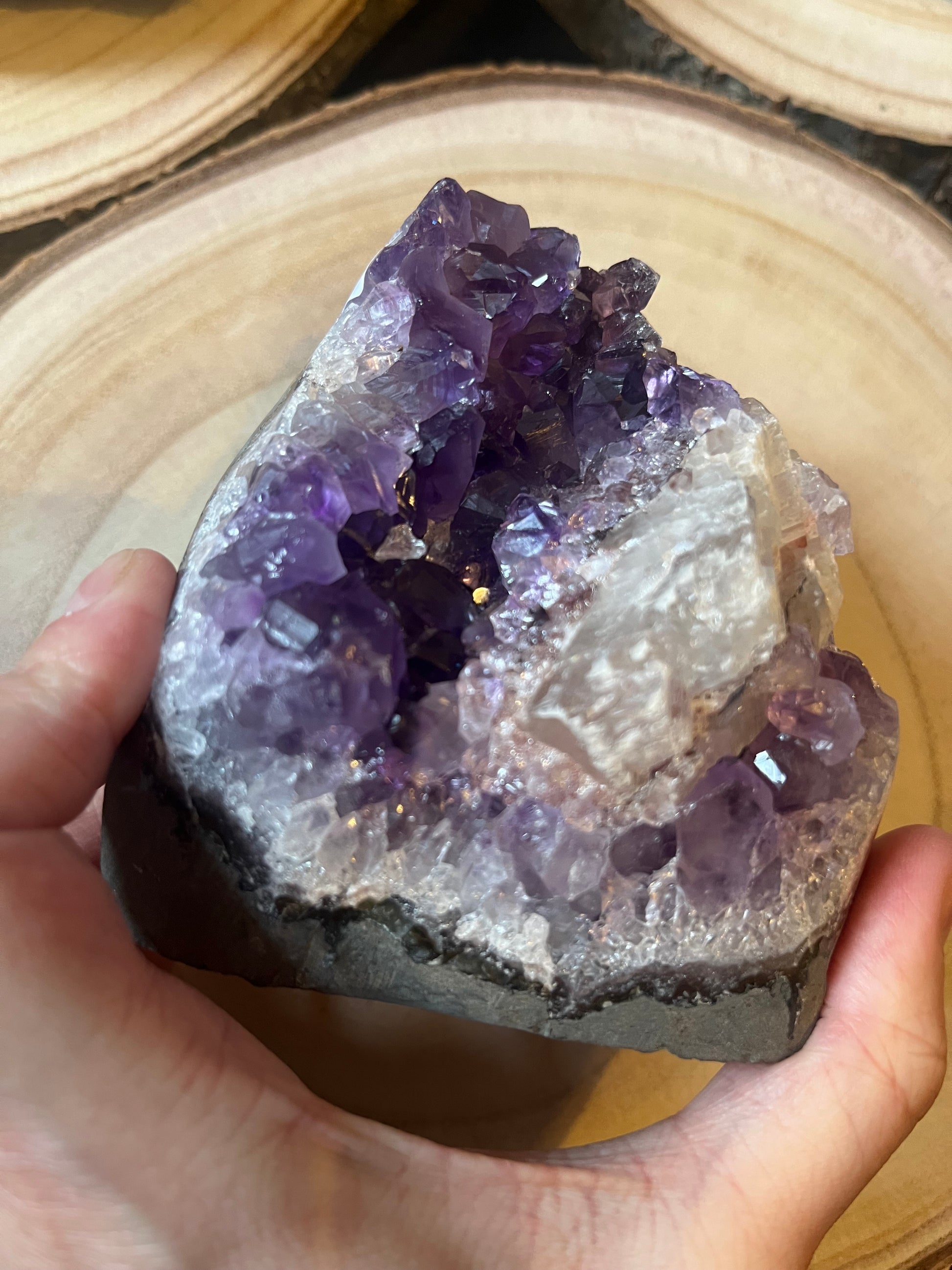 A grade Amethyst cut base with calcite. 660g