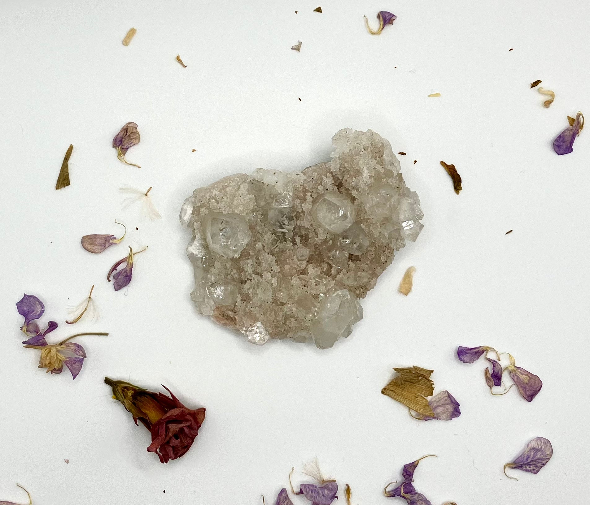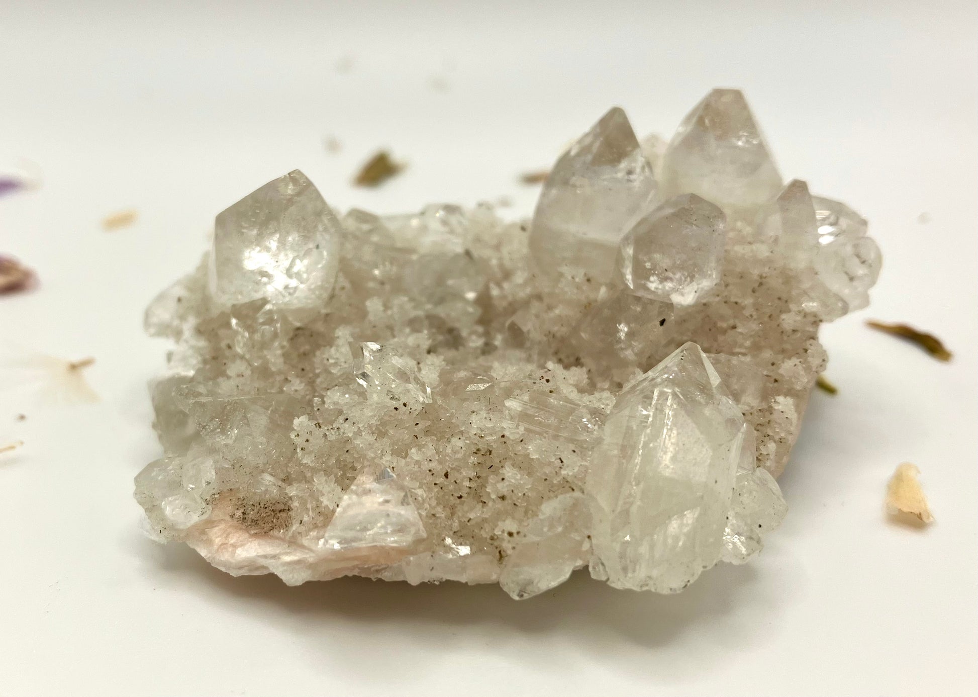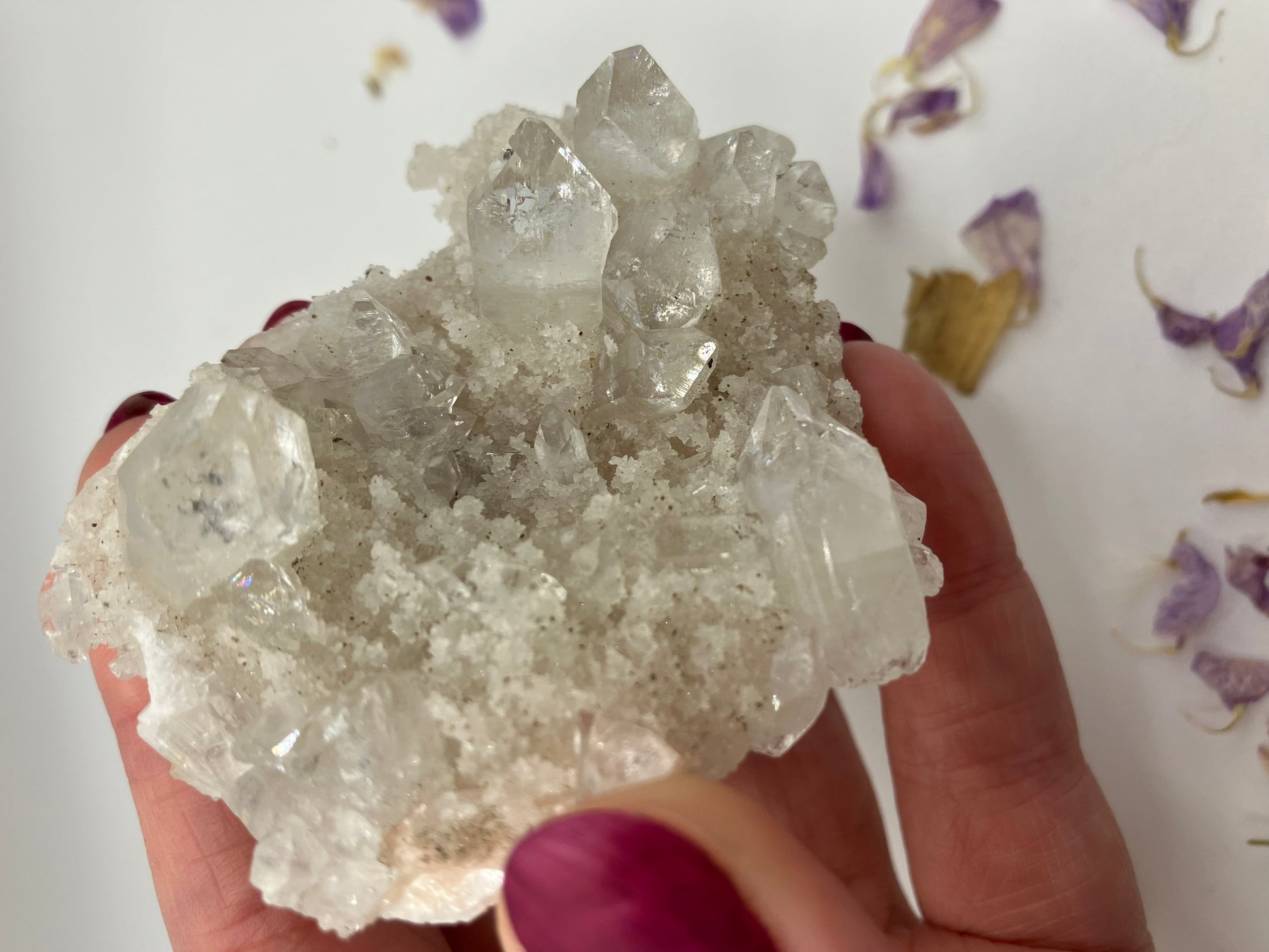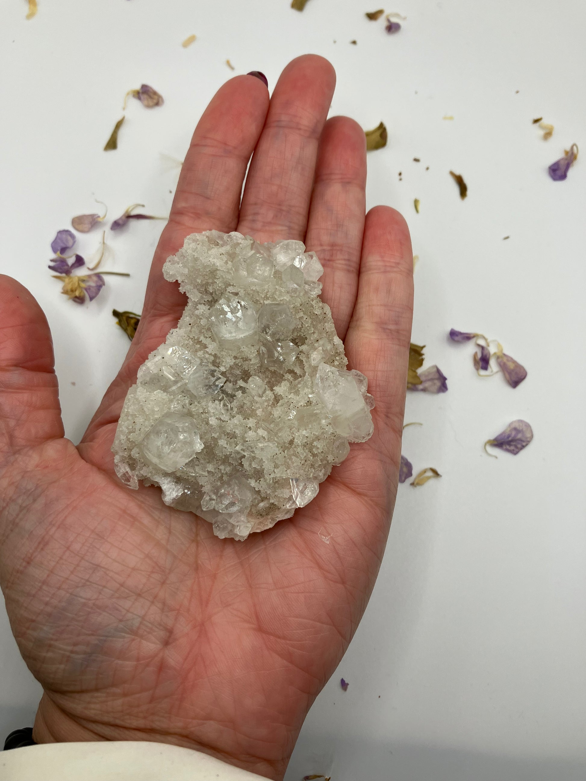 Apophyllite can help us reflect on our behaviour and pinpoint areas we can work on for our own highest good. Physically it works well with the chest area and chest problems such as asthma.