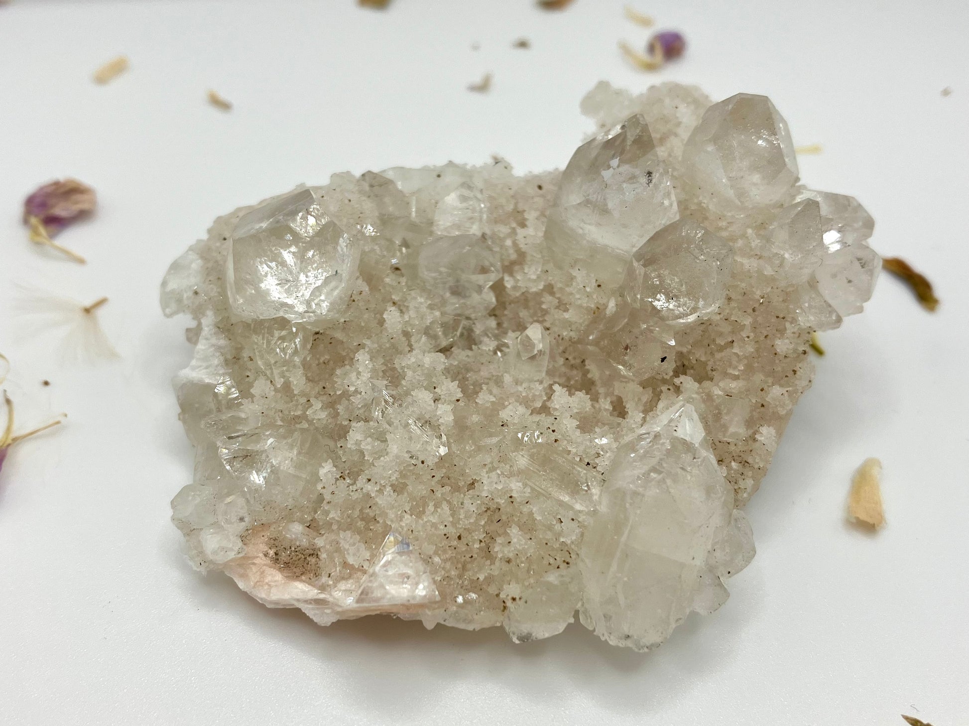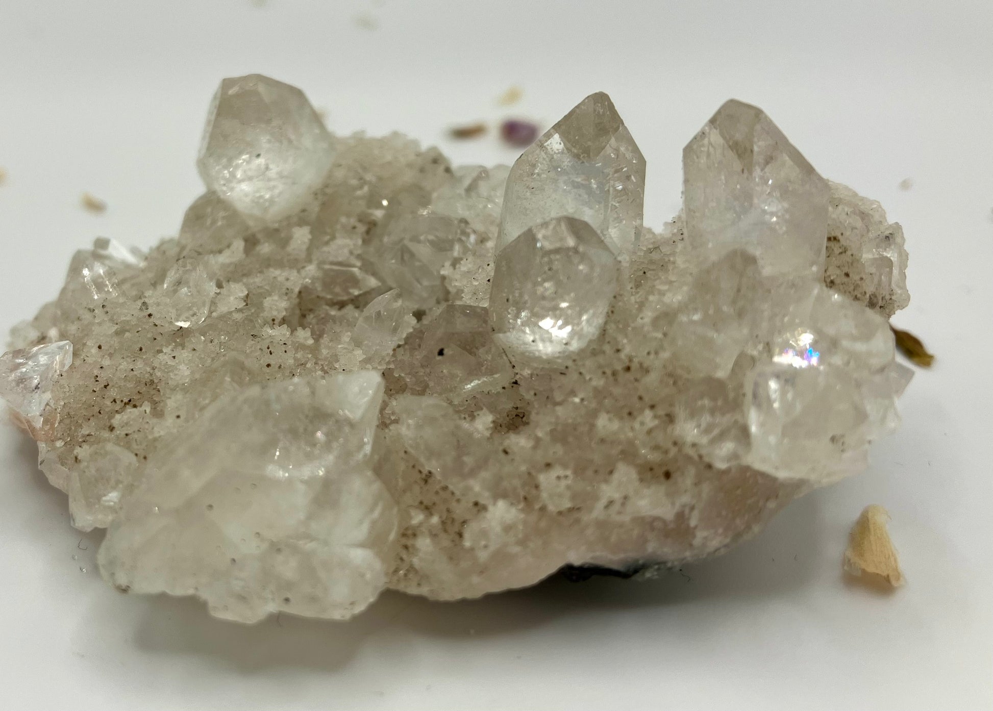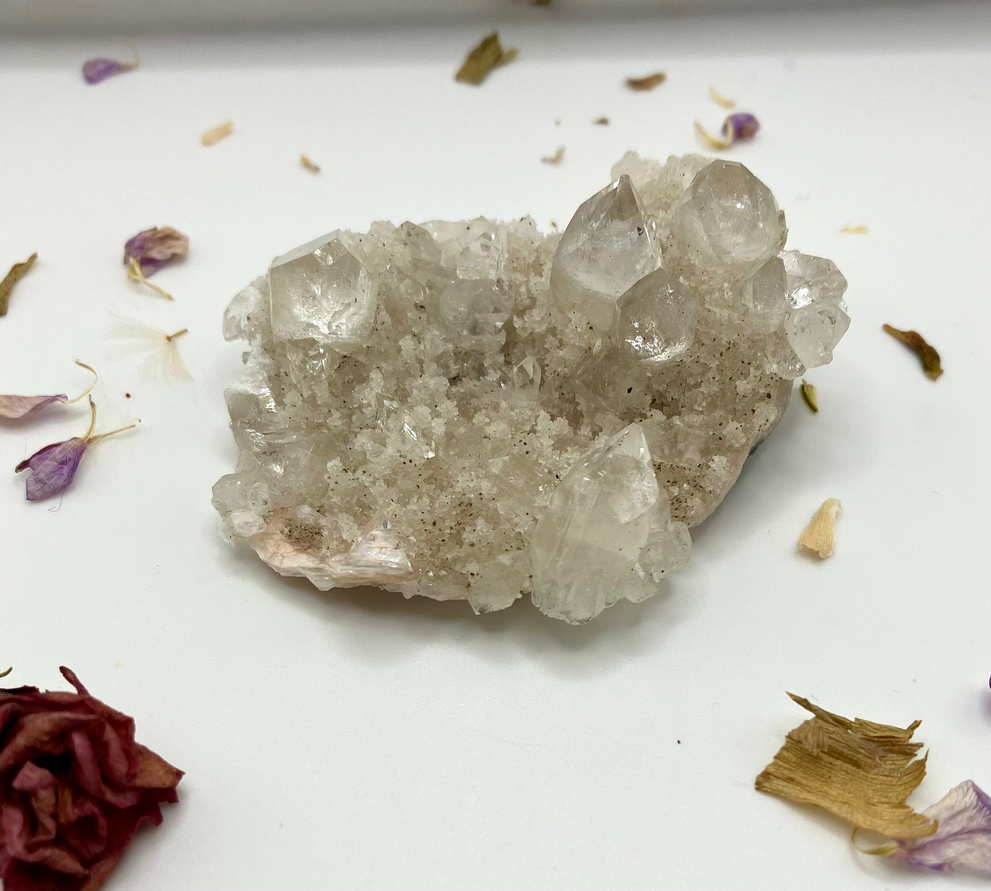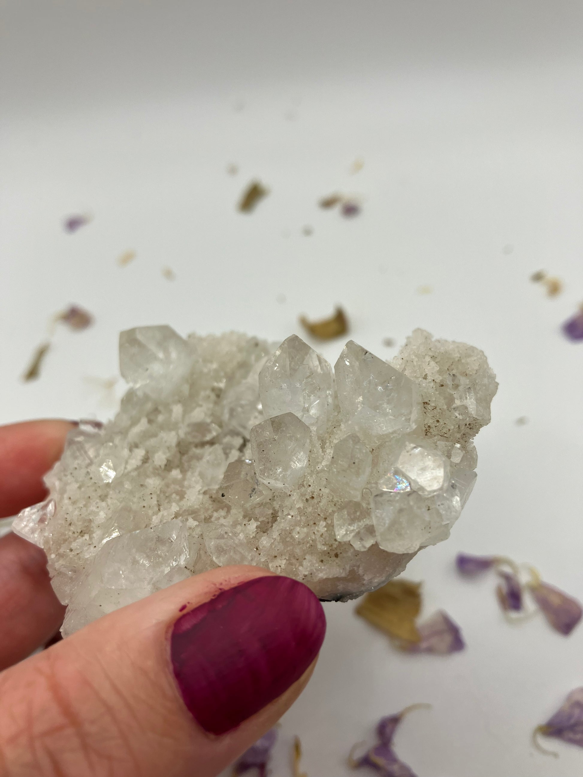 Apophyllite can help us reflect on our behaviour and pinpoint areas we can work on for our own highest good. Physically it works well with the chest area and chest problems such as asthma.