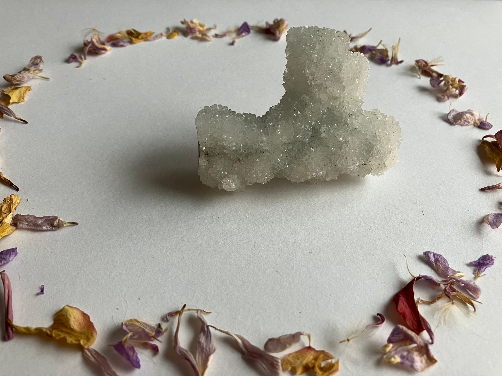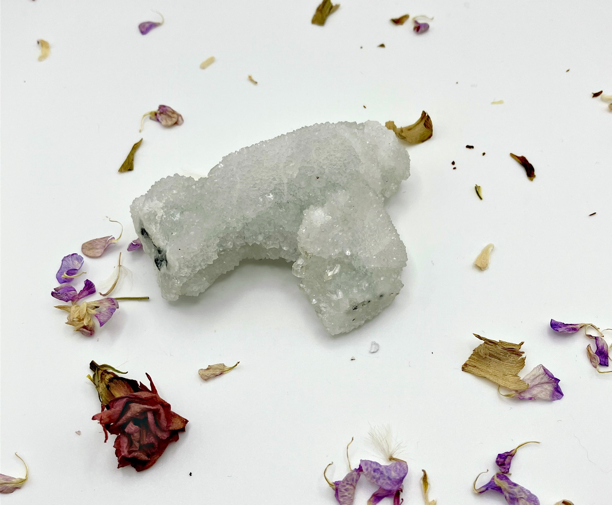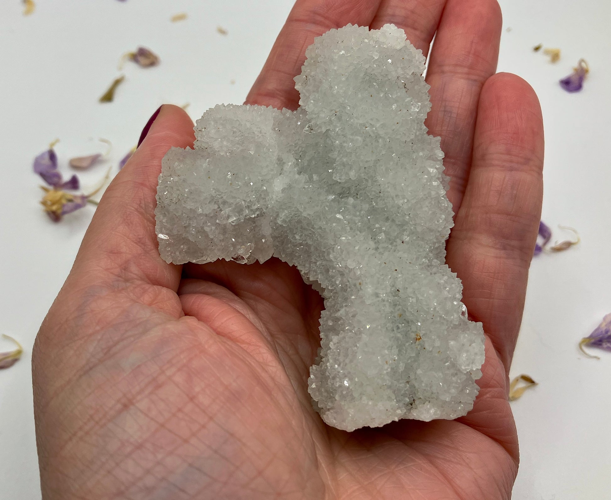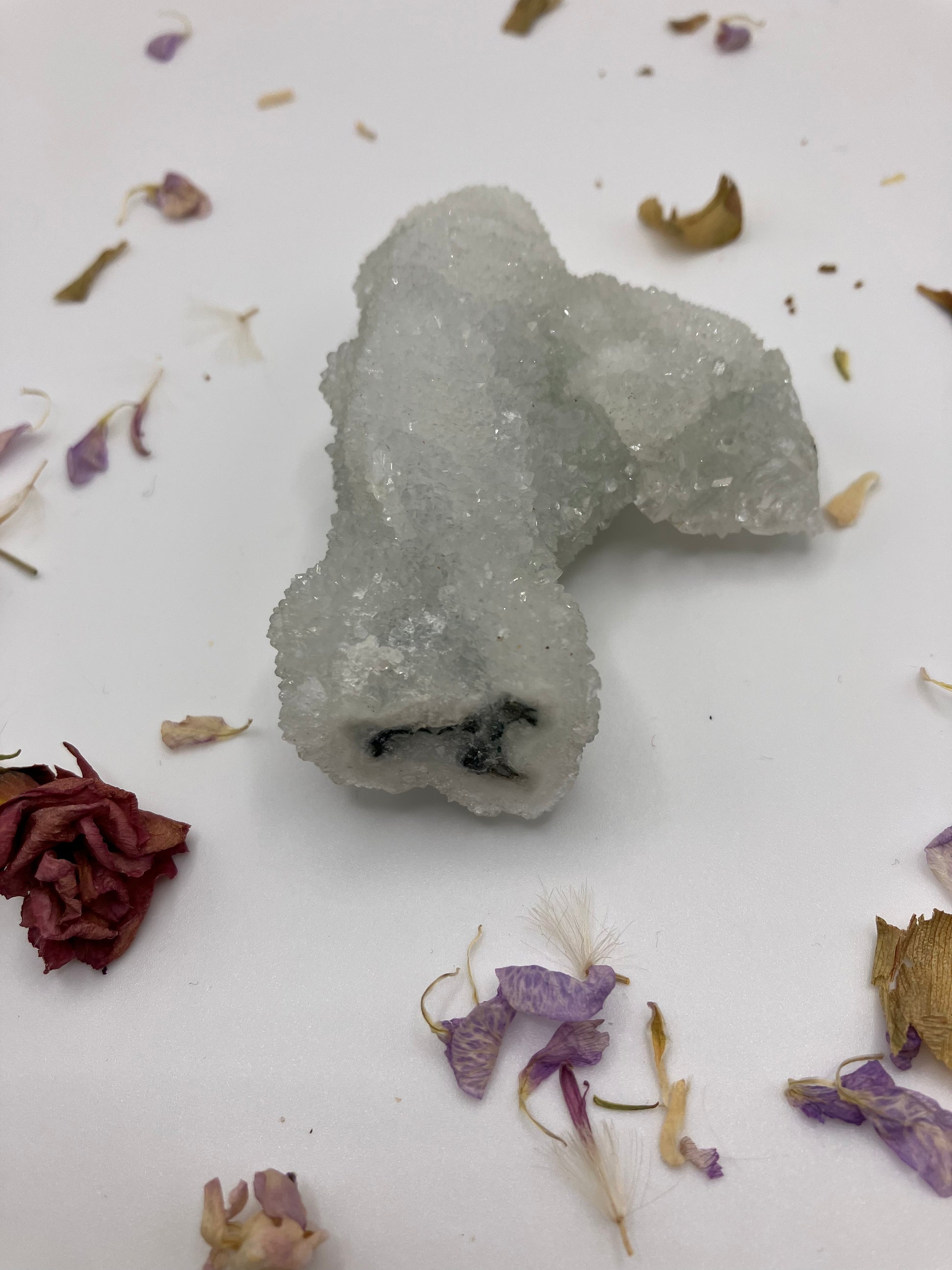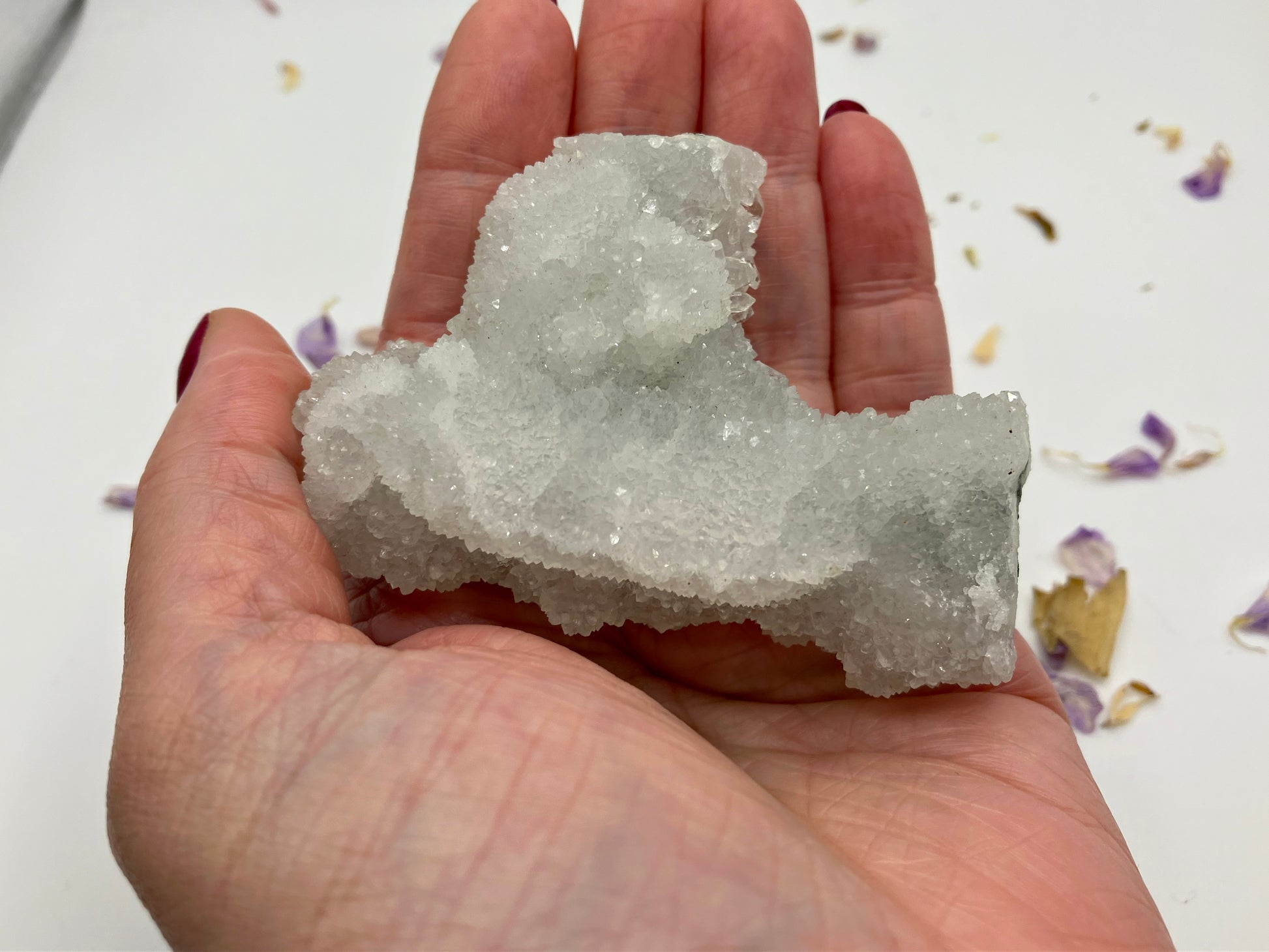 Apophyllite can help us reflect on our behaviour and pinpoint areas we can work on for our own highest good. Physically it works well with the chest area and chest problems such as asthma.