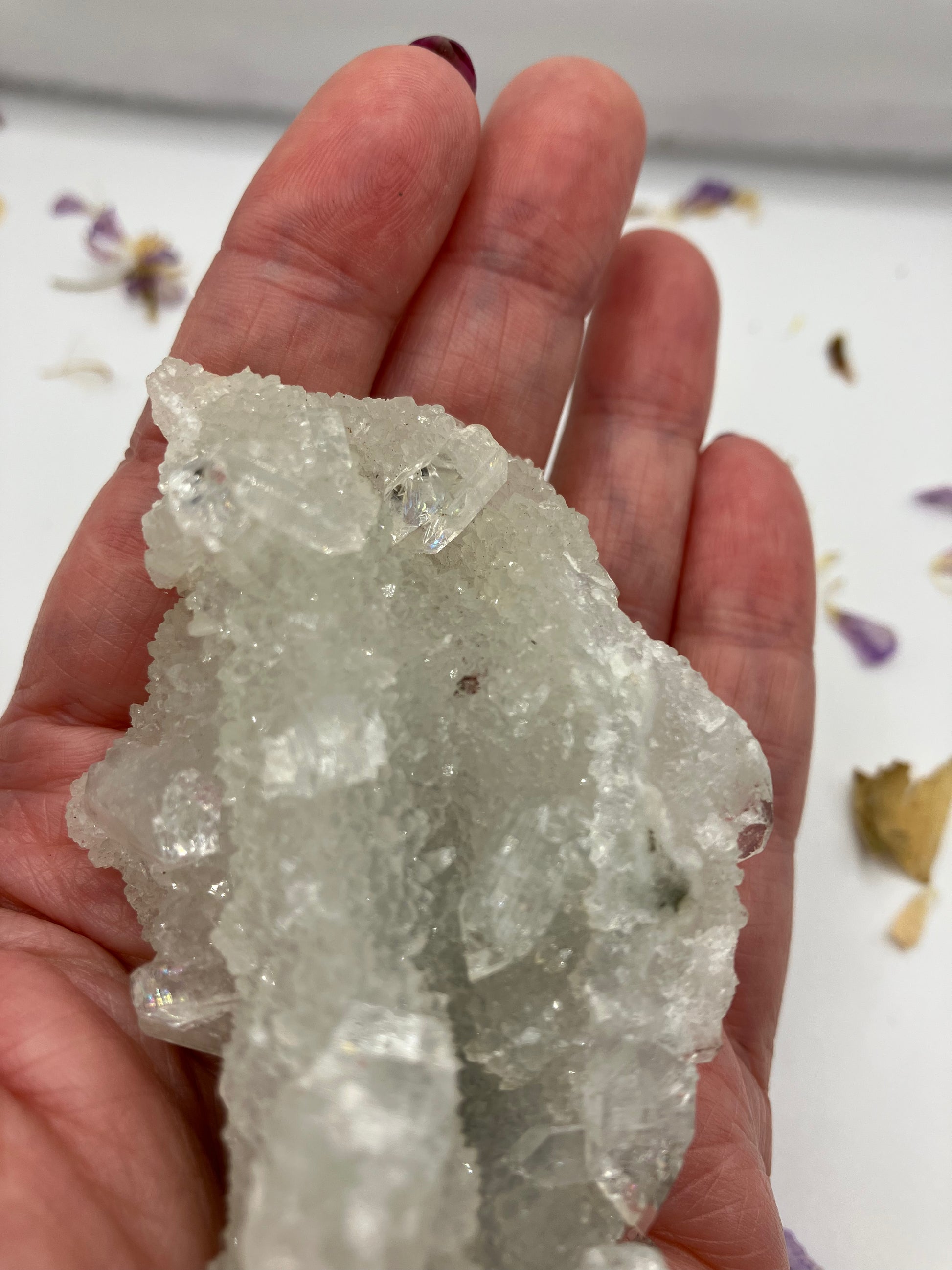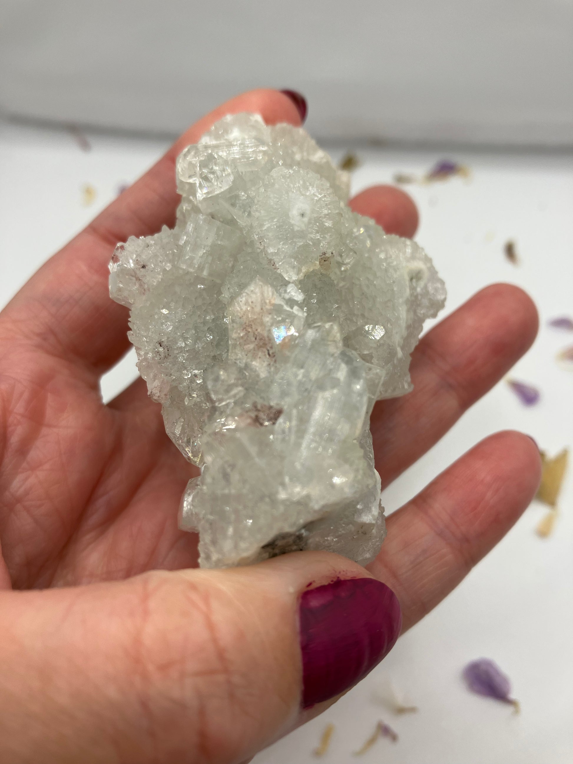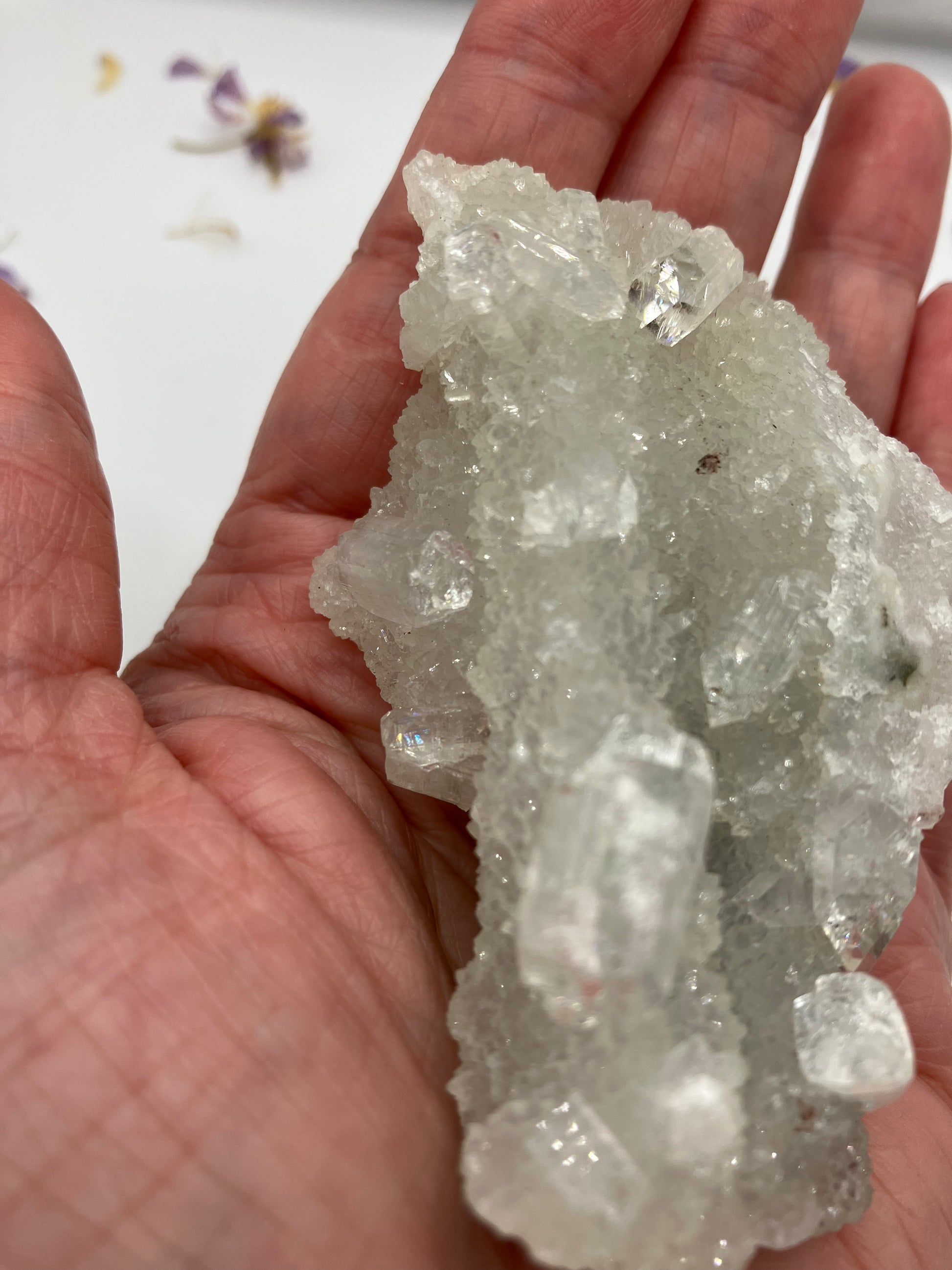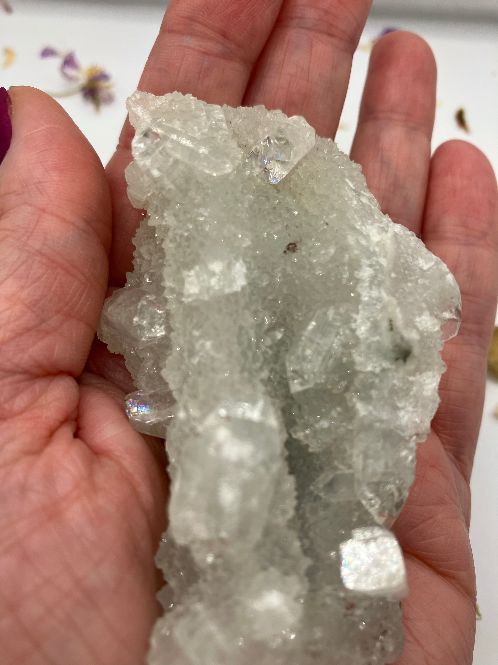 apophyllite can help us reflect on our behaviour and pinpoint areas we can work on for our own highest good. Physically it works well with the chest area and chest problems such as asthma.