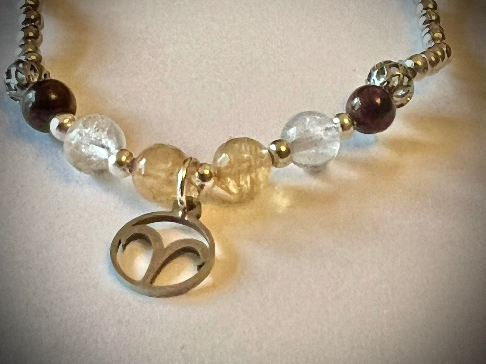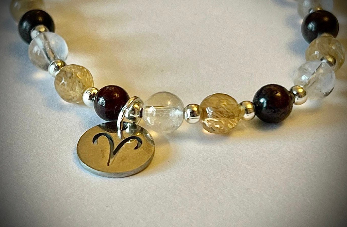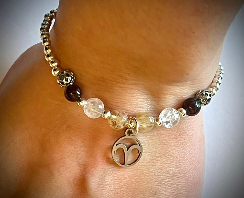 Aries charm birthstone bracelet. TWO OPTIONS. Citrine, clear quartz, garnet. Zodiac birthday gift. Self esteem, self confidence
