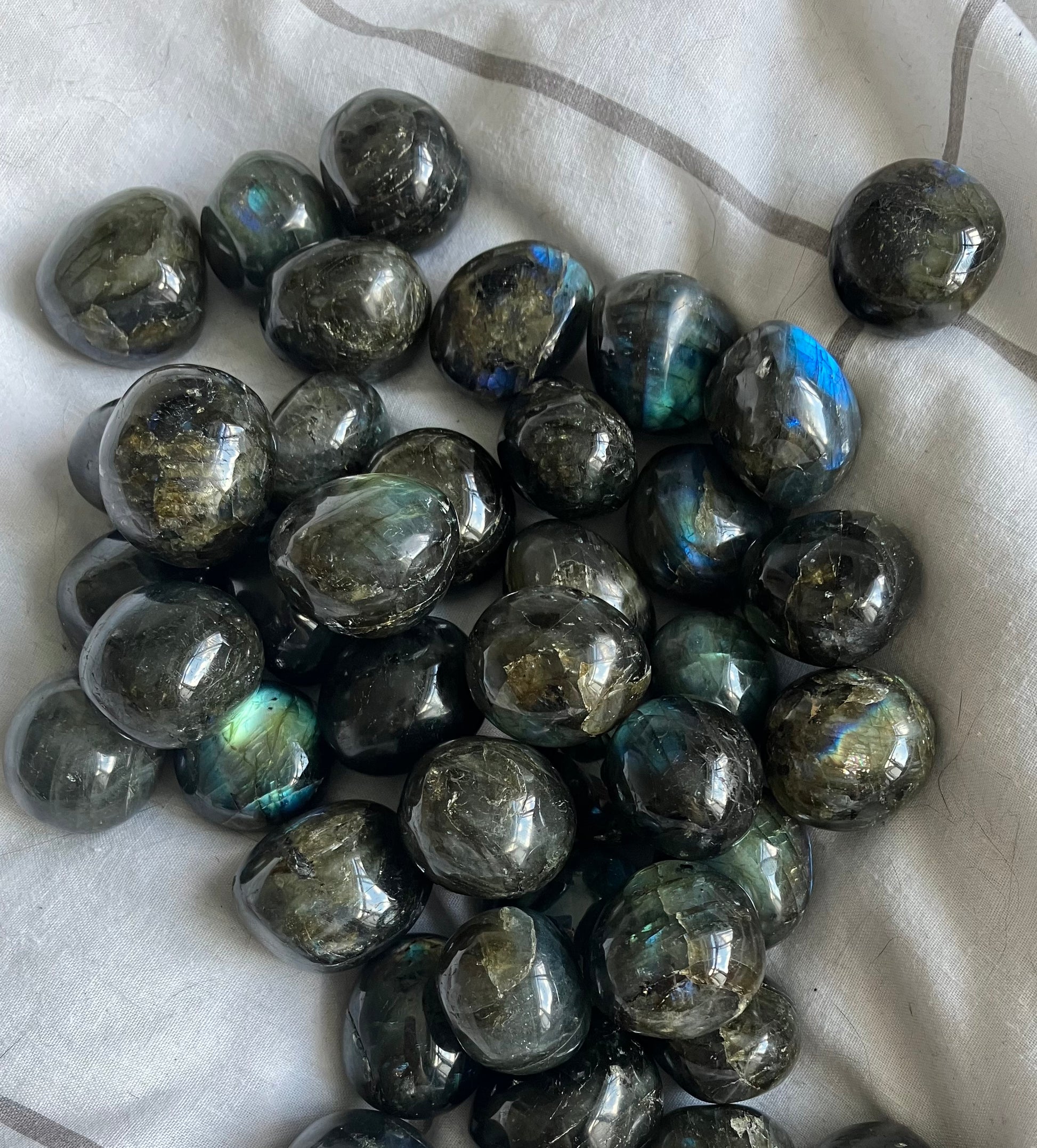 These labradorite tumbled stones are absolutely beautiful and the energy is just AMAZING. The most beautiful dark blue, grey and black hues with amazing blue and yellow flashes. The energy is grounding yet extremely magical and brings strong feeling of intuition. I feel like these would be a great meditation companion to open the third eye but also keep you grounded in this world and bring a strong sense of calm.