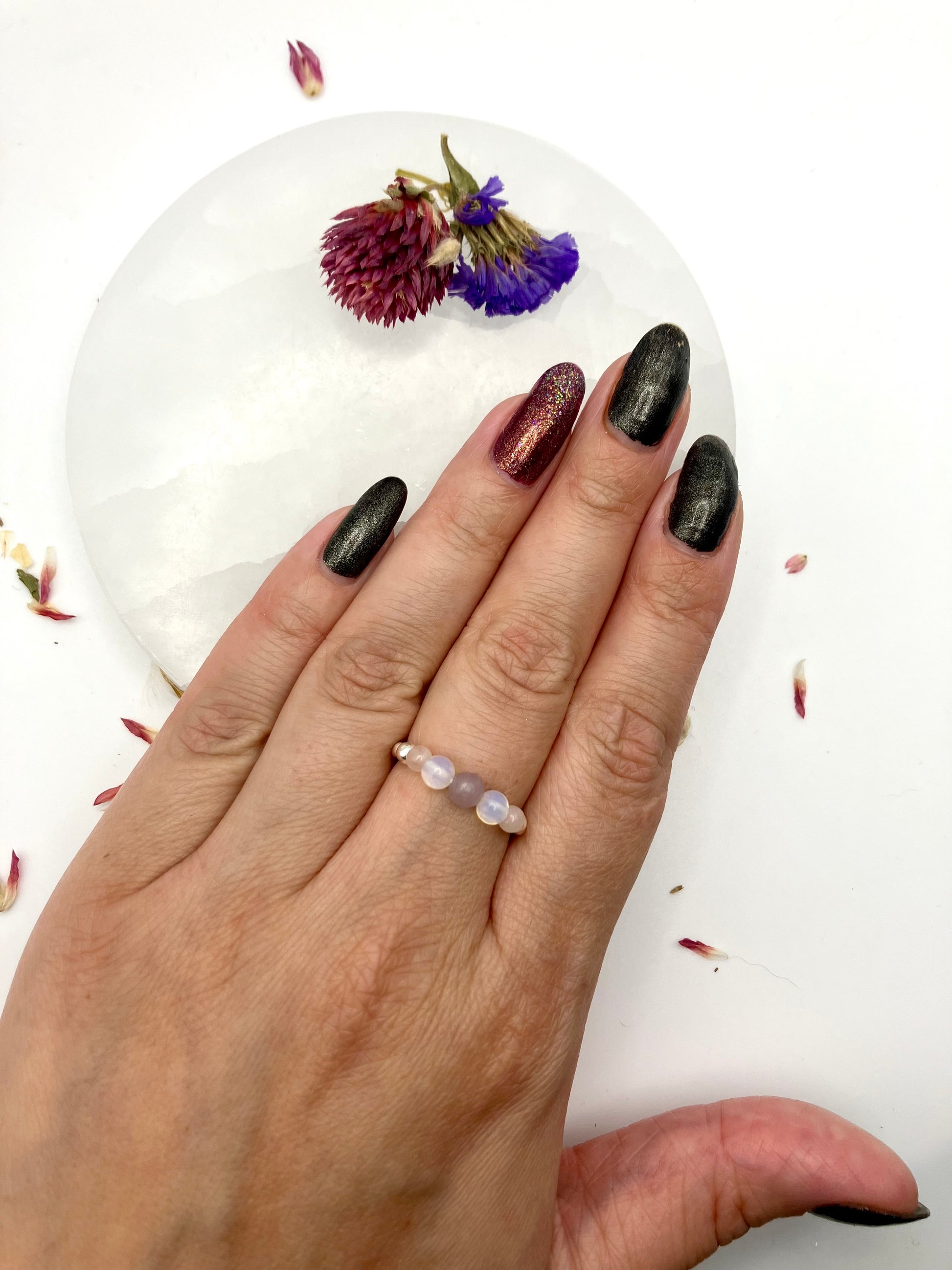 💫 All rings are intuitively handmade by me, beads are sourced ethically from small businesses and bracelets are regularly cleansed and charged using the full moon, selenite and smudging. All pieces will be passed through sage before leaving.