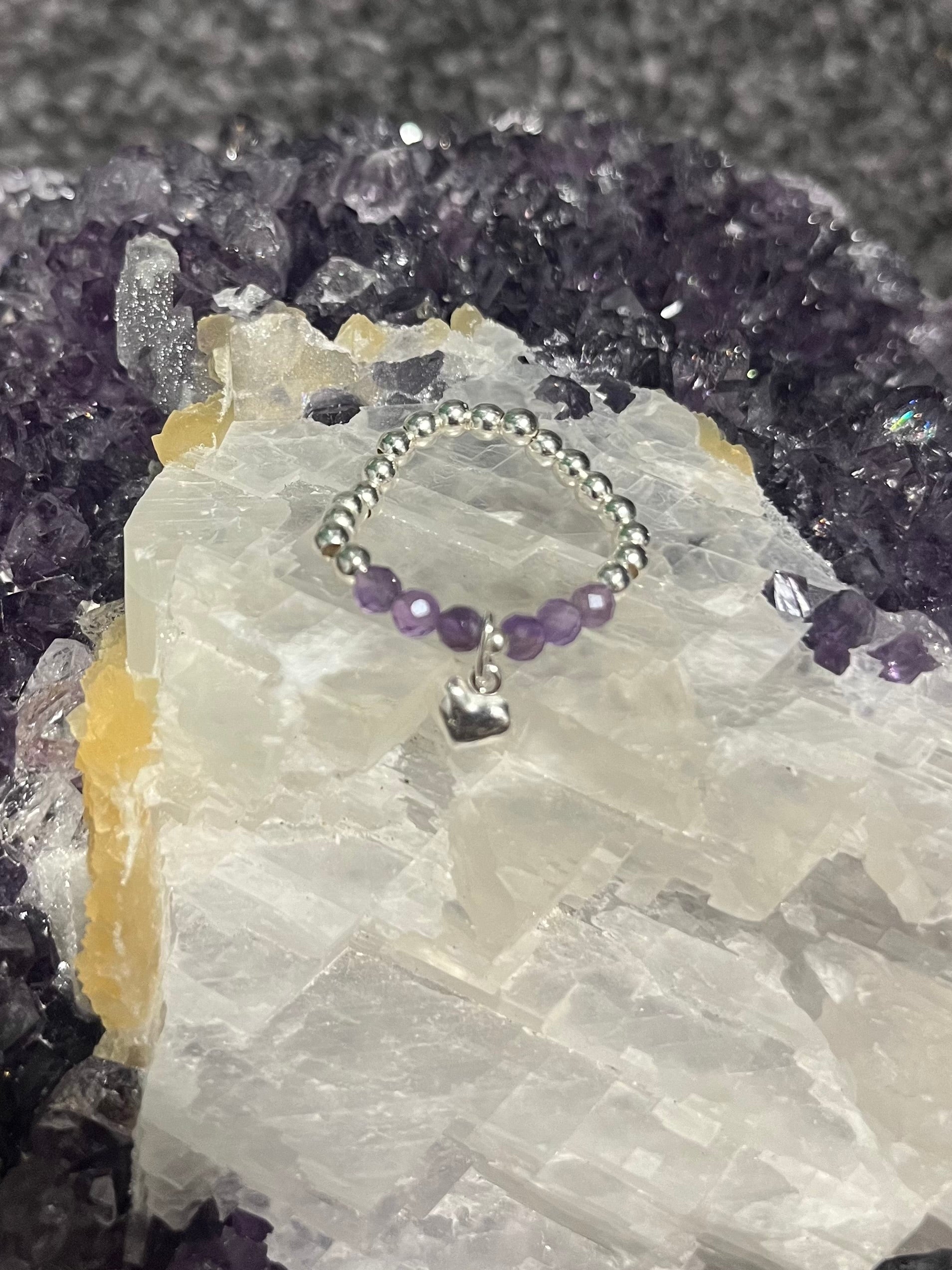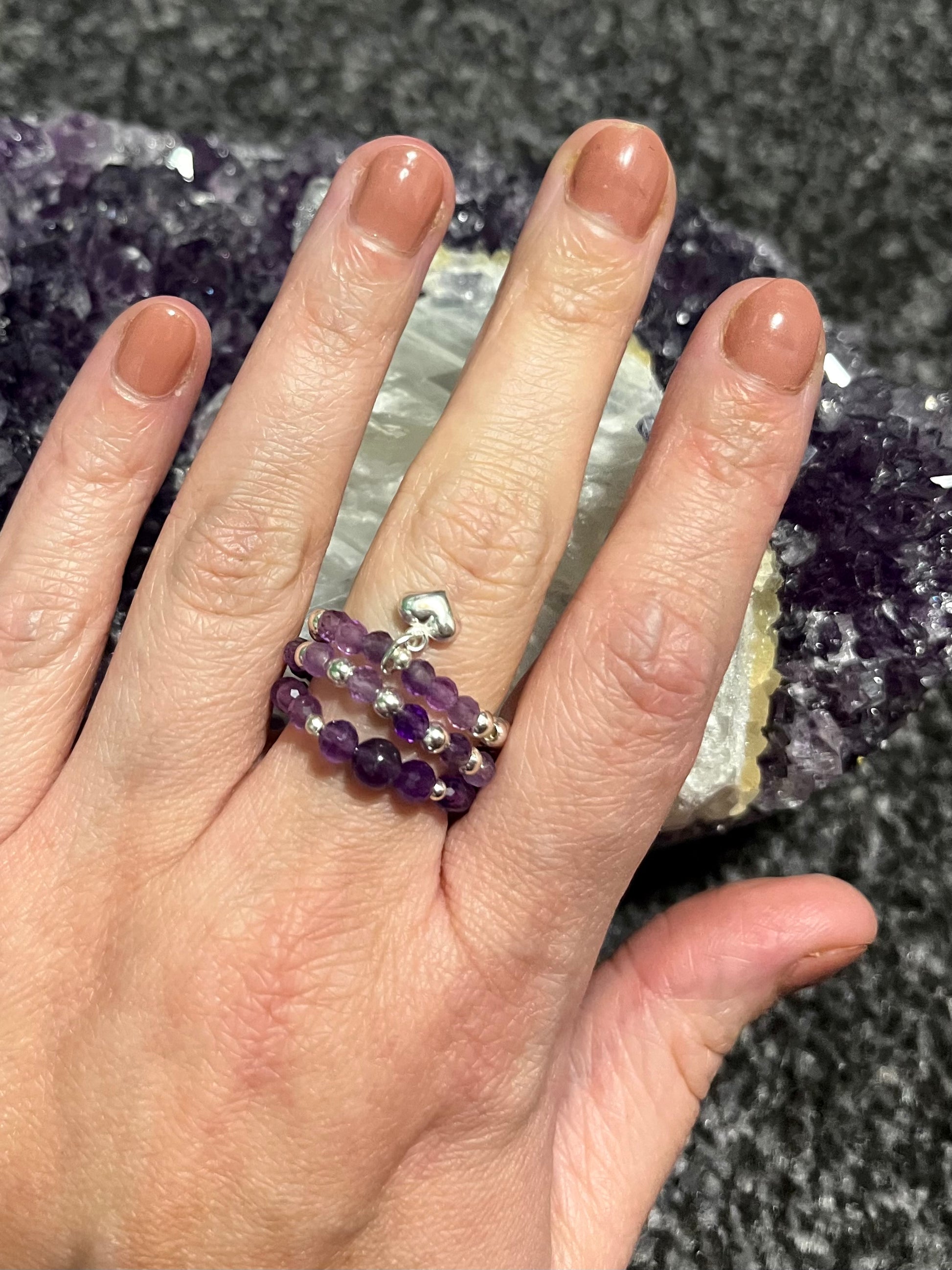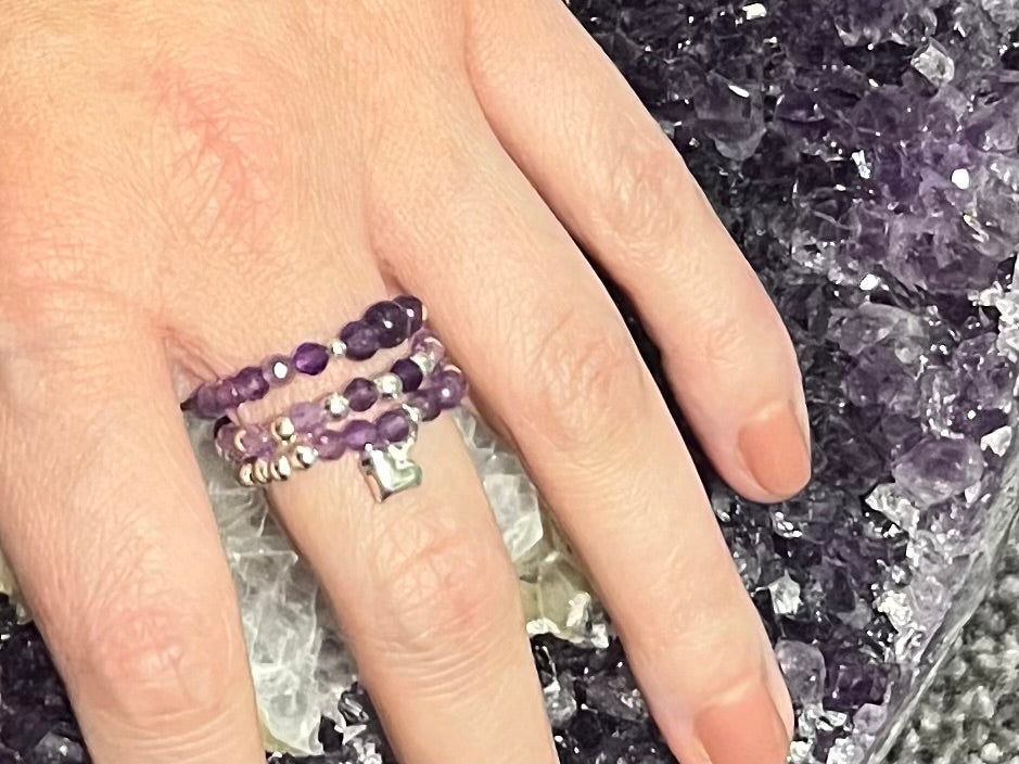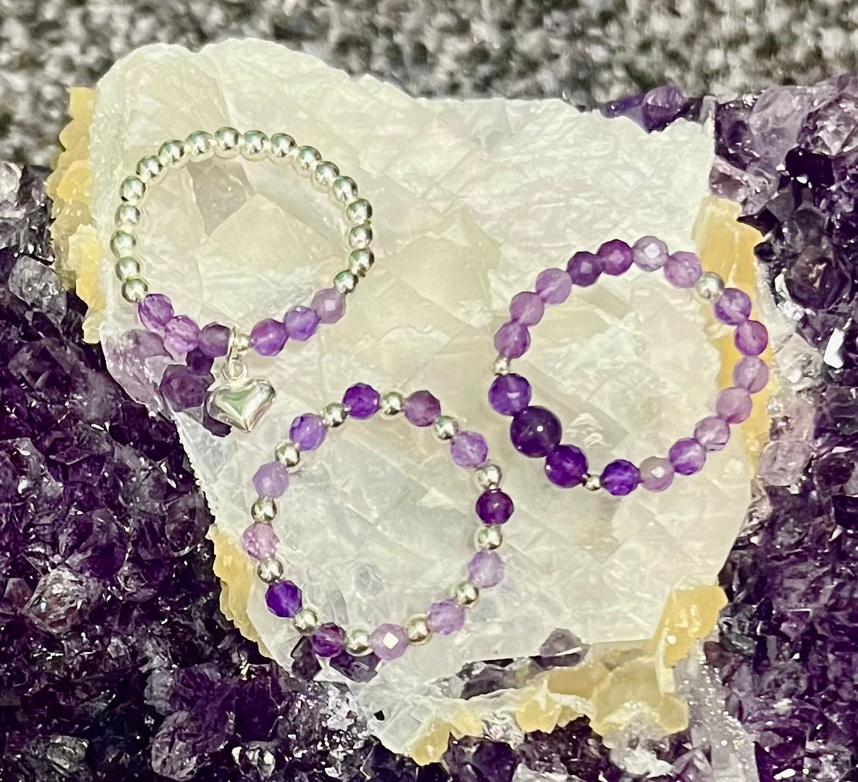 Crystal Dreams - Amethyst Ring stack. Sterling Silver handmade stretchy rings.
