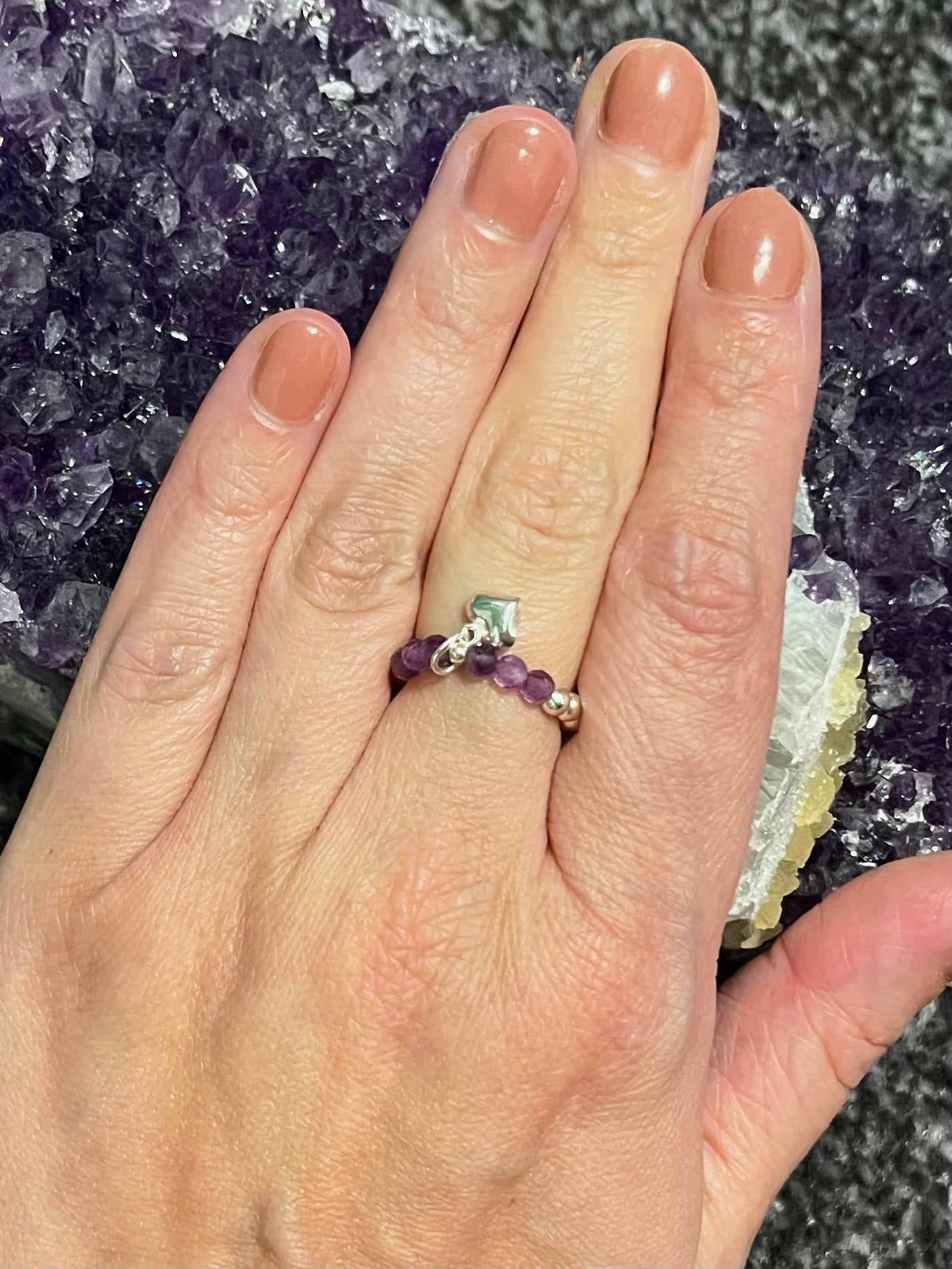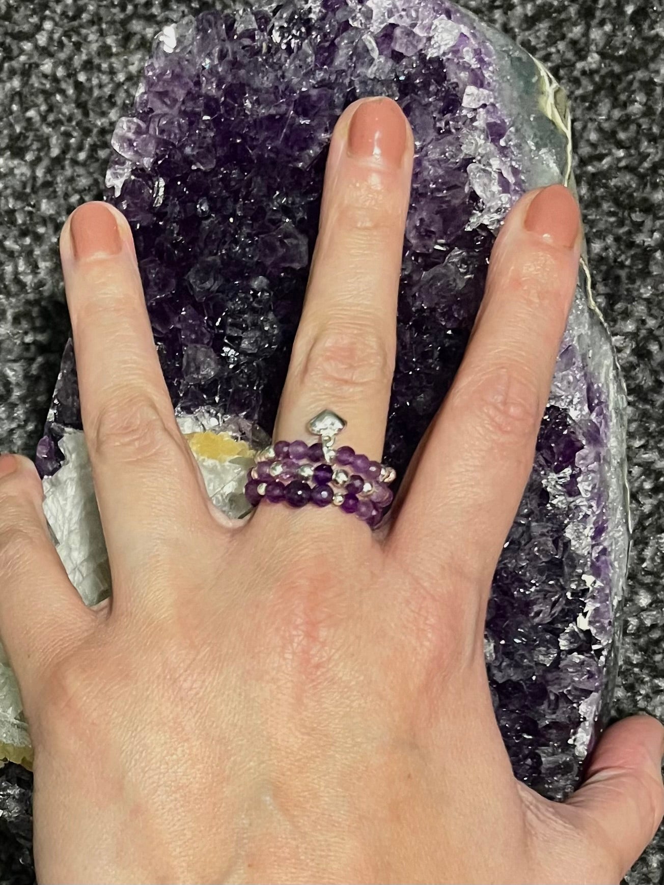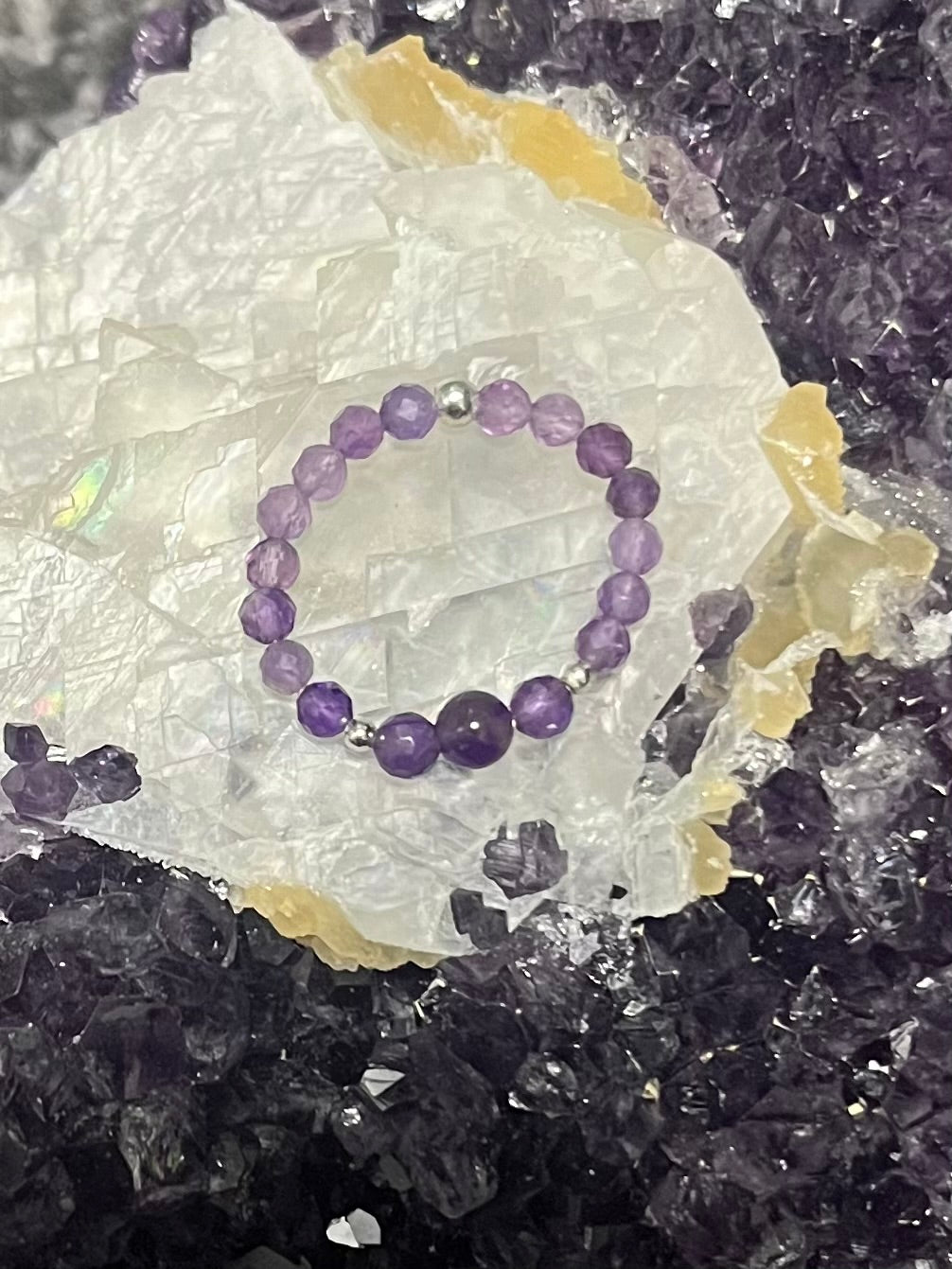 Crystal Dreams - Amethyst Ring stack. Sterling Silver handmade stretchy rings.