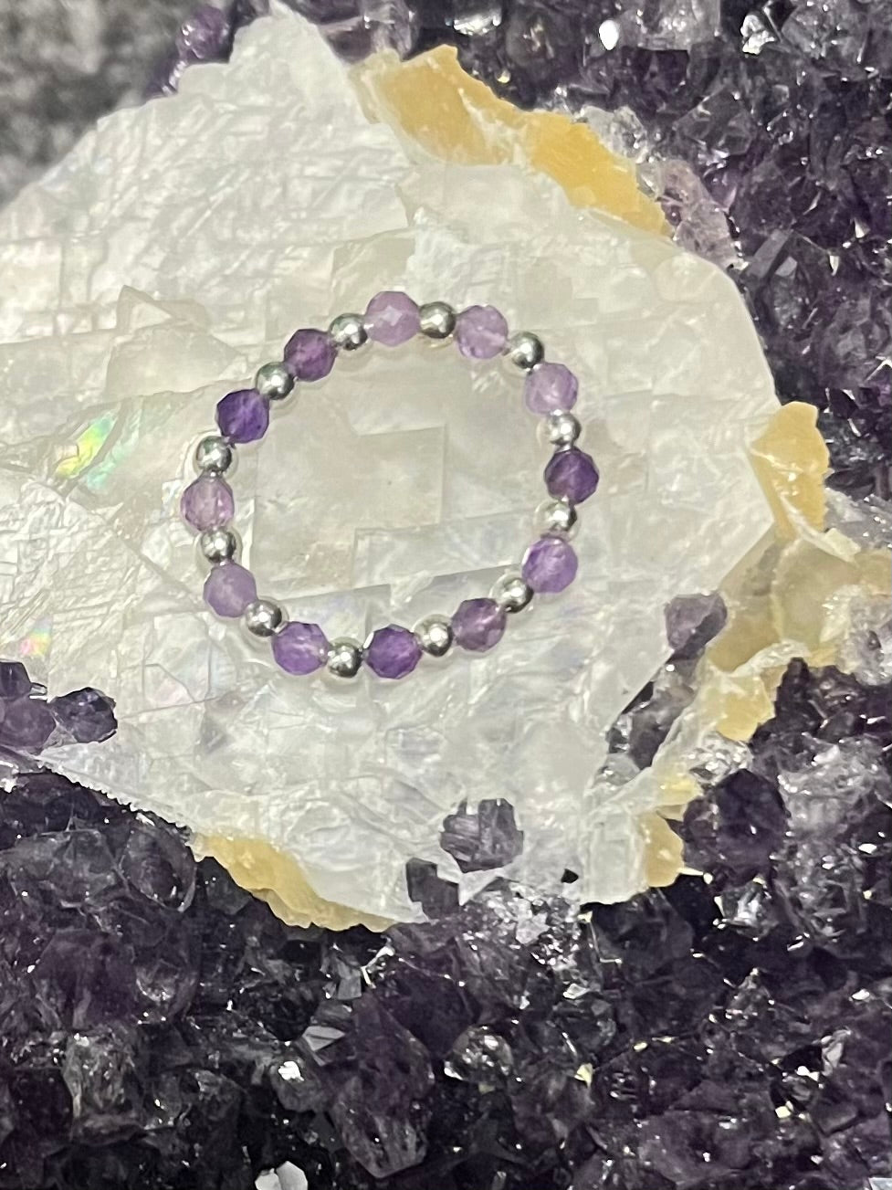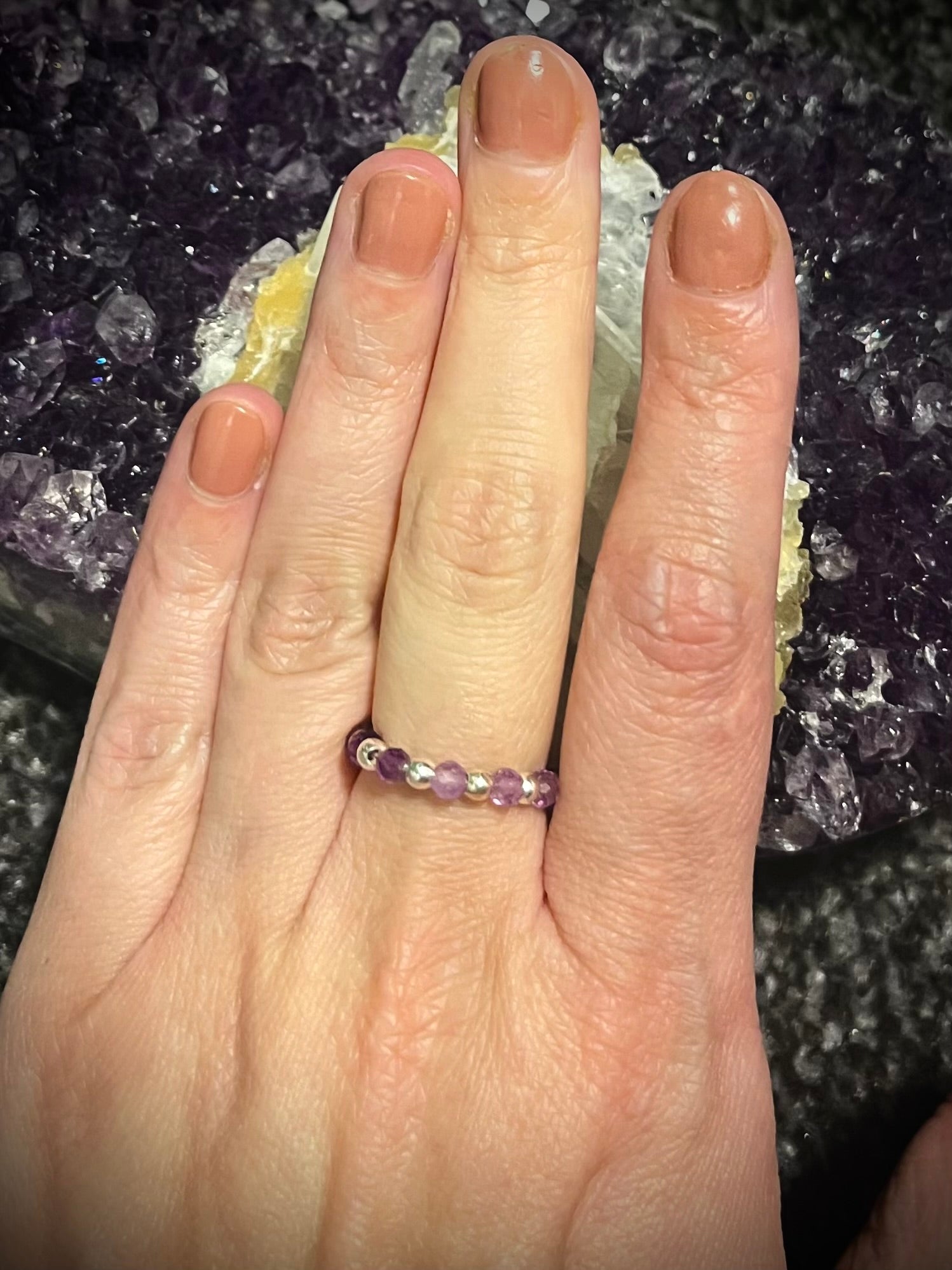 Crystal Dreams - Amethyst. Sterling Silver handmade stretchy rings.