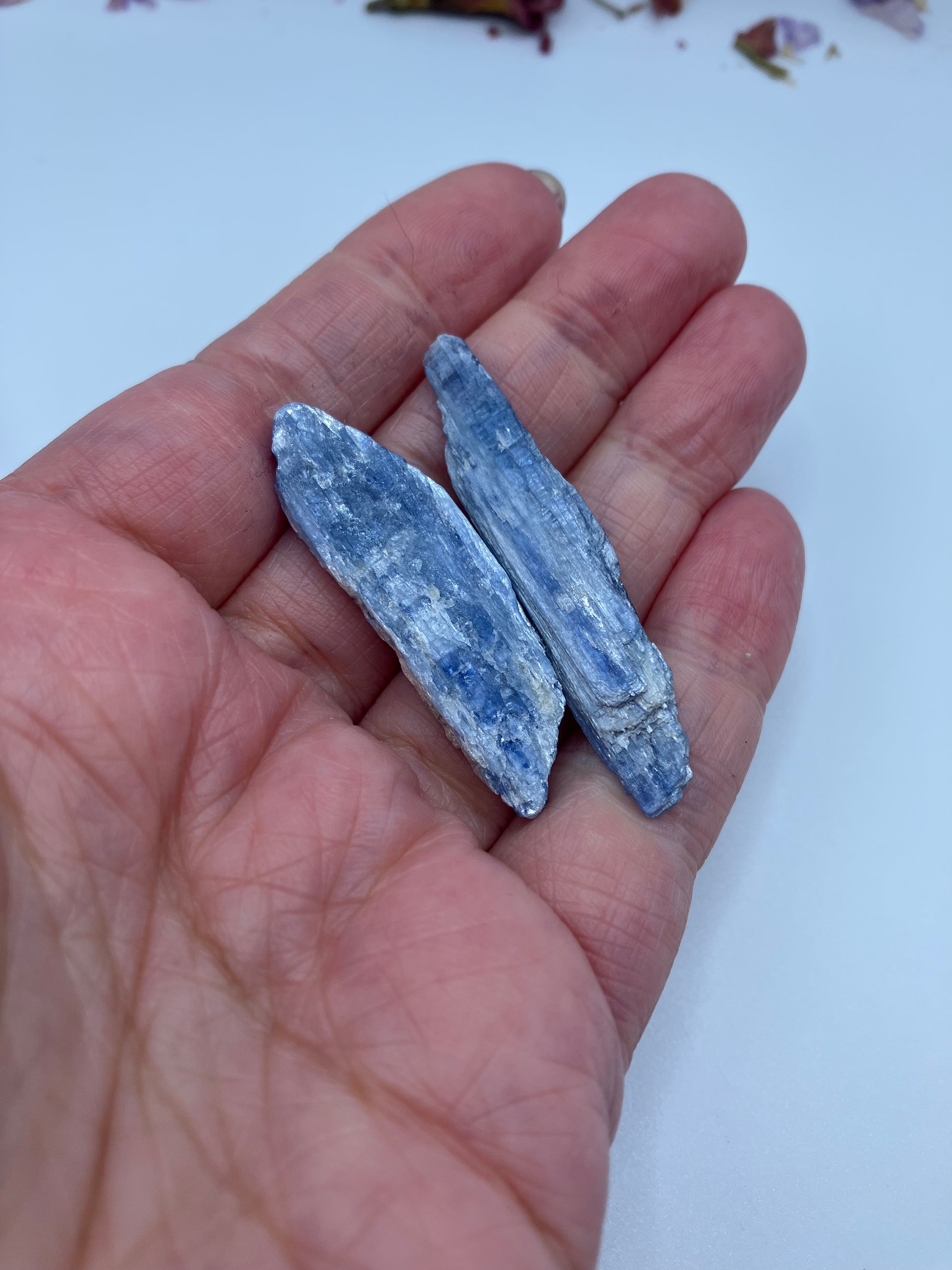 Kyanite is a self cleansing stone, which will keep all of the other crystals energy clear and working at their best and remove negative energy. It works so well to keep your throat chakra cleansed and help to open it when needed. Blue kyanite can help you to recall your dreams and access their deeper meanings. It encourages honesty and self expression and removes any fears or blockages you may have in the throat  chakra.