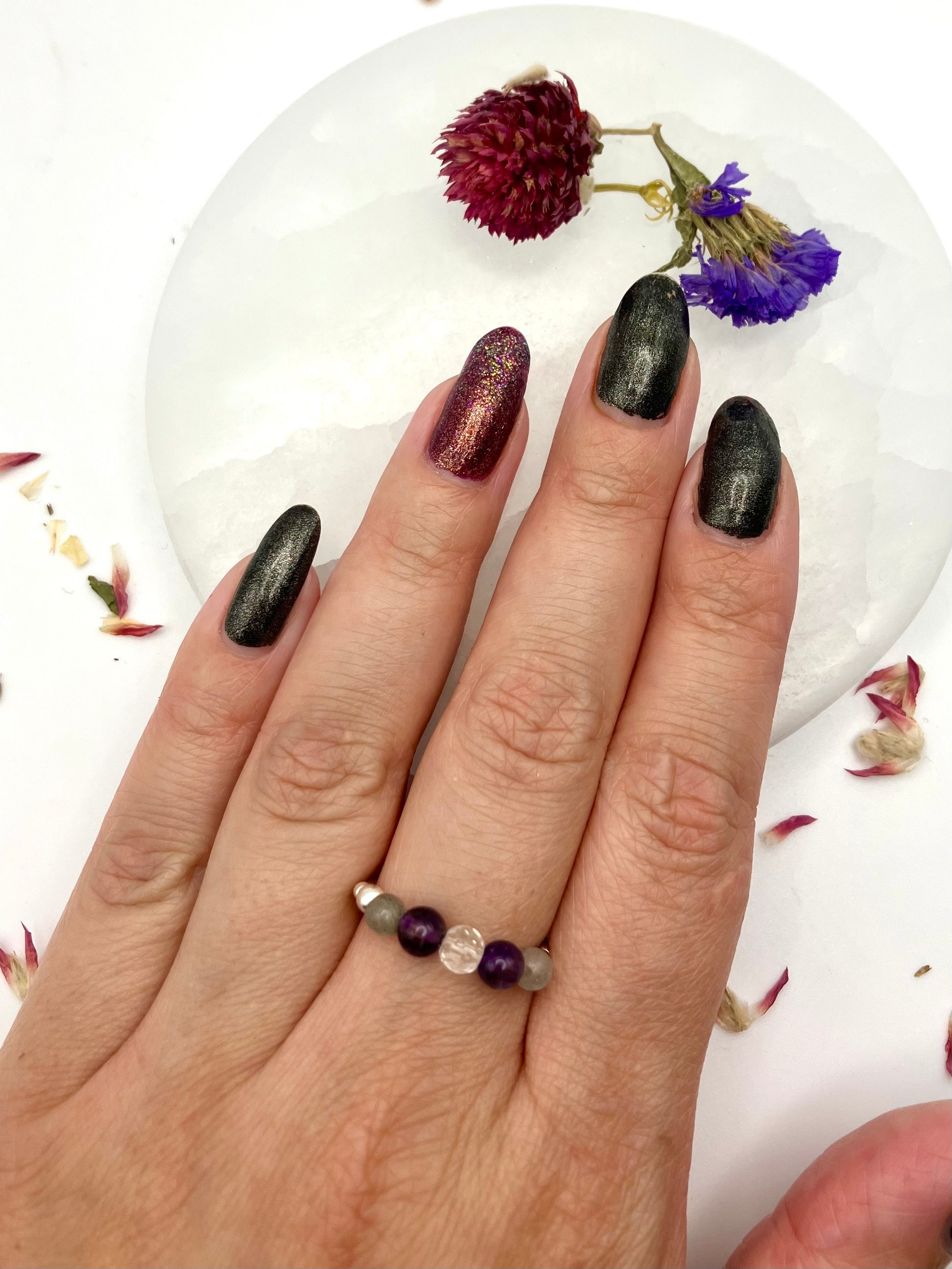 💫 All rings are intuitively handmade by me, beads are sourced ethically from small businesses and bracelets are regularly cleansed and charged using the full moon, selenite and smudging. All pieces will be passed through sage before leaving.