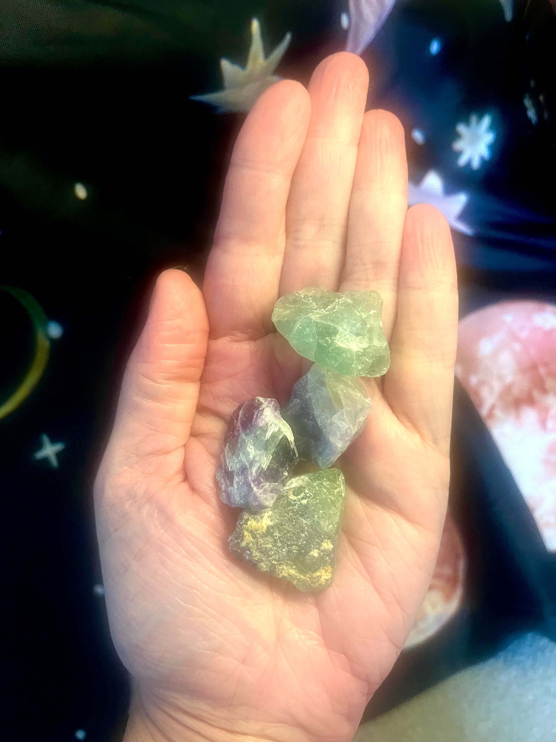 Rough purple and green fluorite pieces - approx 3 - 4cm