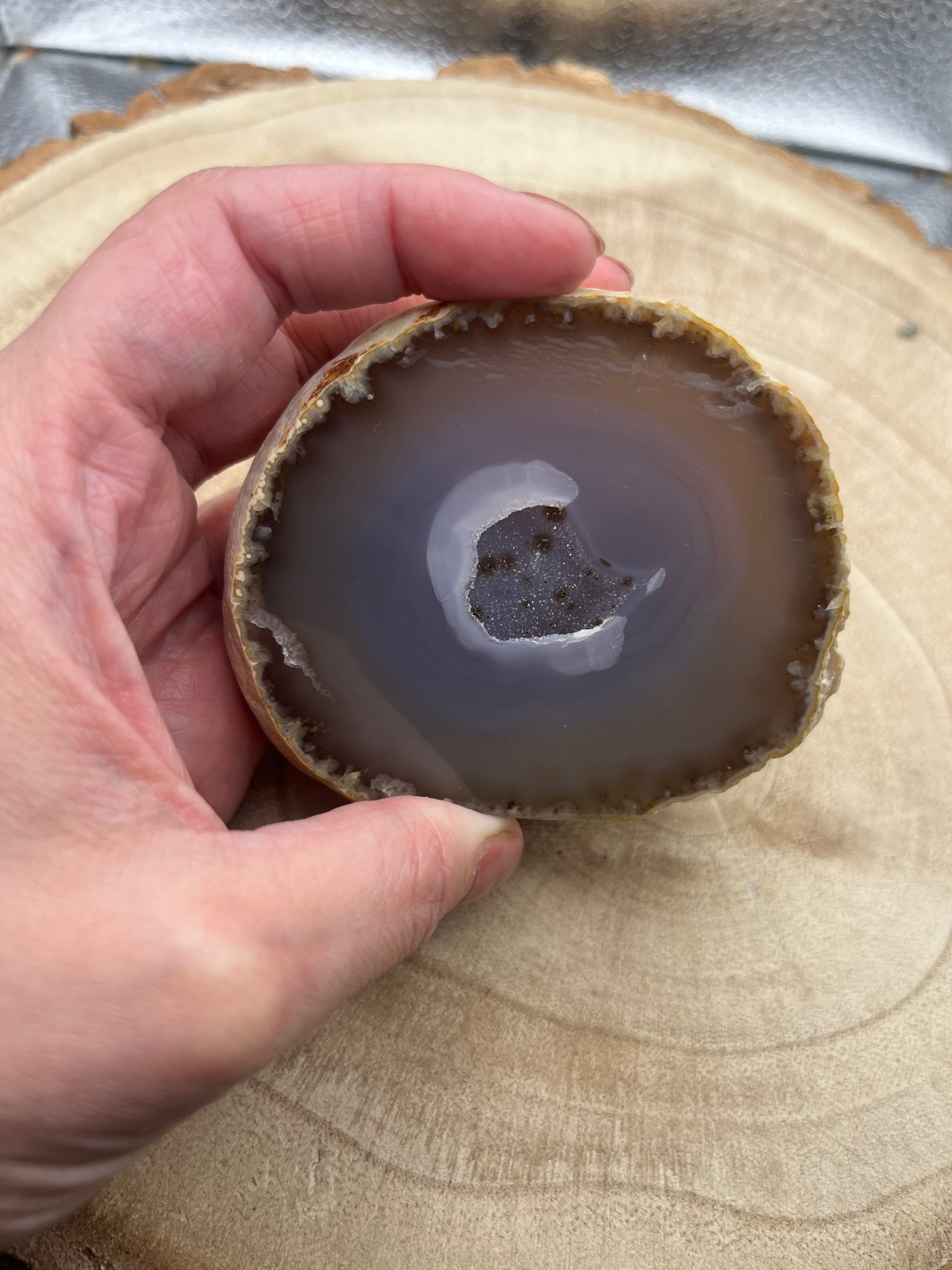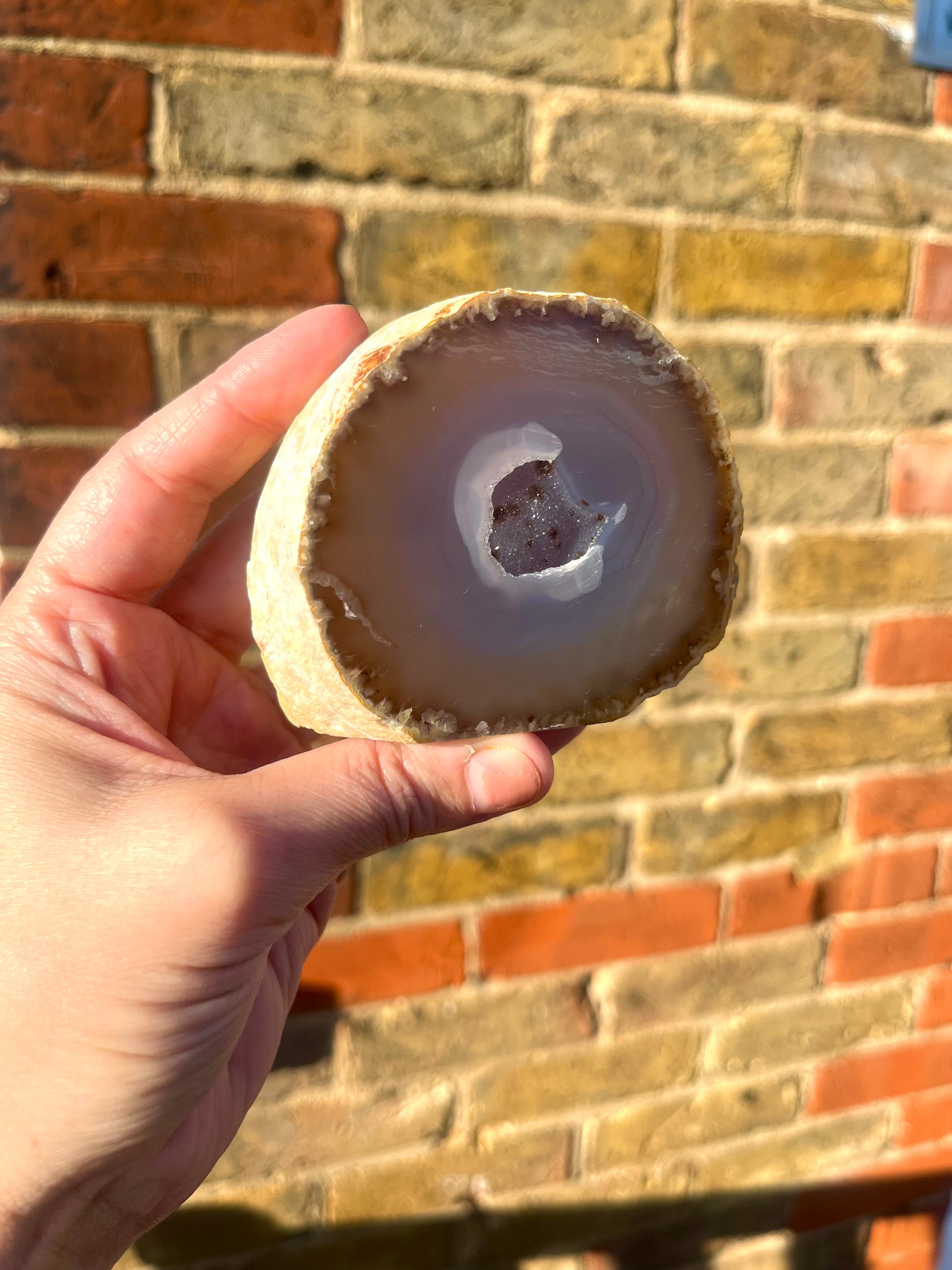 Gorgeous natural stand up geode 2 with polished front. 7 cm tall.