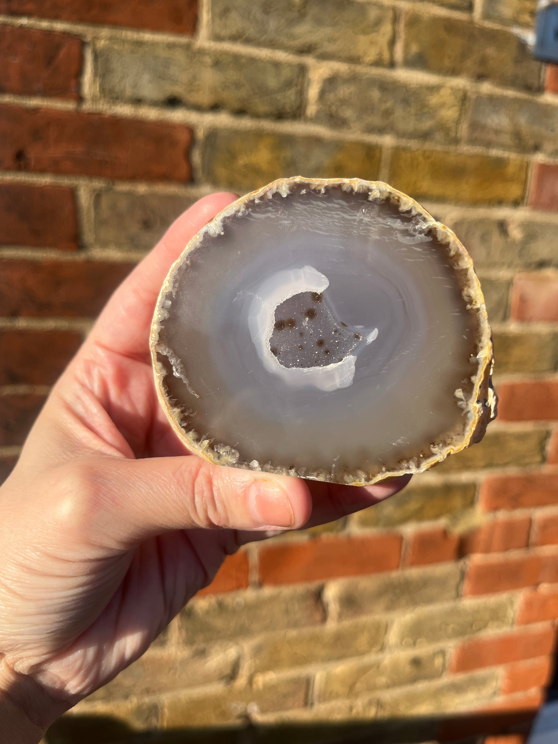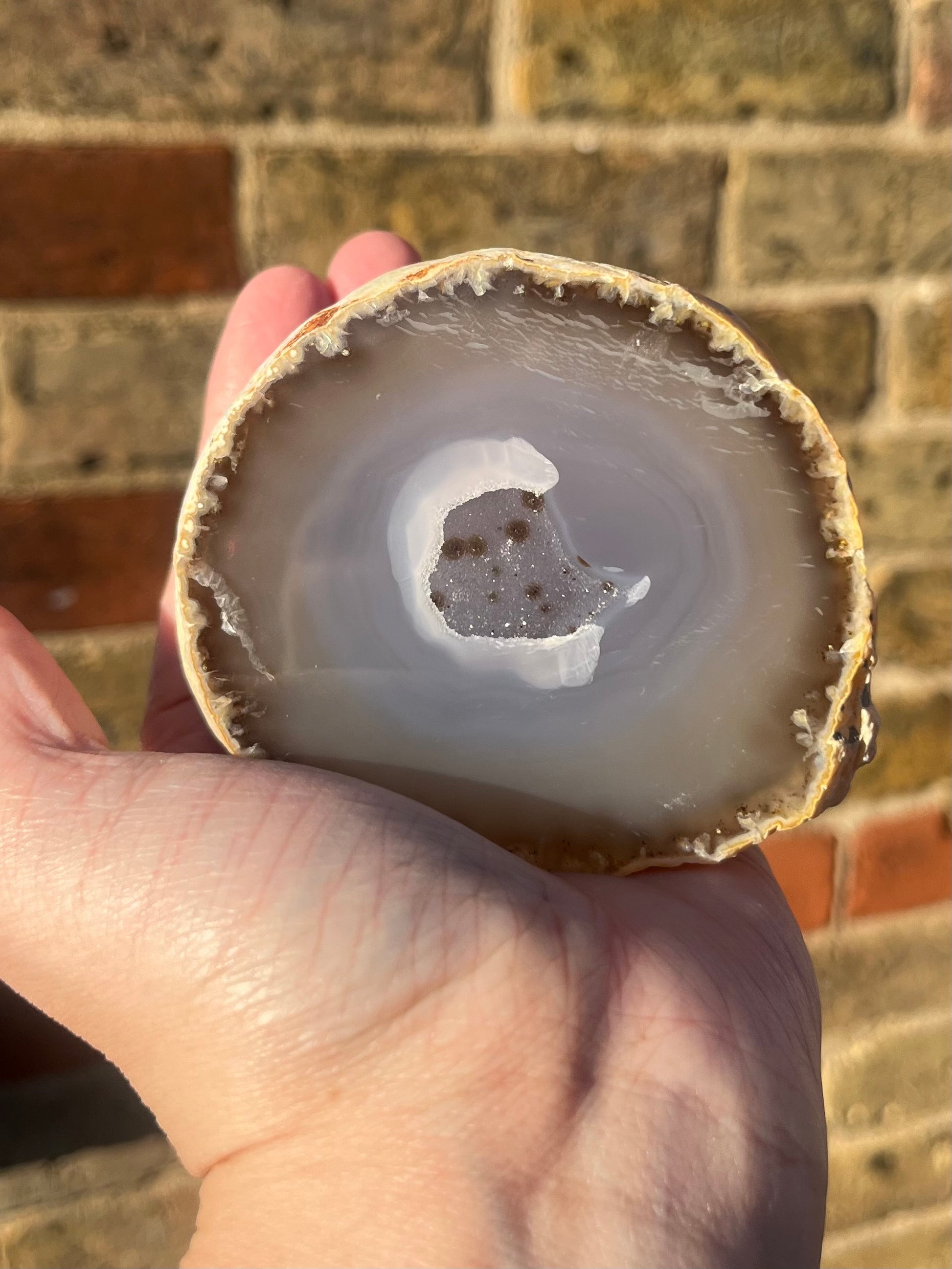 Agate is a very grounding and stabilising crystal - it can often be found with little Druze quartz crystal which amplify its energy.