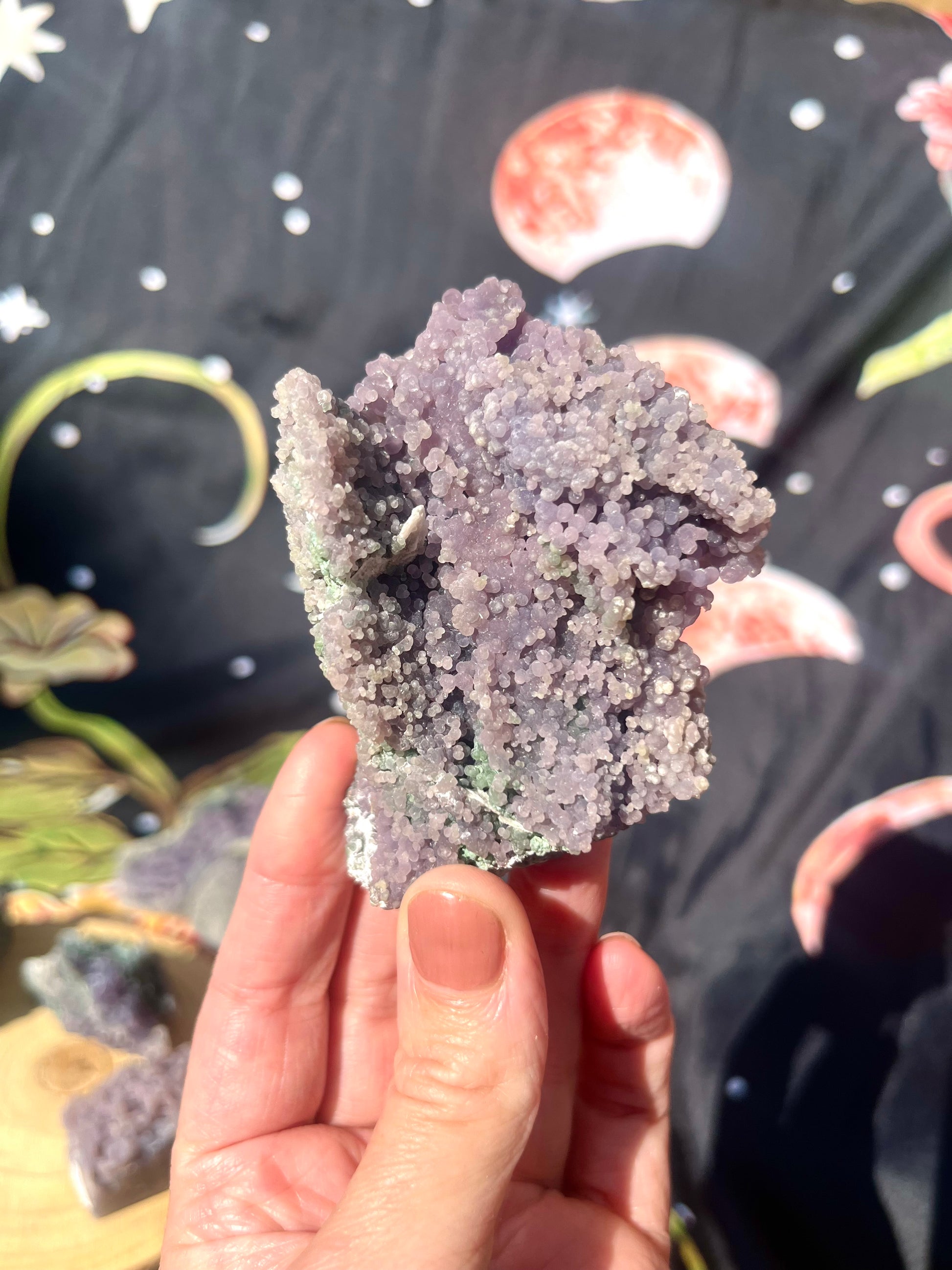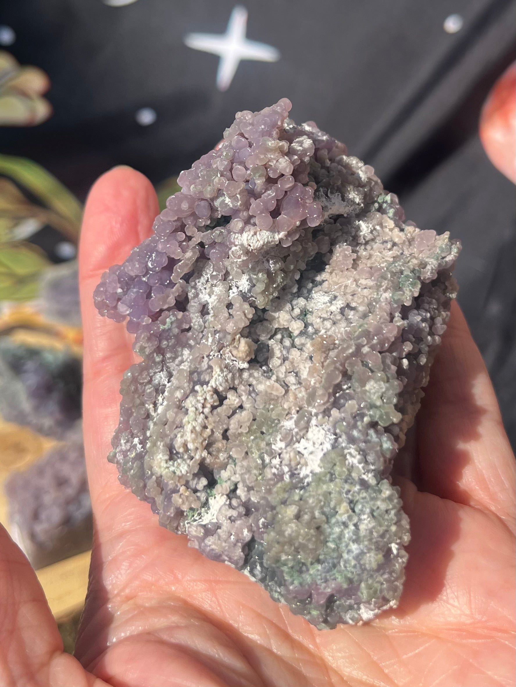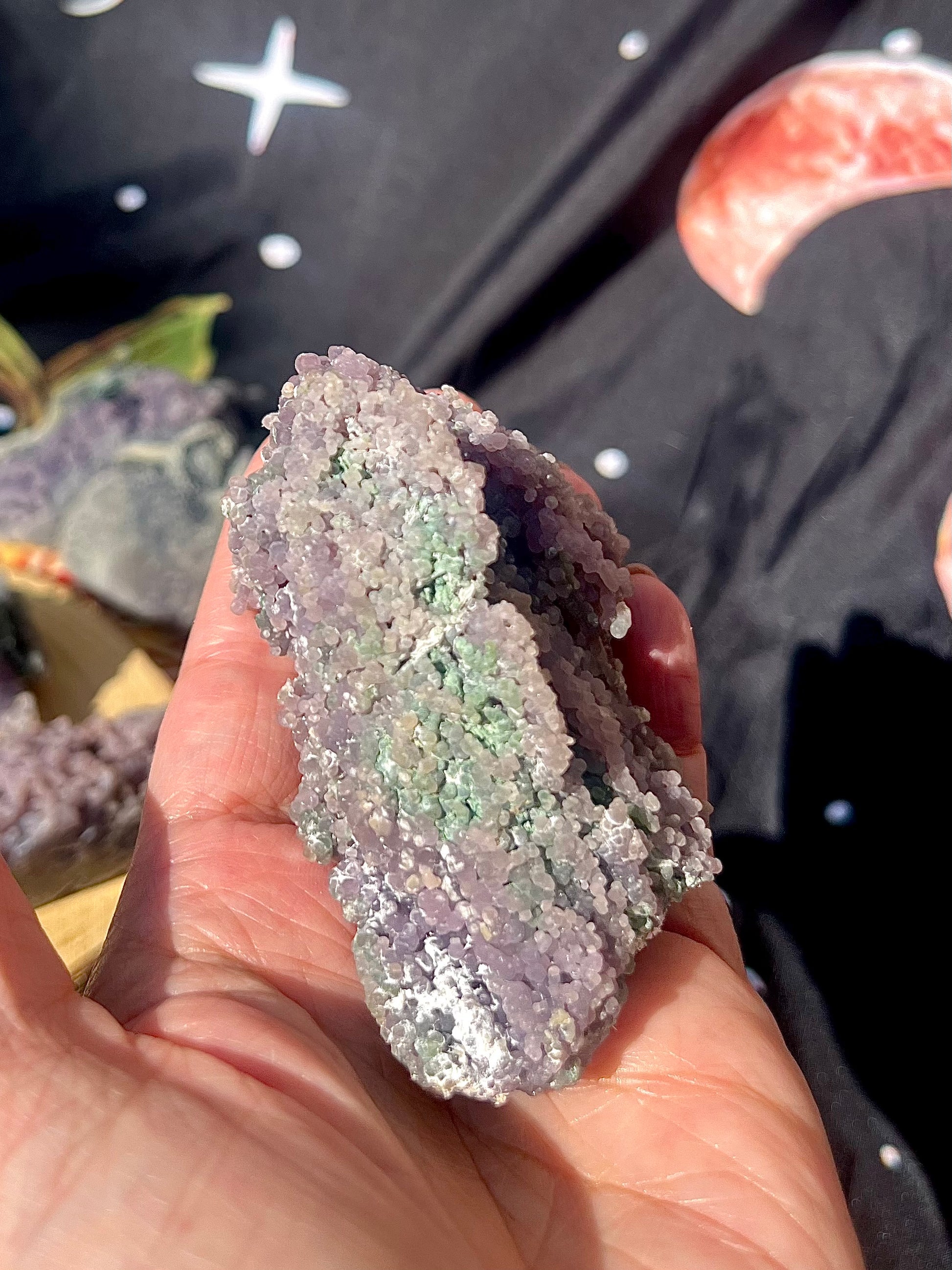 I attended an amazing crystal and ancestral workshop, in which we worked with grape chalcedony. It came up to us that as a crystal it carried the energy of ‘bringing together’, when you feel a bit all over the place or your thoughts and feelings are scattered, grape chalcedony can work to help bring you back to one.