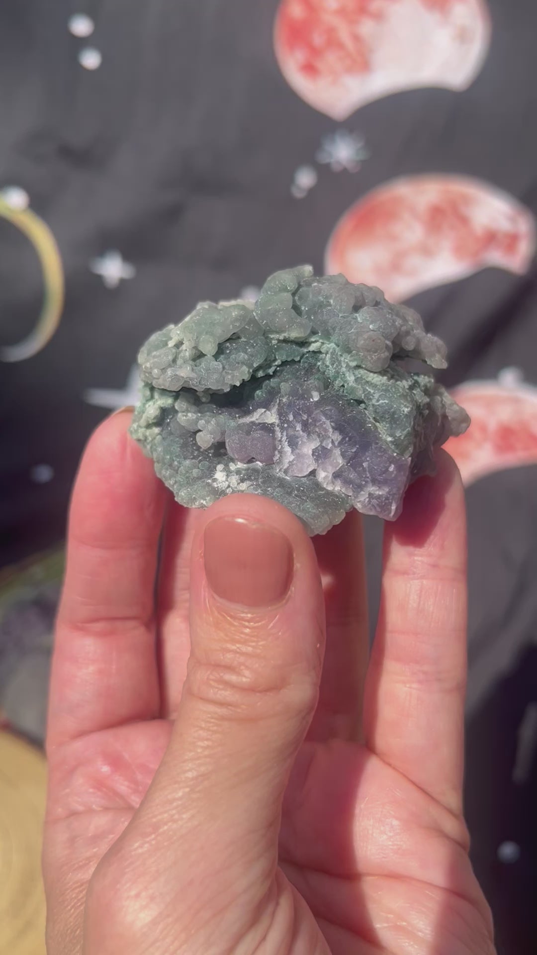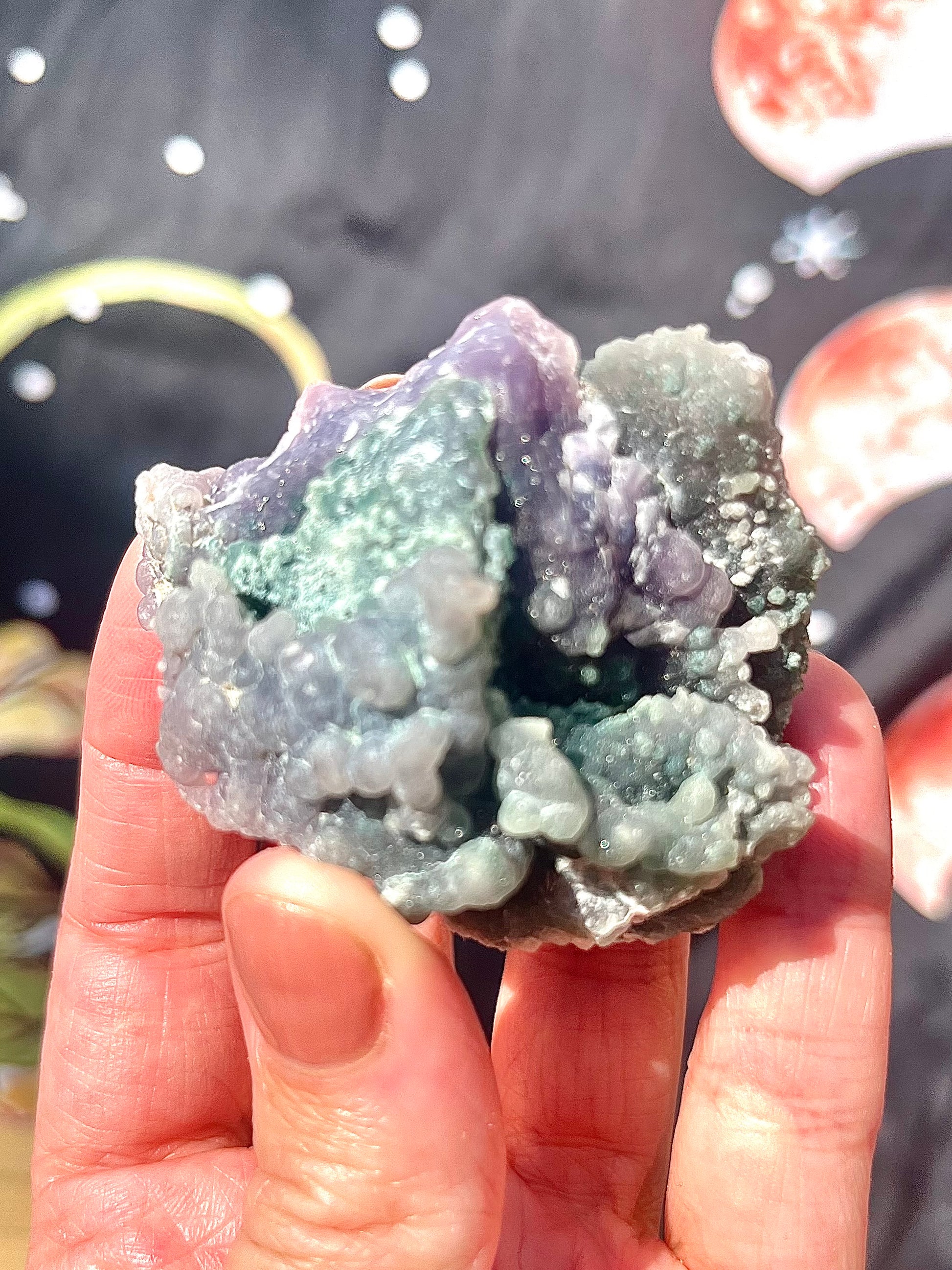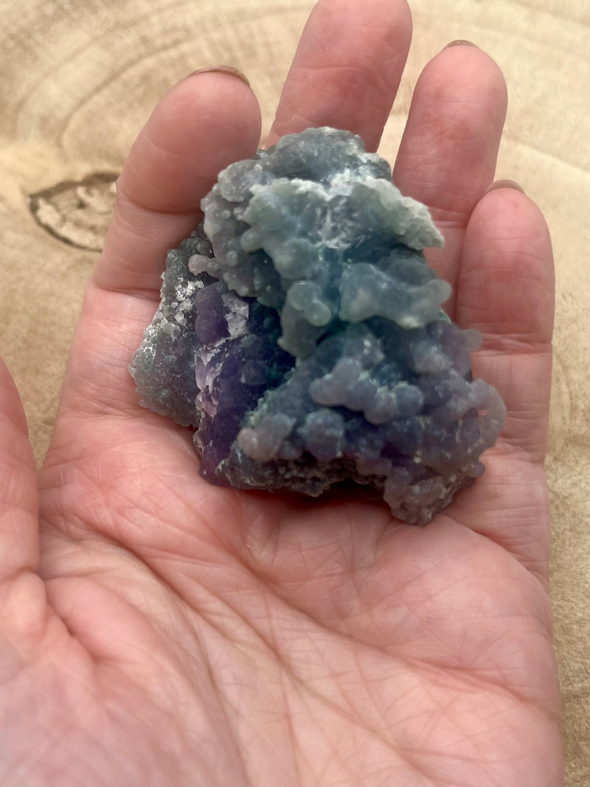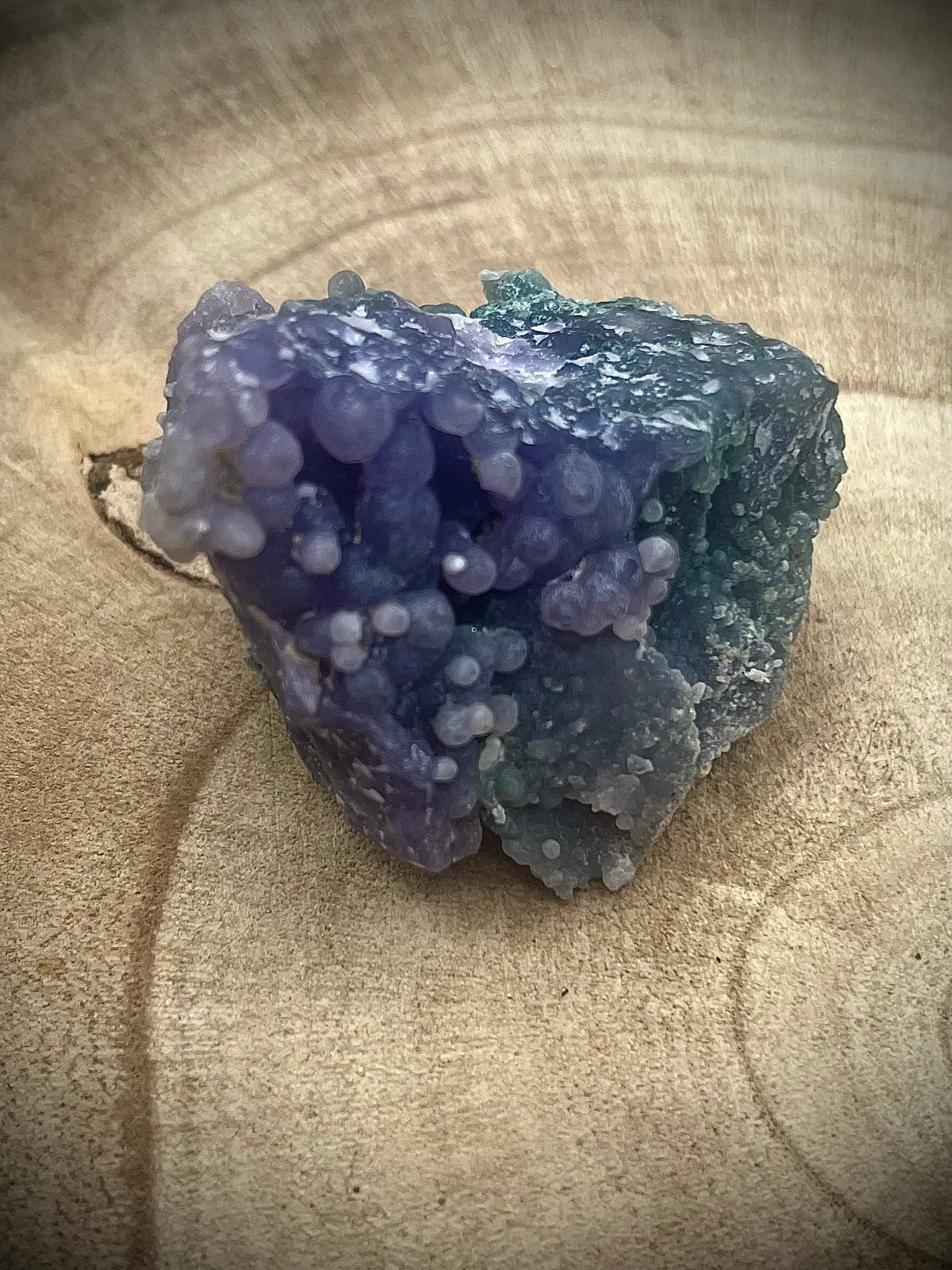 Grape agate or chalcedony is a rare, botryoidal (causing the little spheres or ‘grapes’) form of chalcedony. It is currently only found in one location in Indonesia and therefore is very unusual.