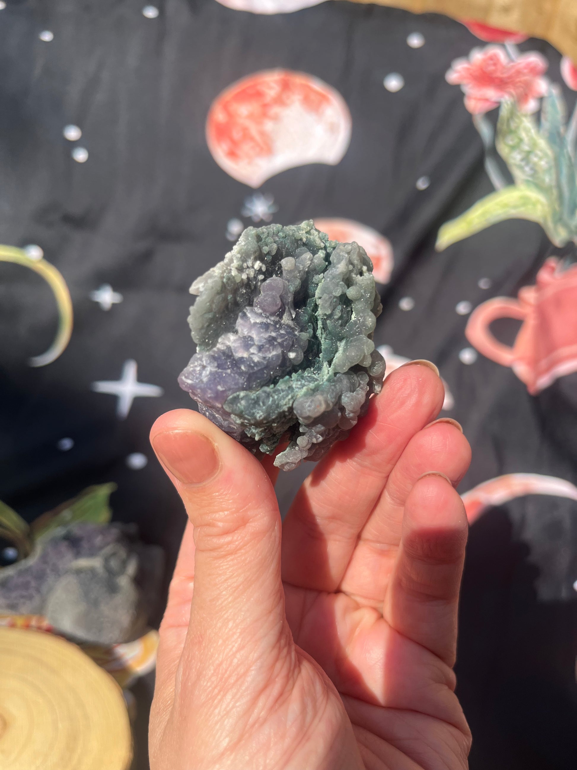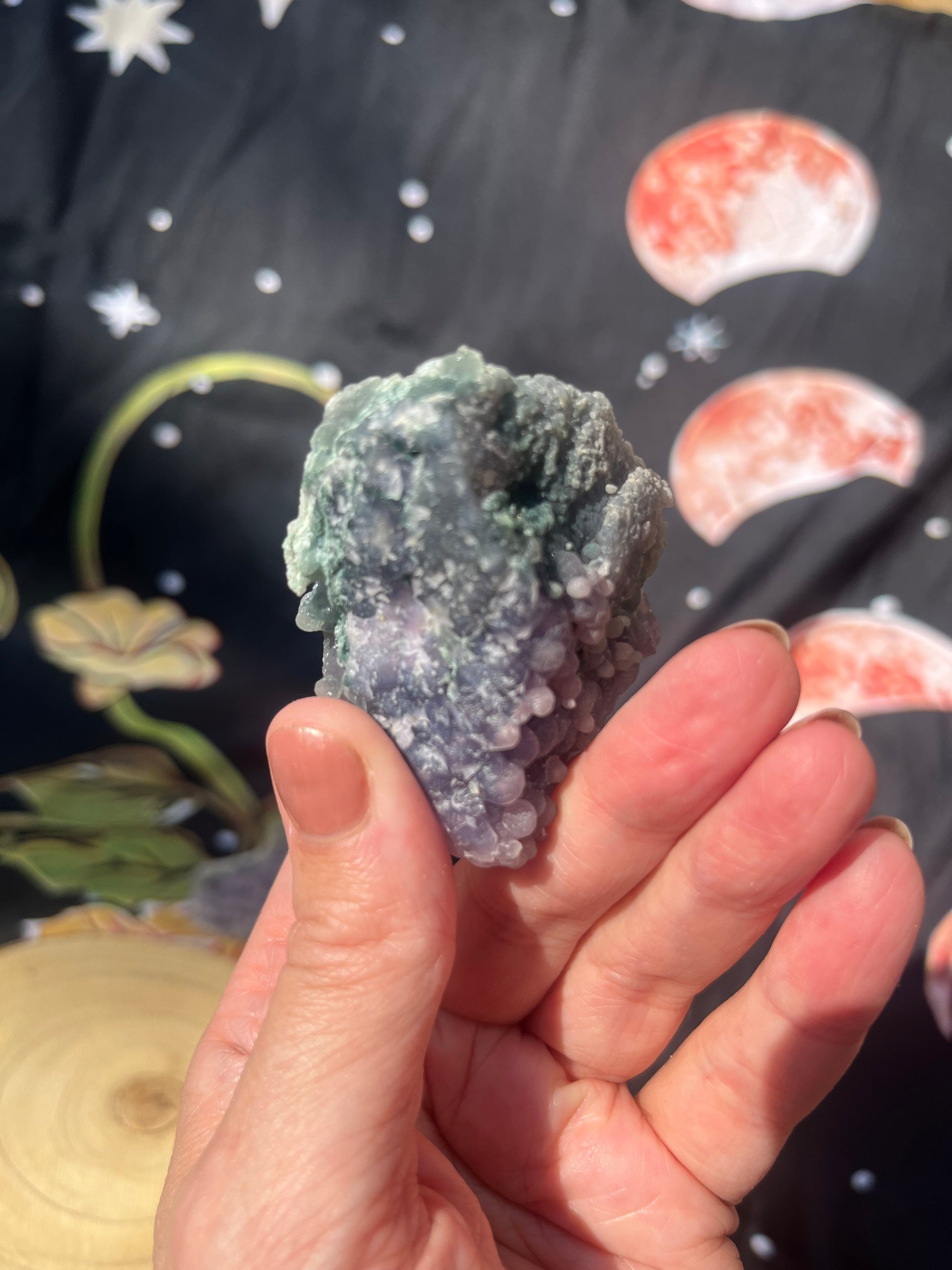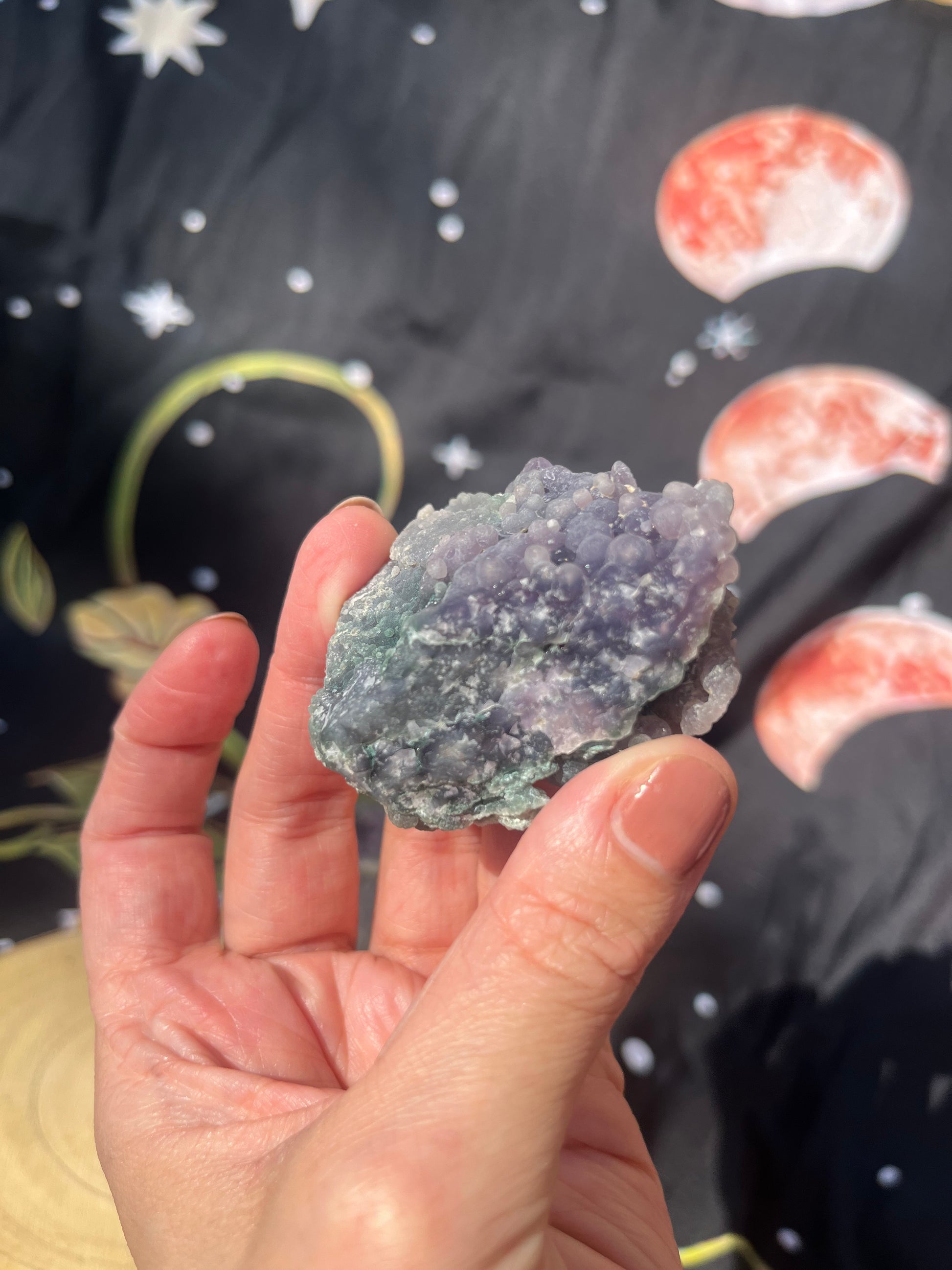 I attended an amazing crystal and ancestral workshop, in which we worked with grape chalcedony. It came up to us that as a crystal it carried the energy of ‘bringing together’, when you feel a bit all over the place or your thoughts and feelings are scattered, grape chalcedony can work to help bring you back to one.