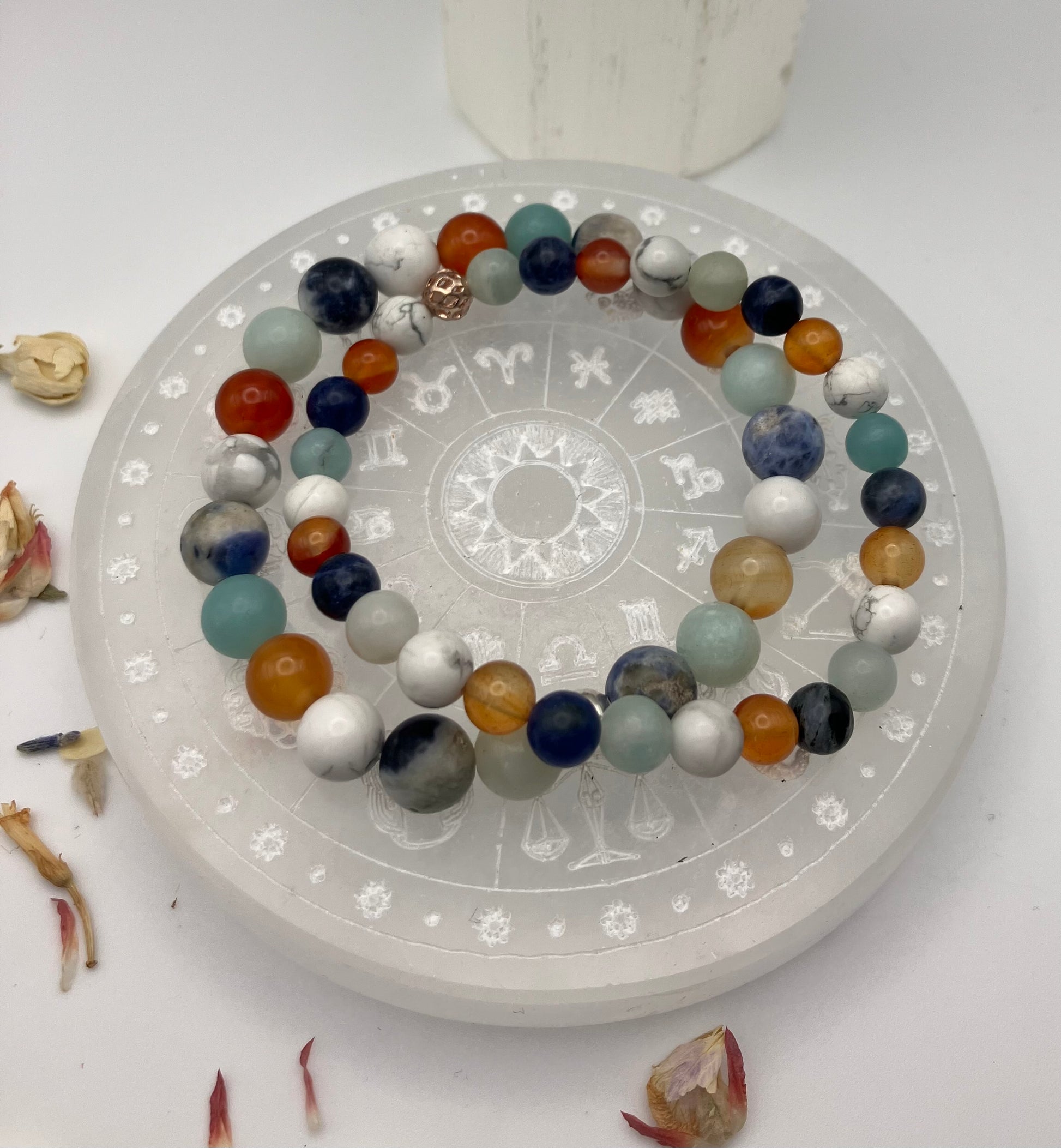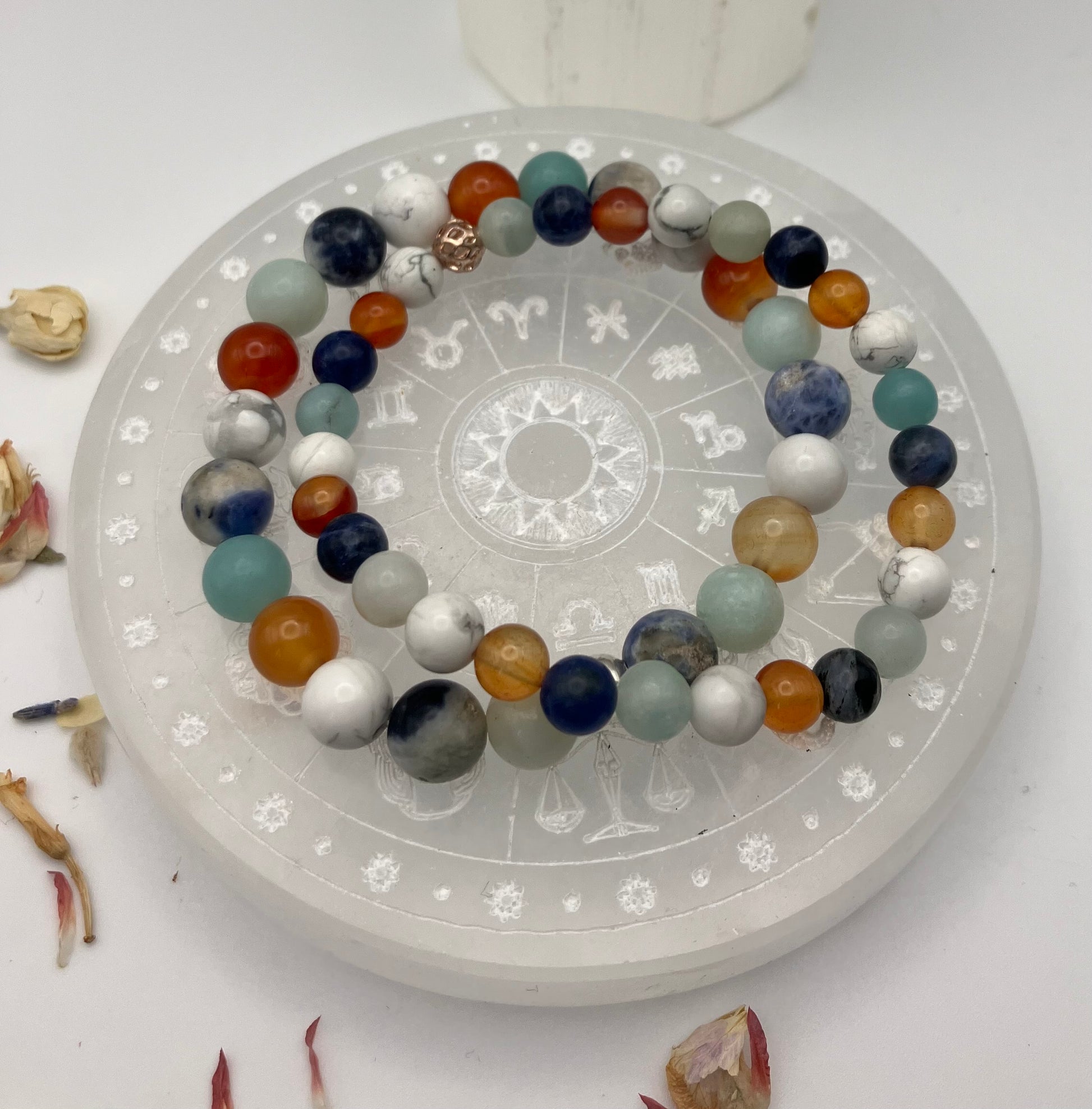 🌟Take off your bracelet at bed time (I suggest you pop it on to a selenite charging plate over night for some fresh energy the next day!)