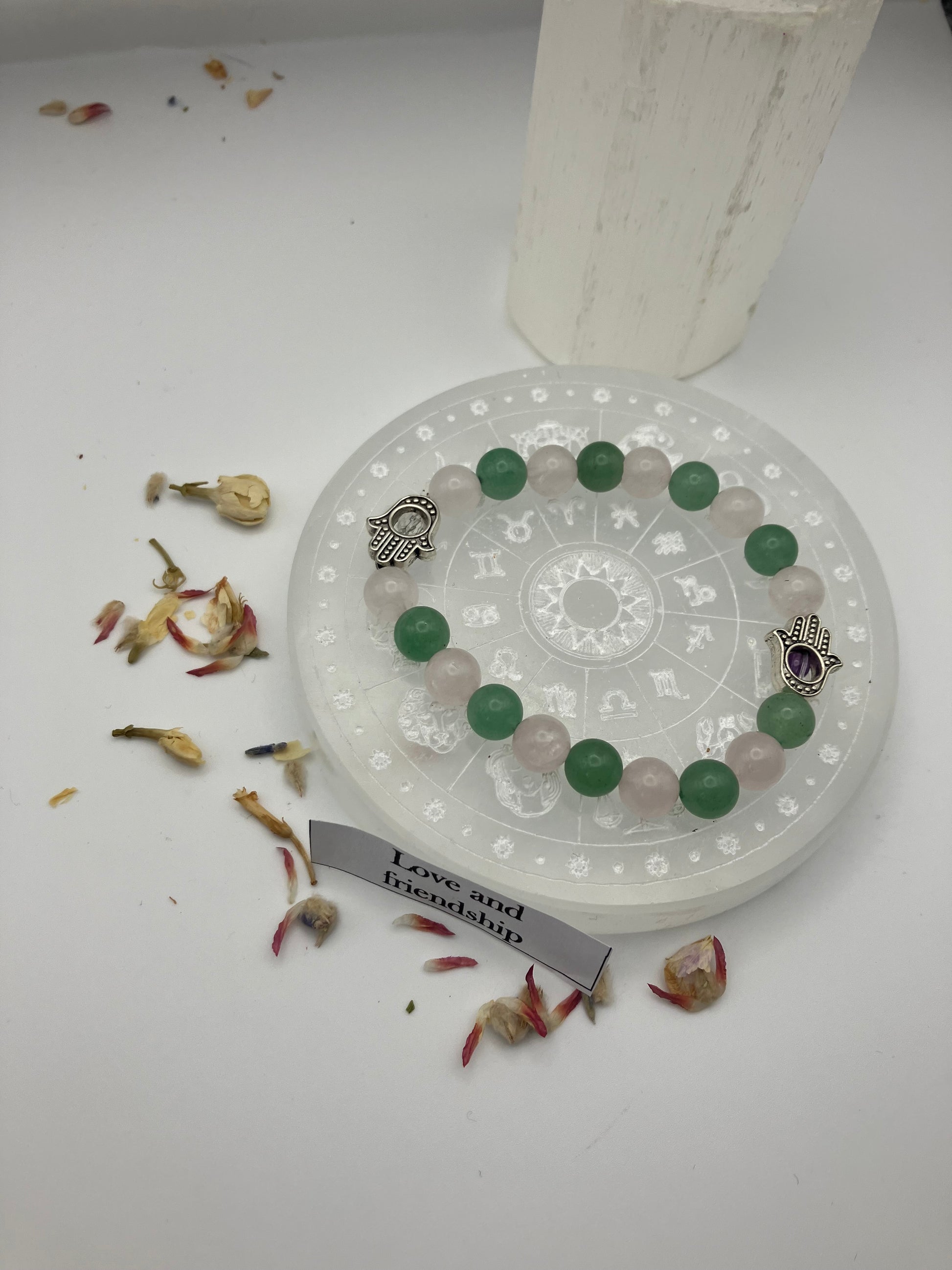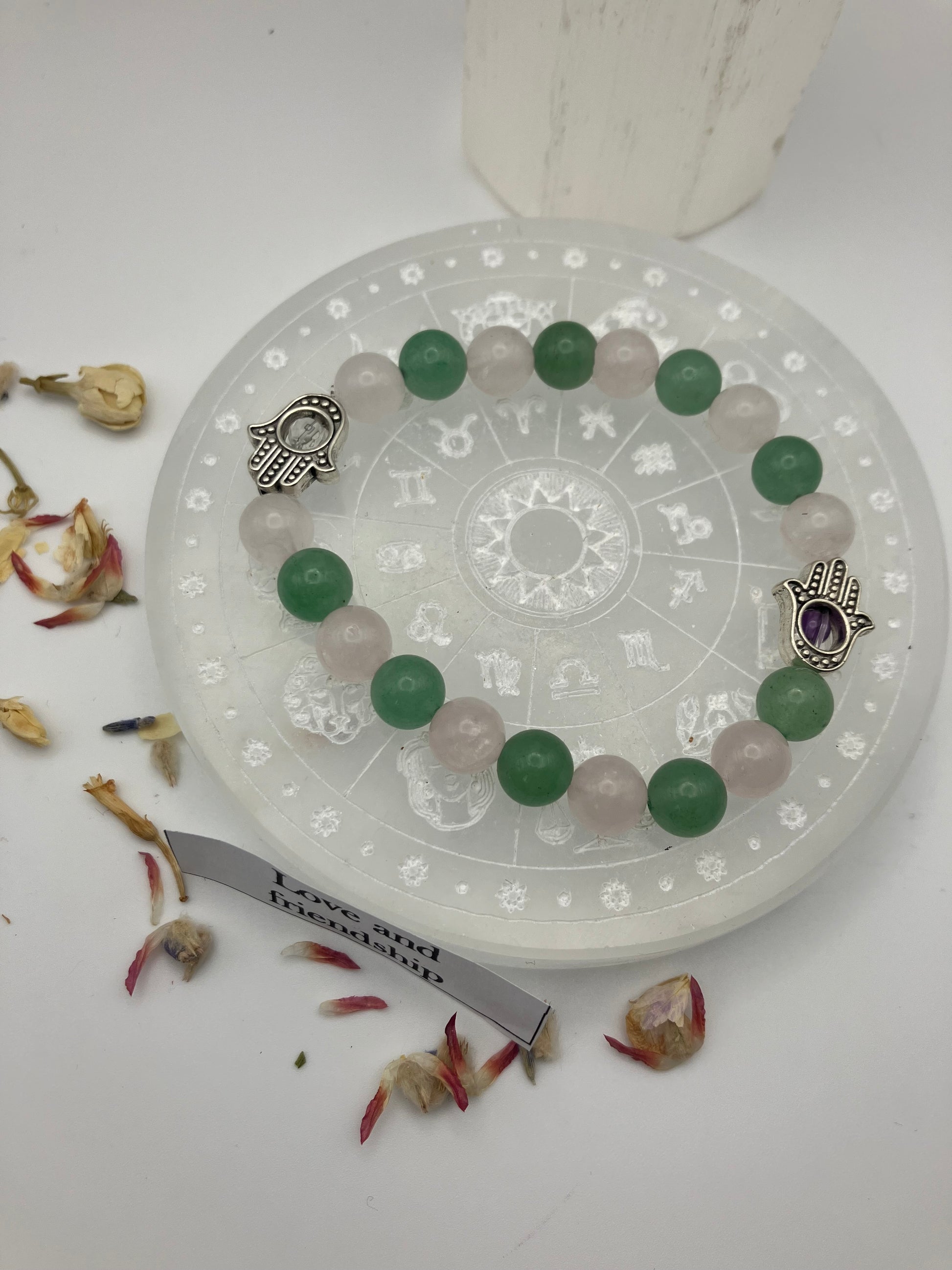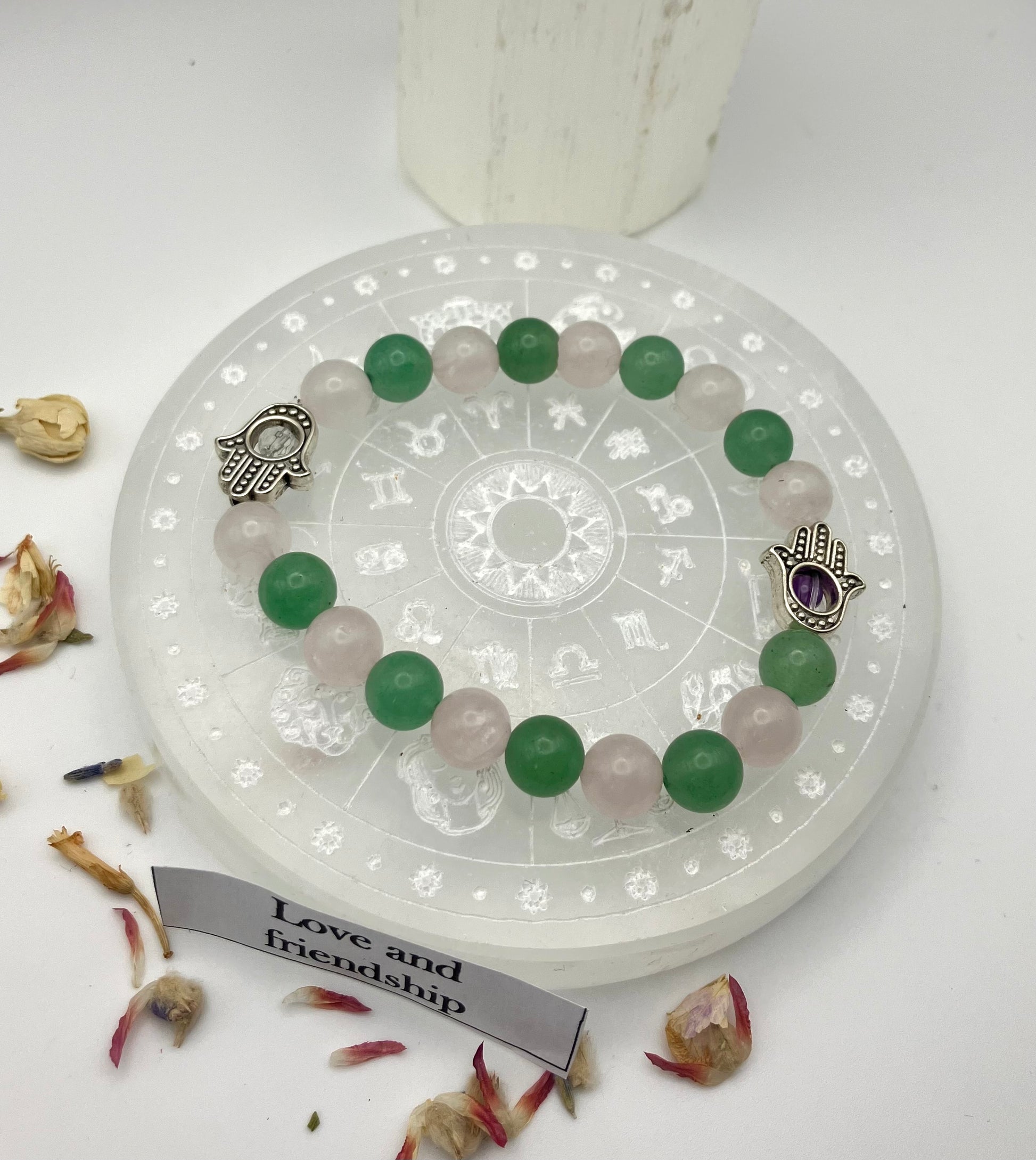 Intuitively created gemstone bracelet. Heart / Thymus Chakra. Love, self love, friendhip, boundaries and balance. 8mm.