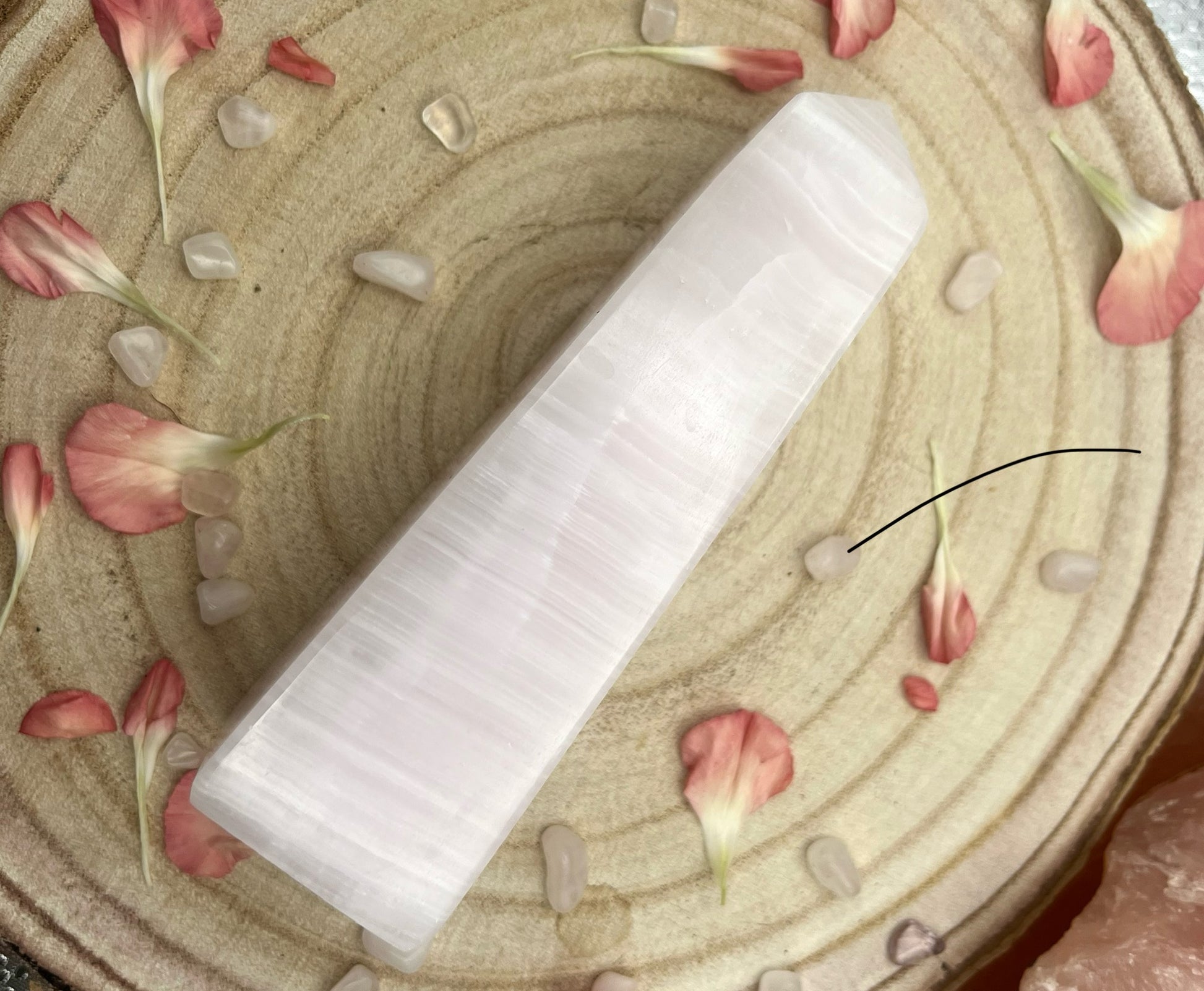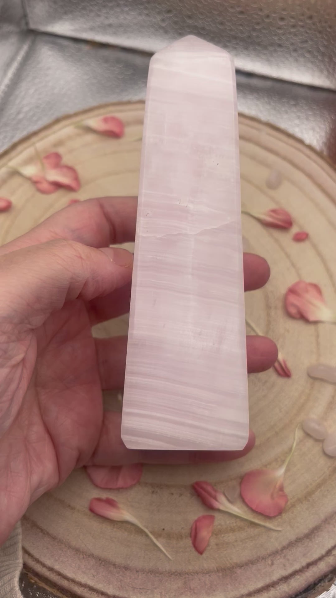Carrying energy of self love and self healing. Mangano calcite is not only a crystal great for helping to build self esteem but it also works very well anxiety as well as grief - especially when paired with amethyst and smoky quartz.