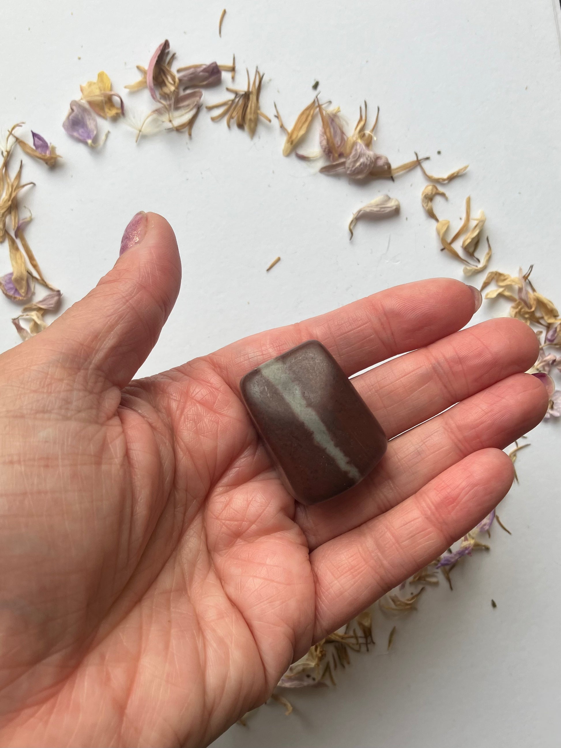 Shiva Lingham is another stone used for balancing hormonal and sexual energy. It has been used as a symbol of fertility in Hinduism throughout history. The stone carries a lovely earthy energy and can be helpful for grounding the lower chakras as well as working with the sacral chakra.