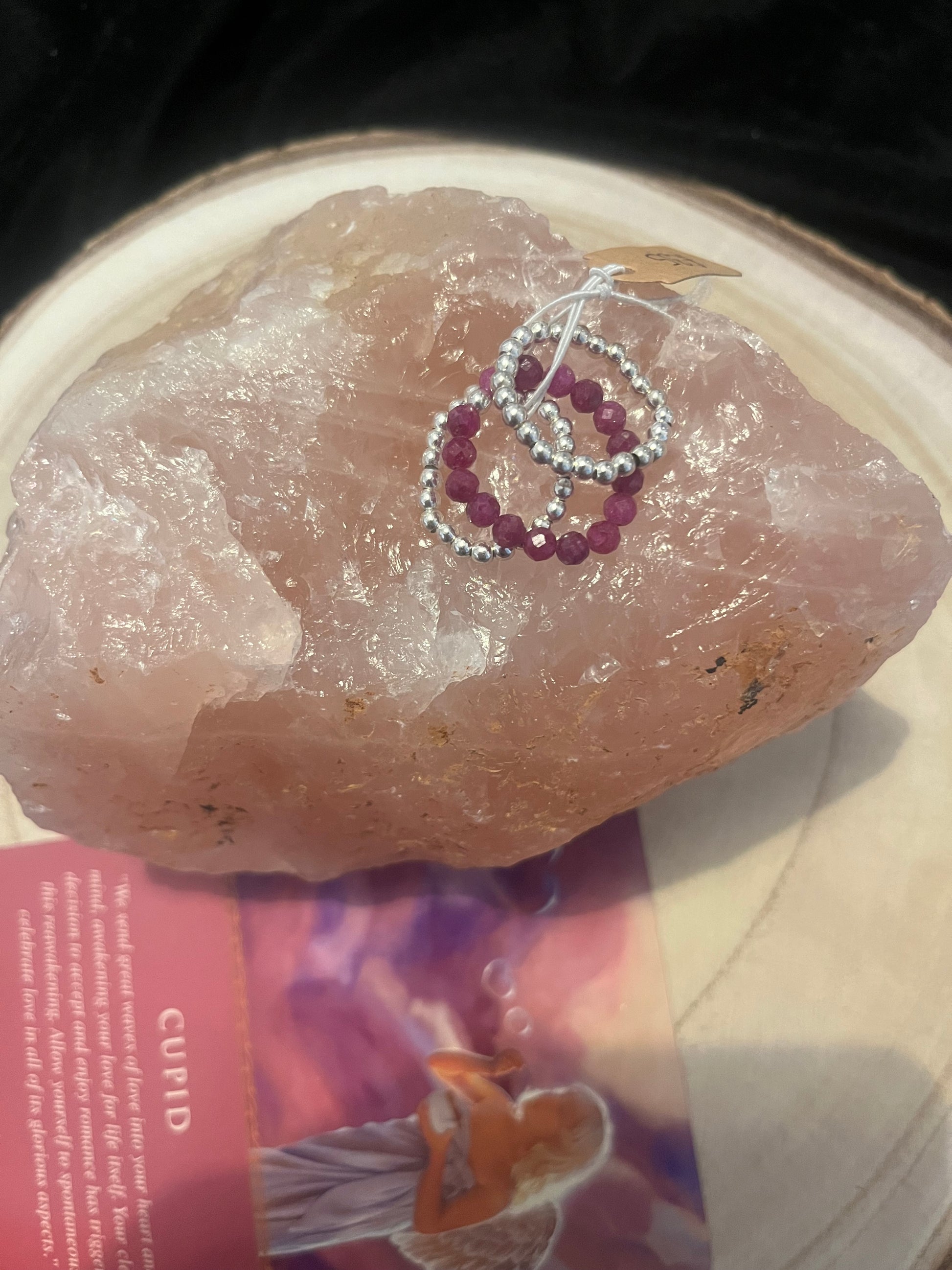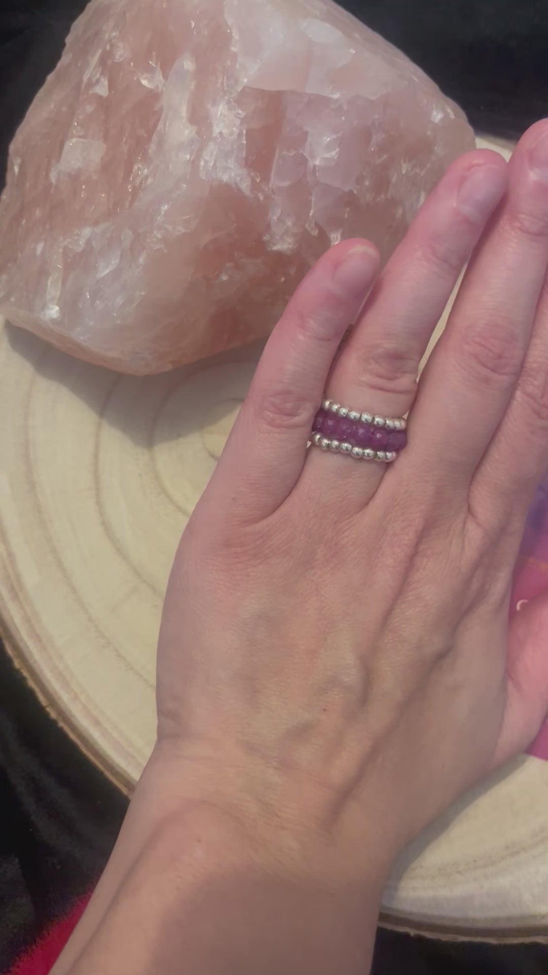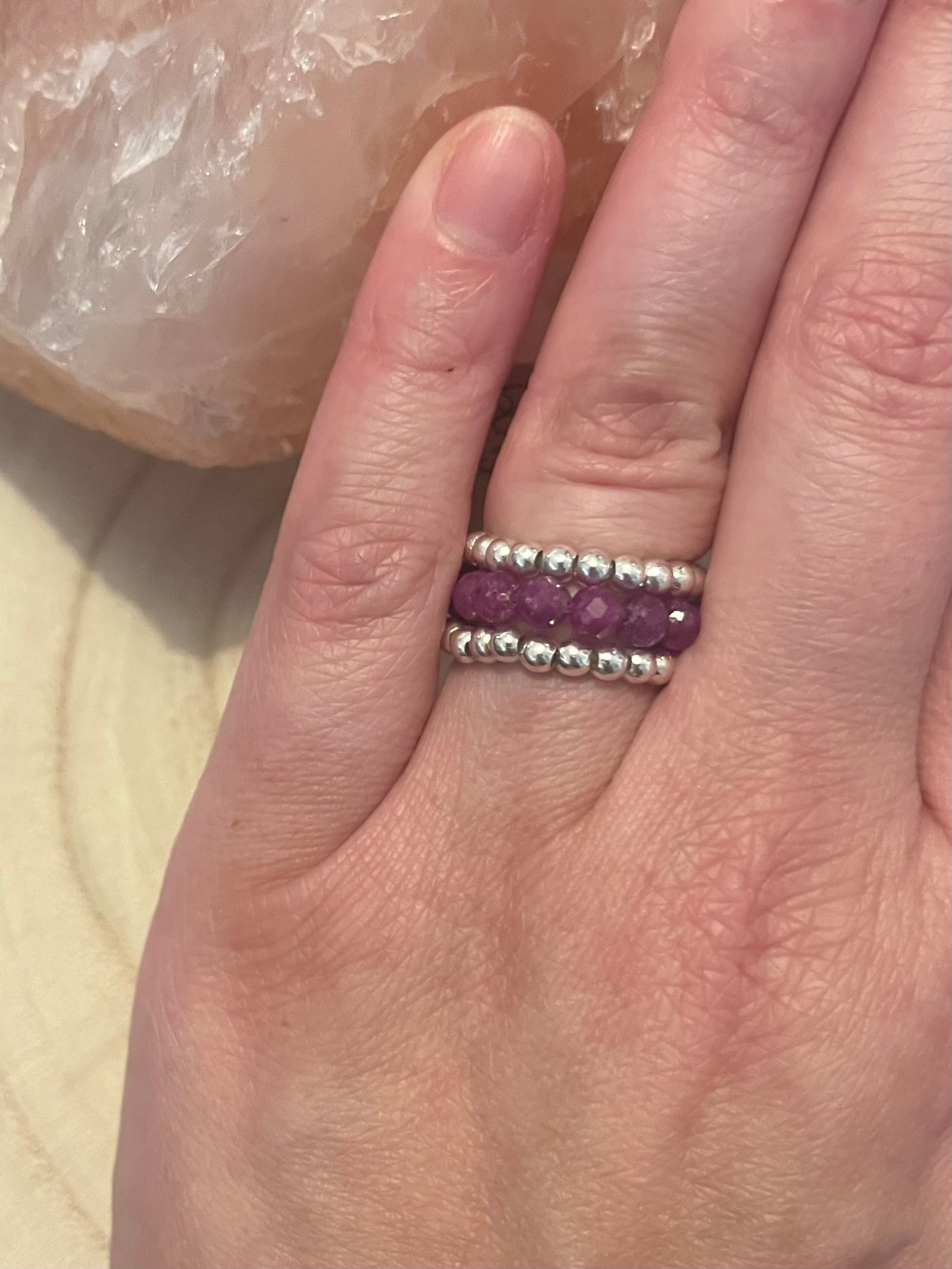 Ruby and Sterling Silver ring stack. Stretchy rings.