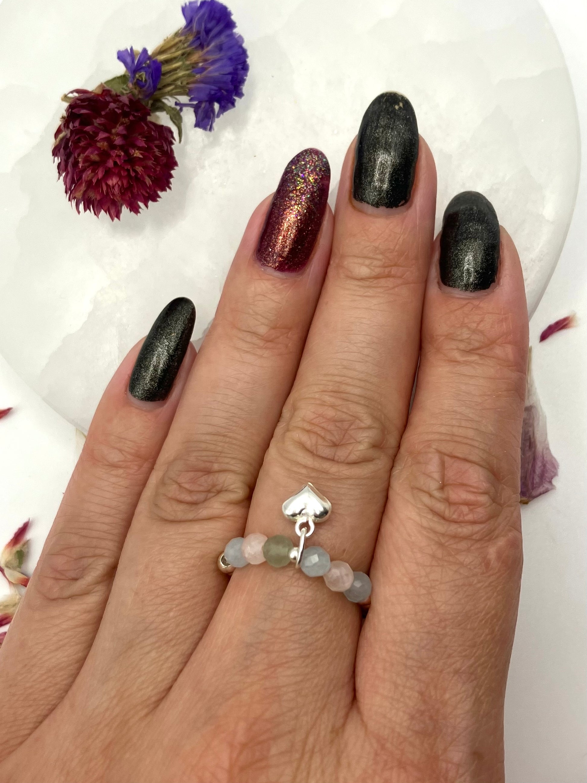 💫 All rings are intuitively handmade by me, beads are sourced ethically from small businesses and bracelets are regularly cleansed and charged using the full moon, selenite and smudging. All pieces will be passed through sage before leaving.