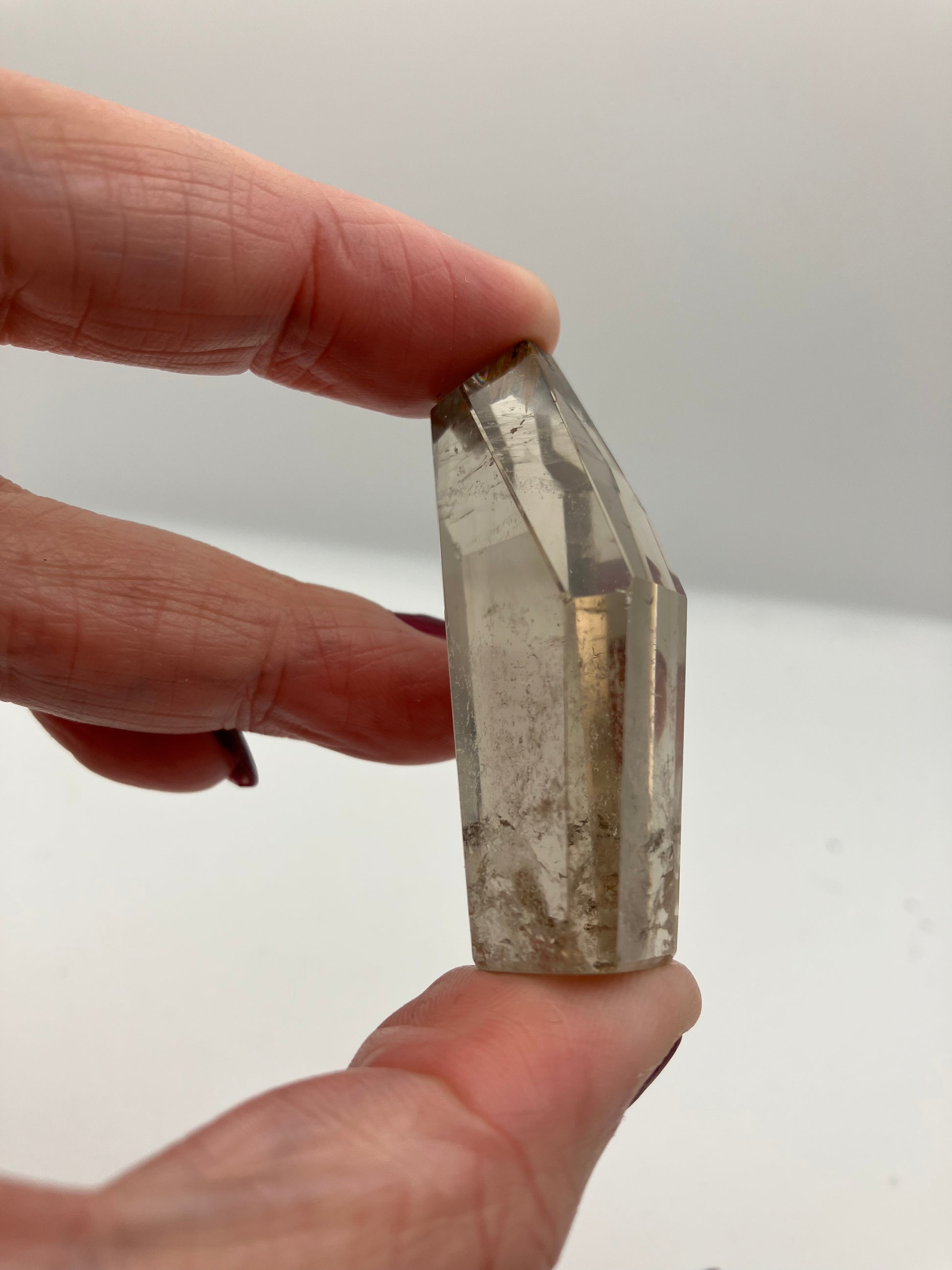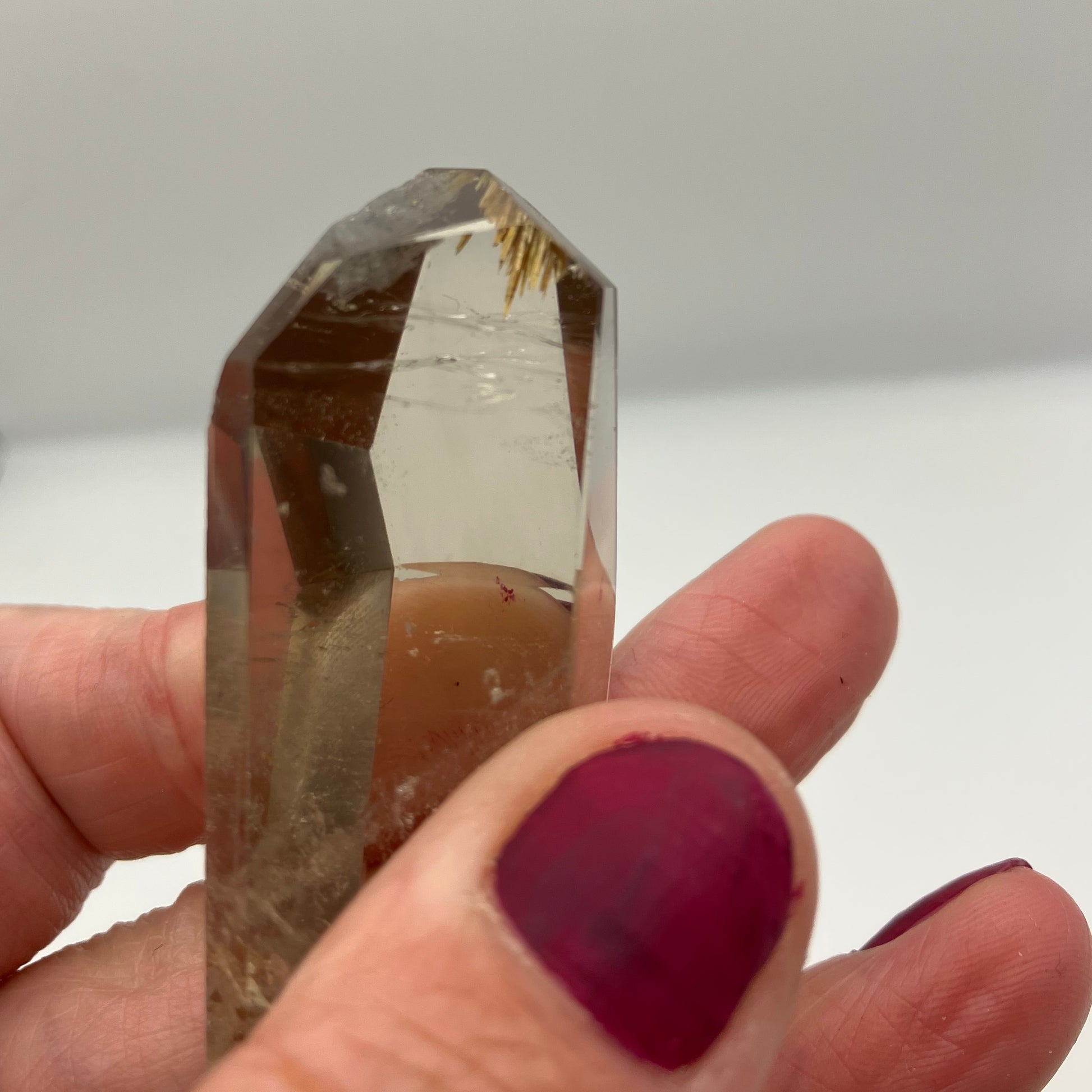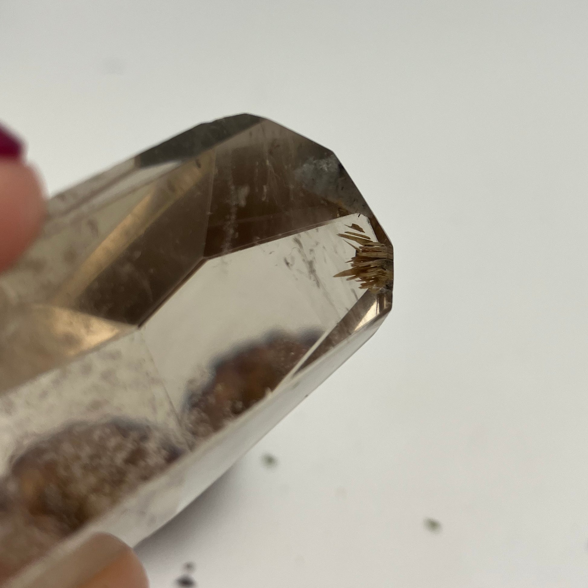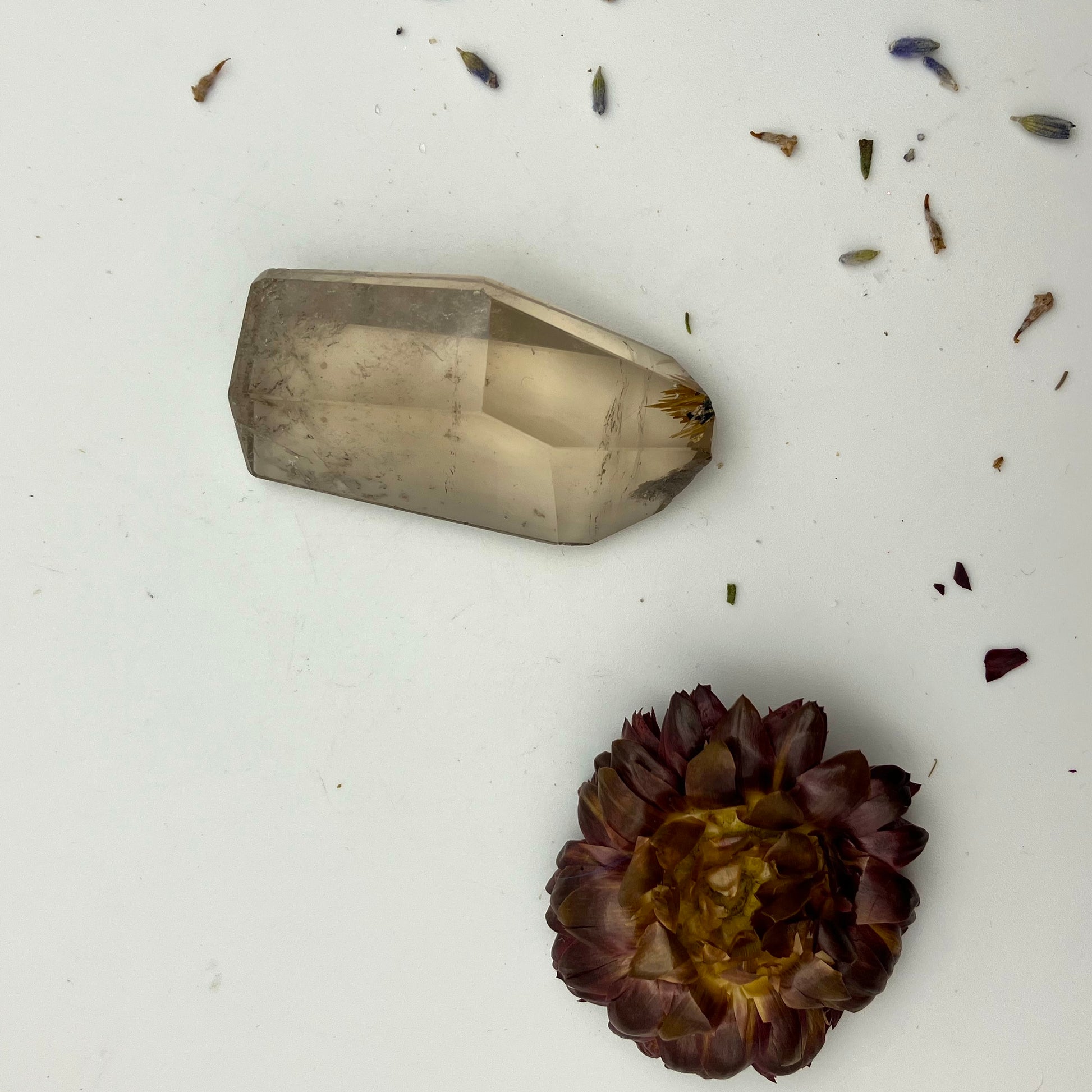 Smoky Quartz Freeform with little golden rutile inclusion at tip.