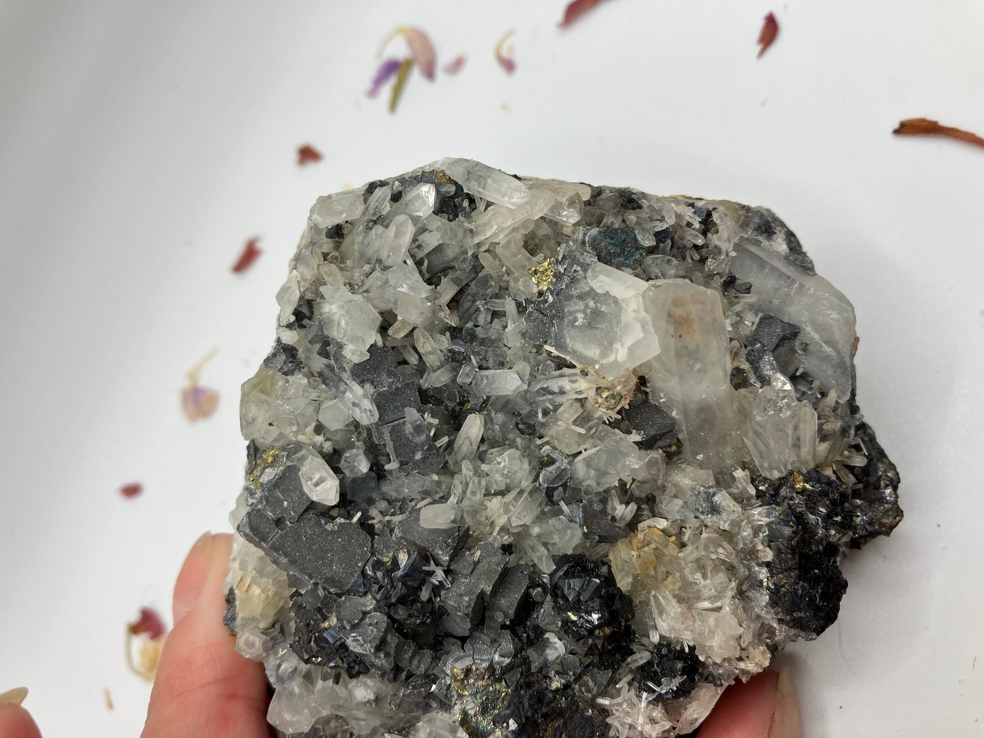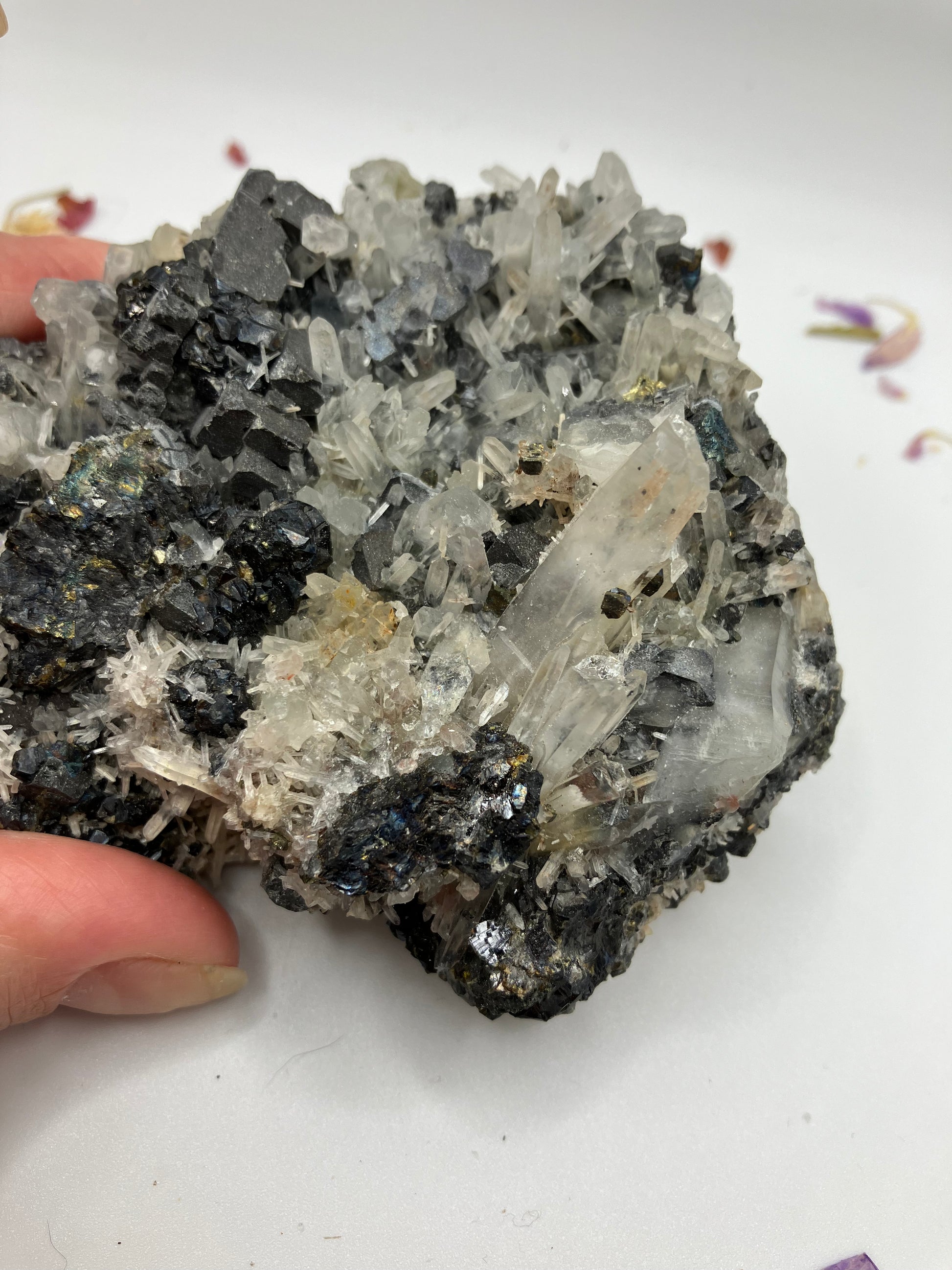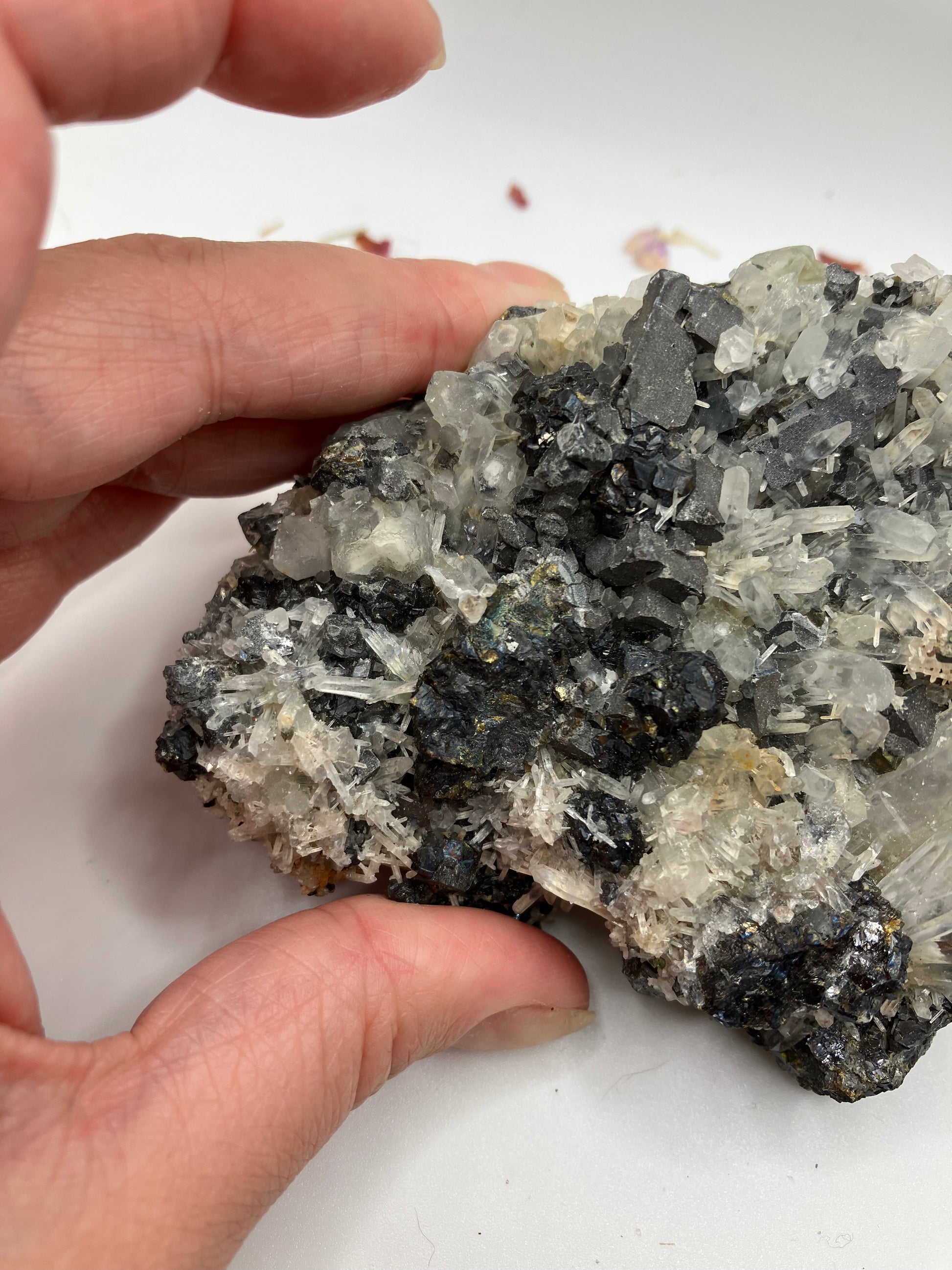 Galena and Black Sphalerite with Quartz needles. 393 g