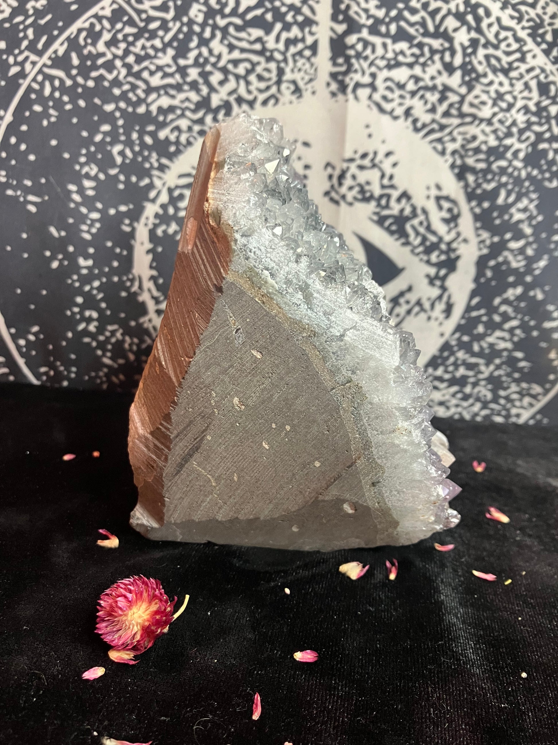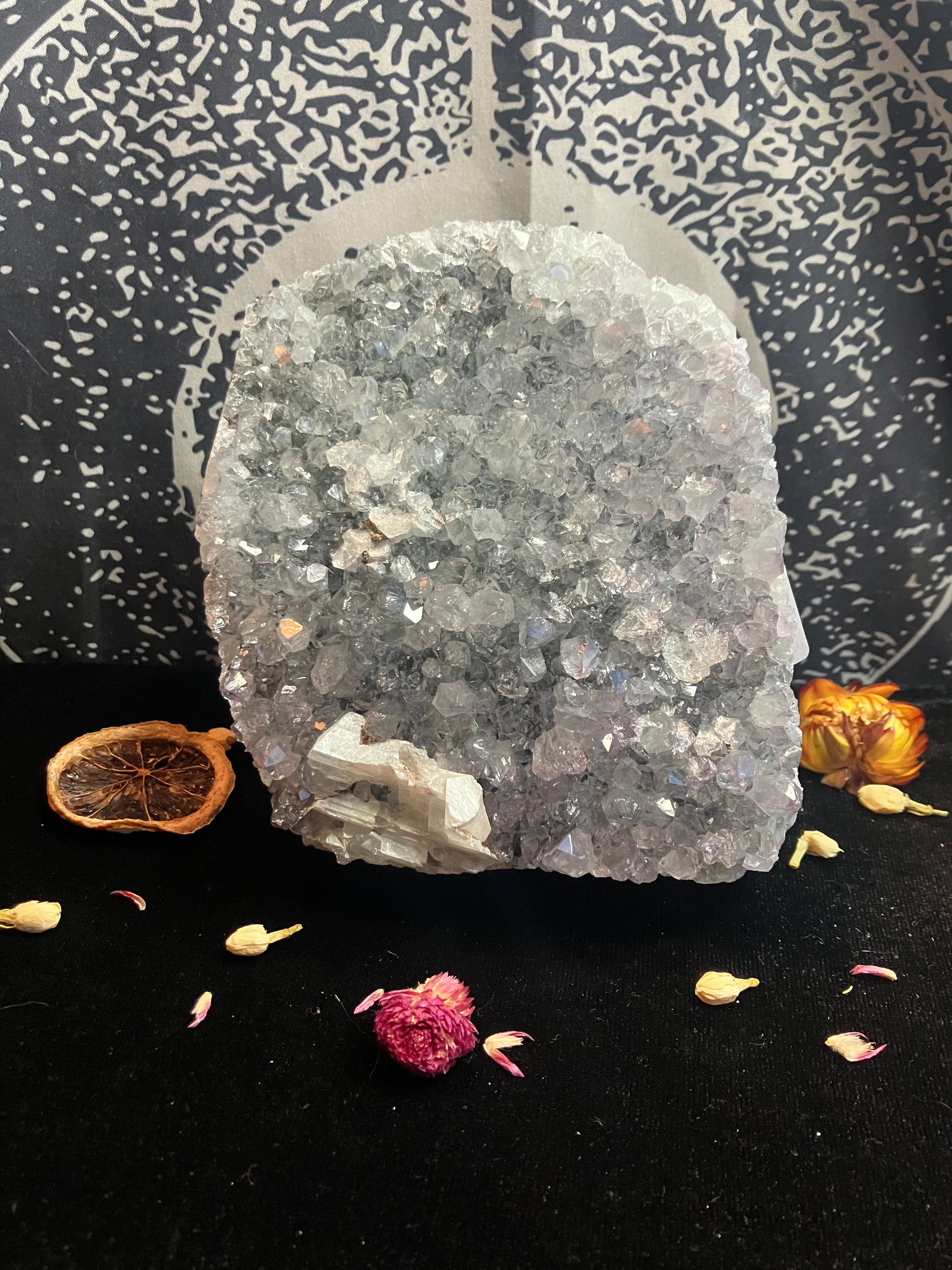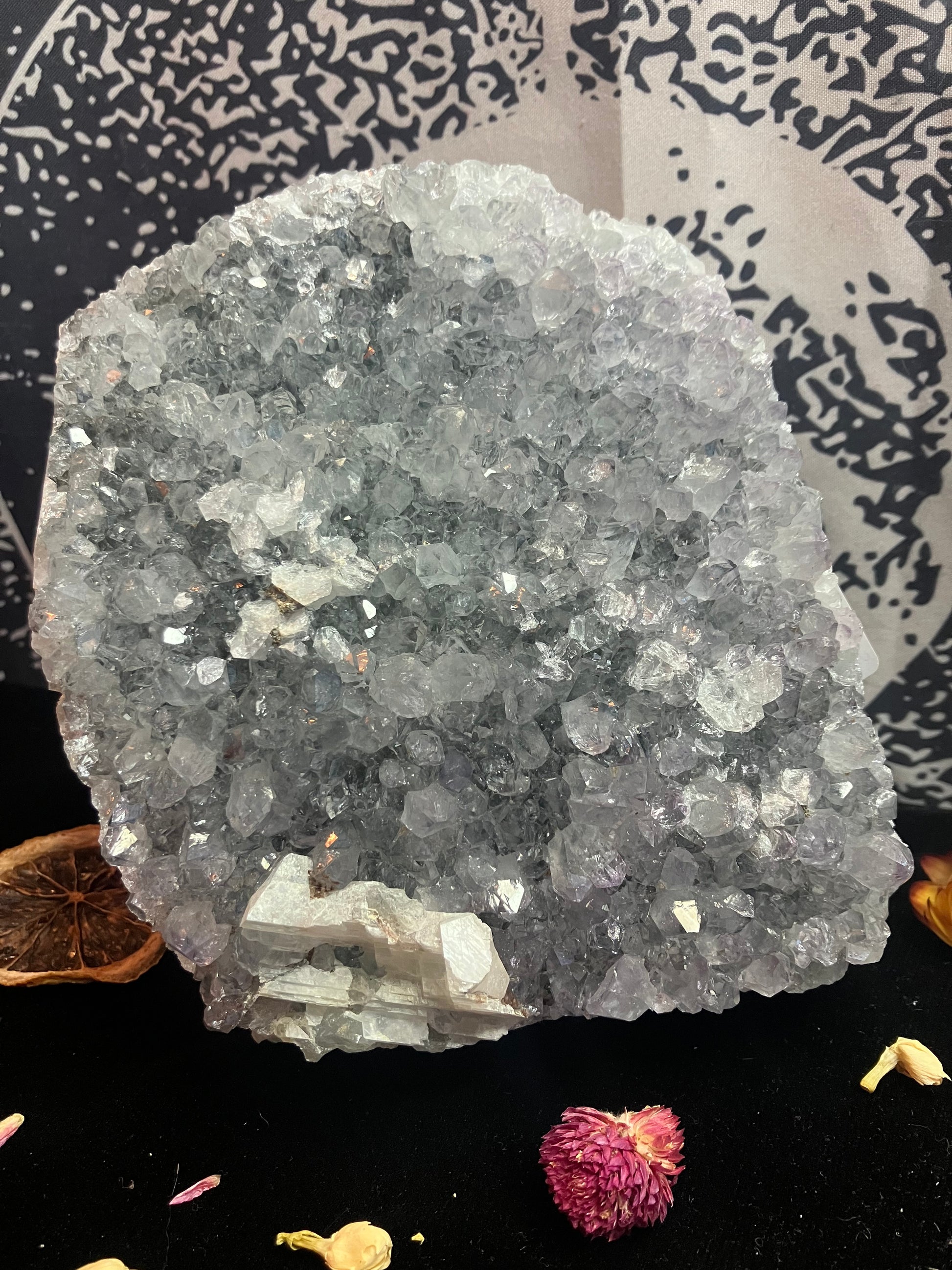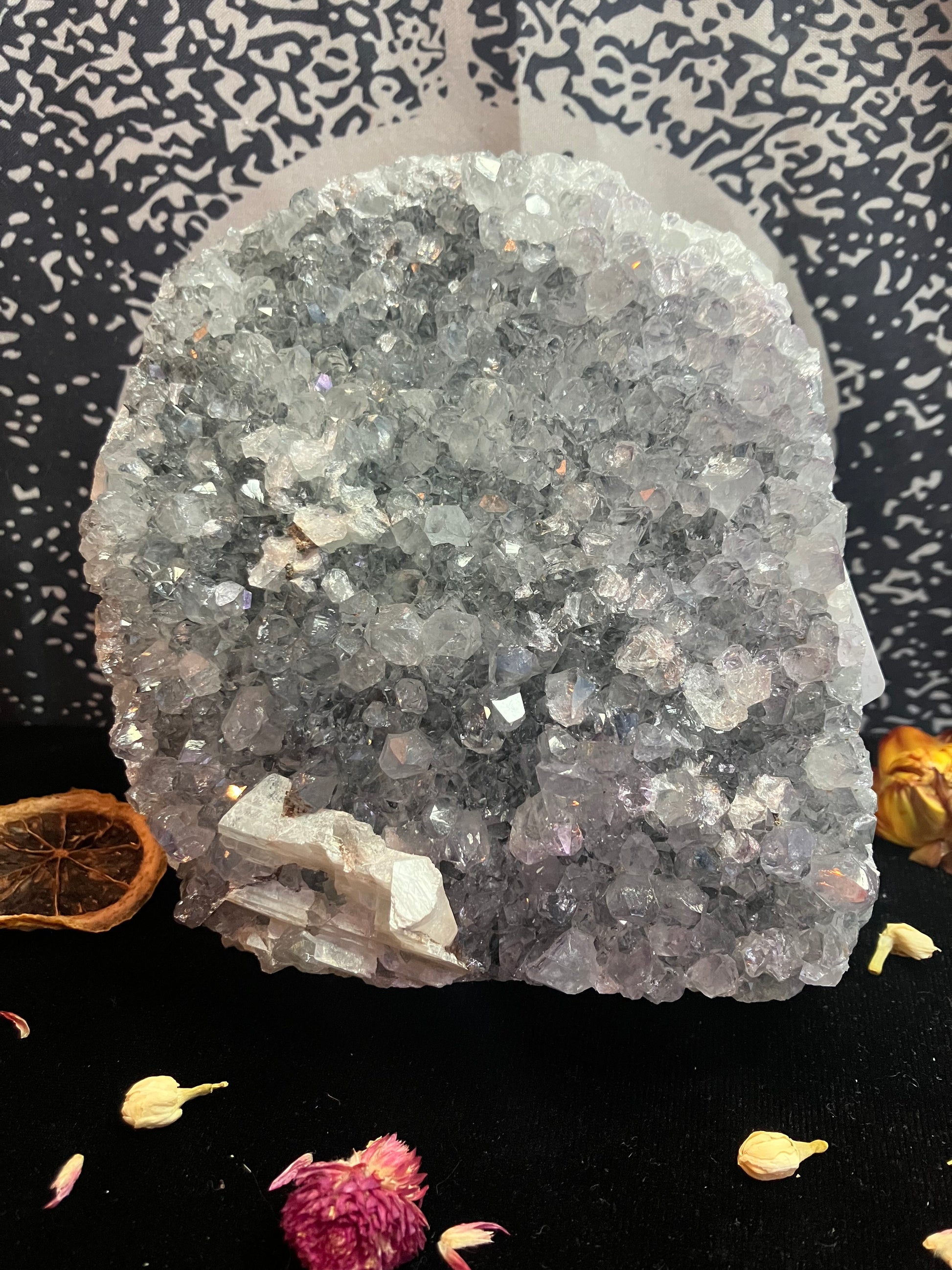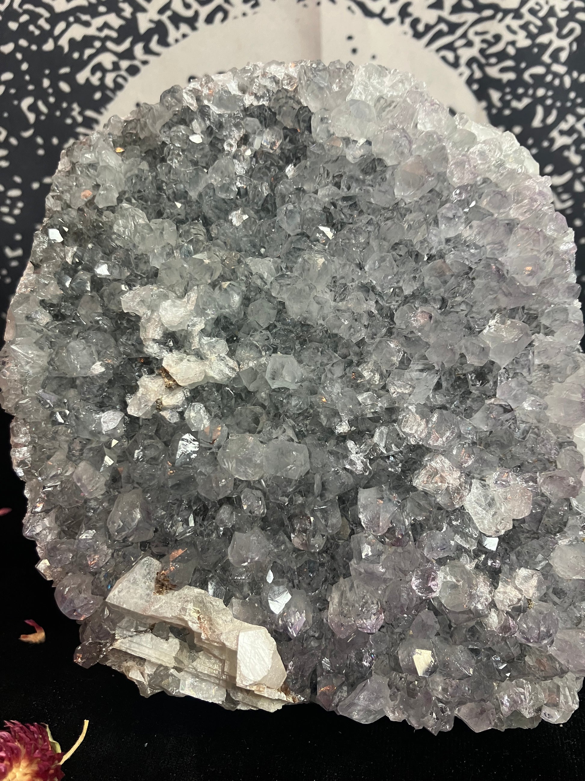 Snowy Amethyst Druze with calcite- 1Kg stand up piece