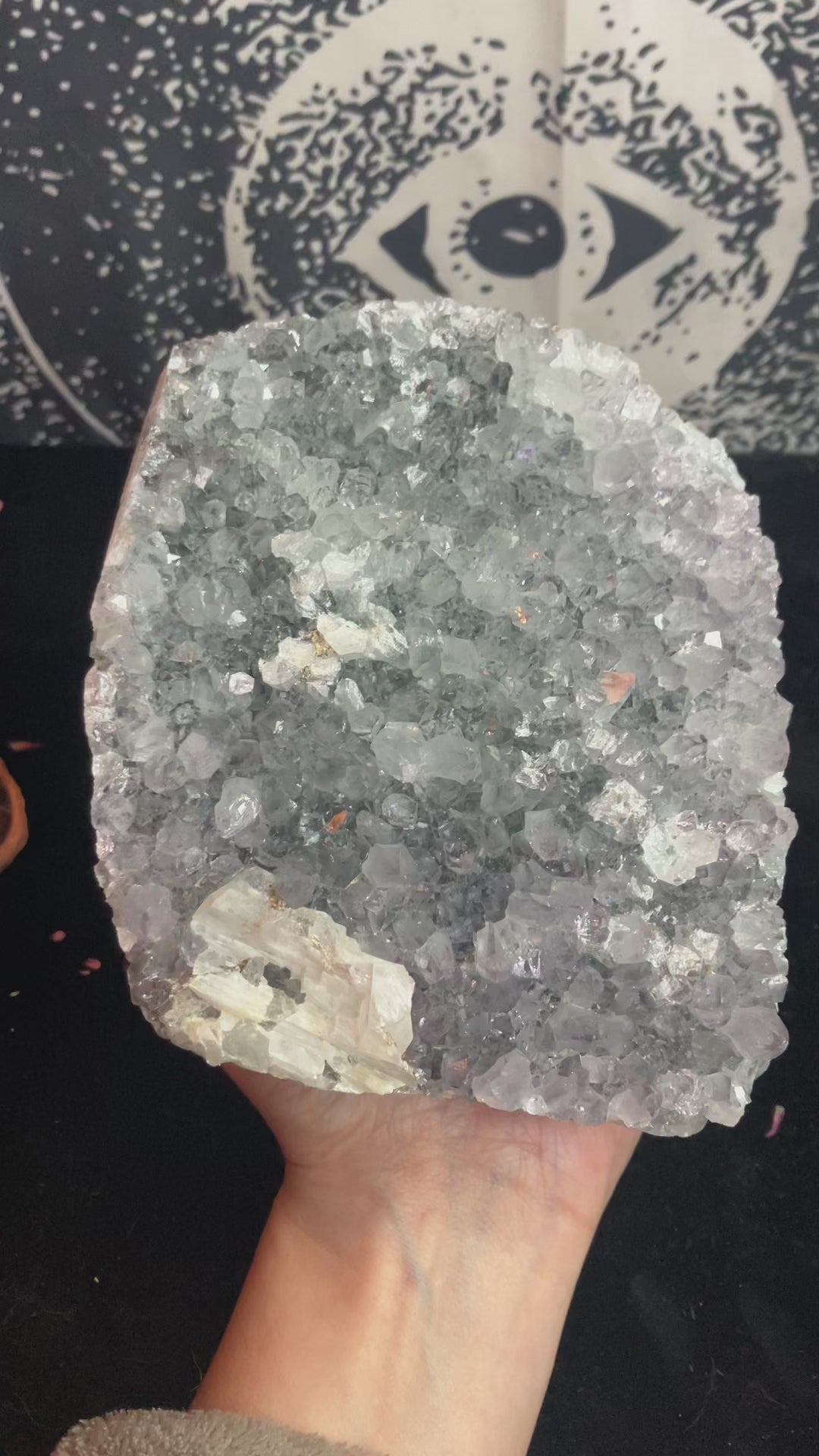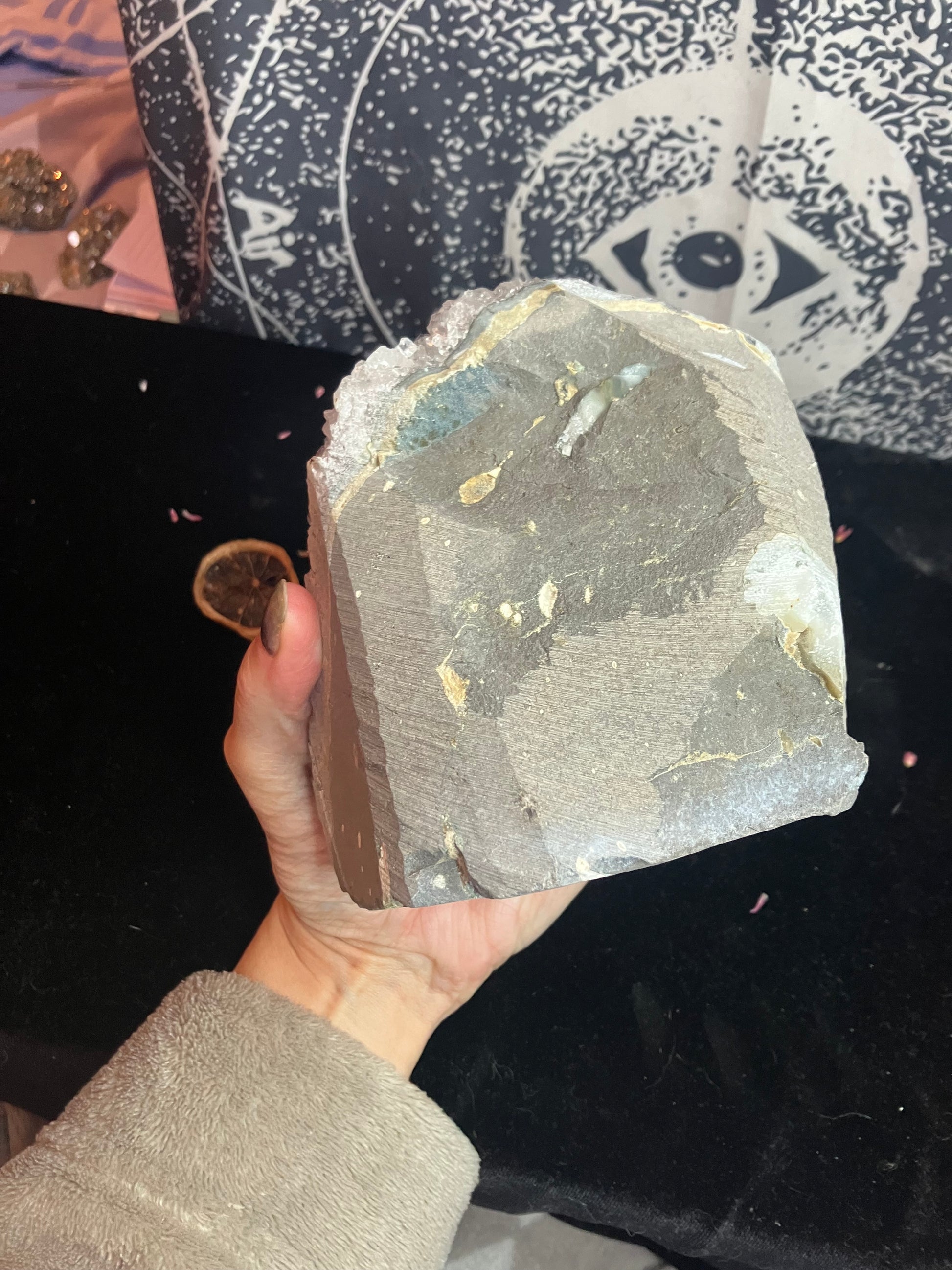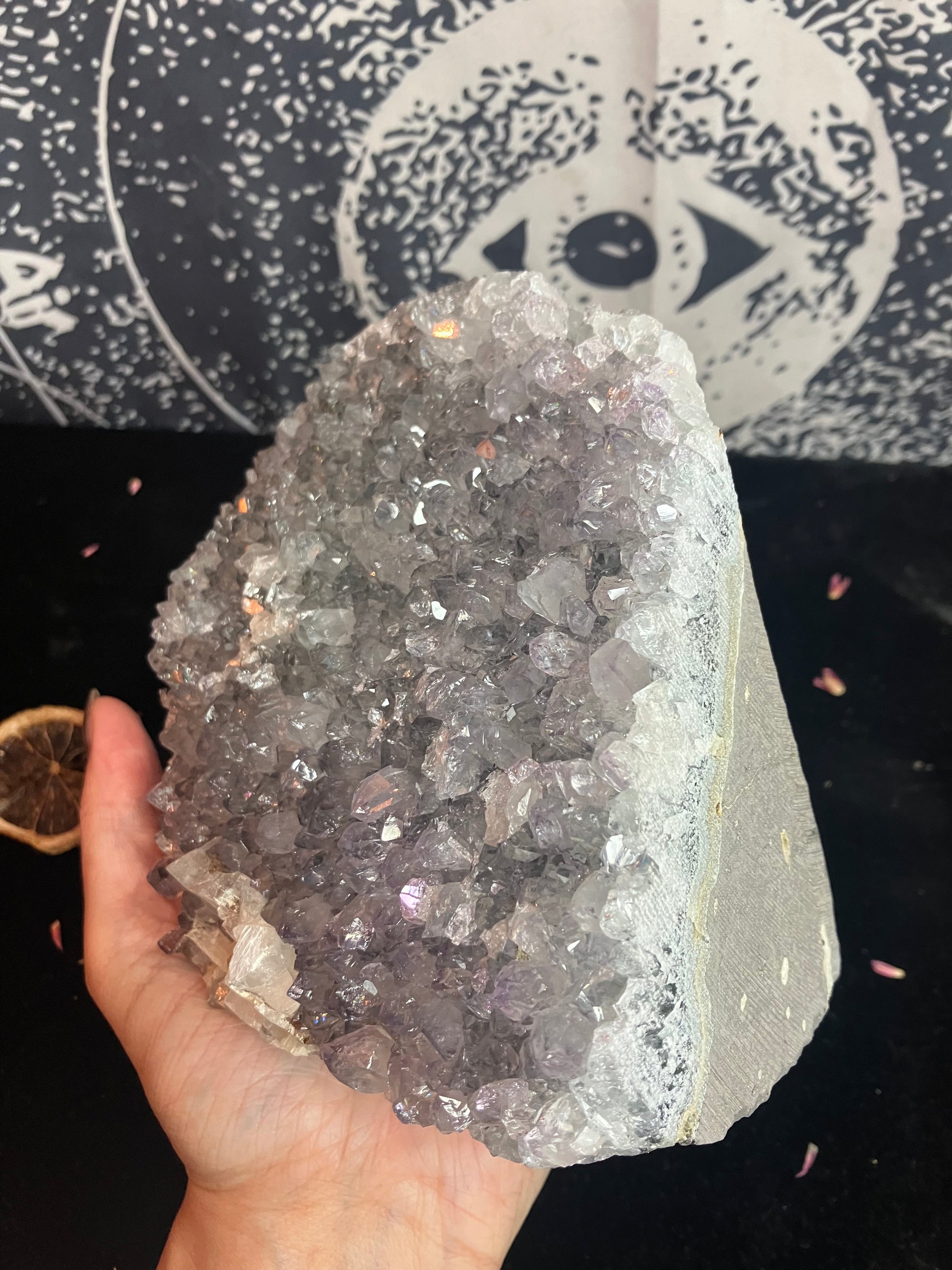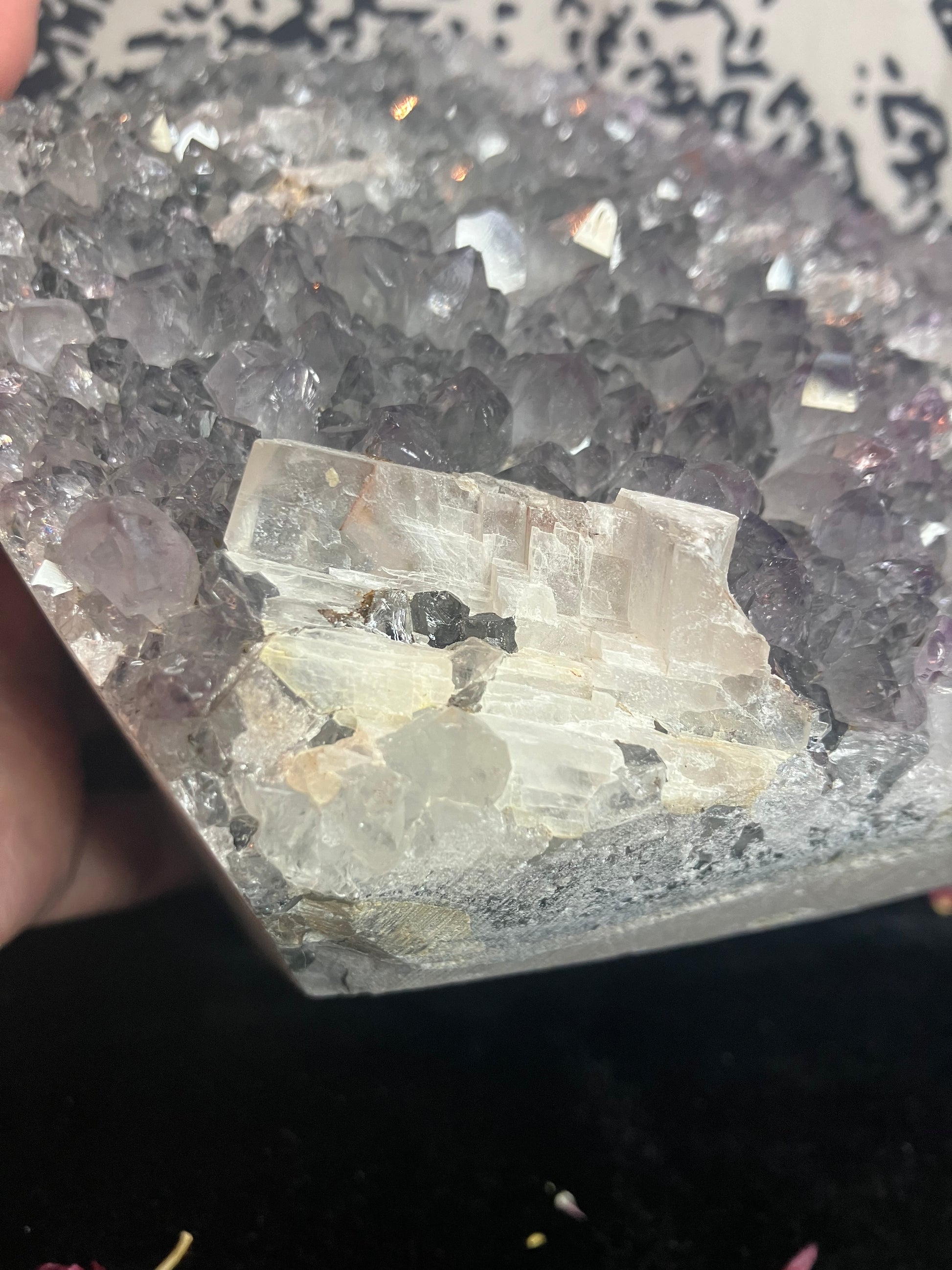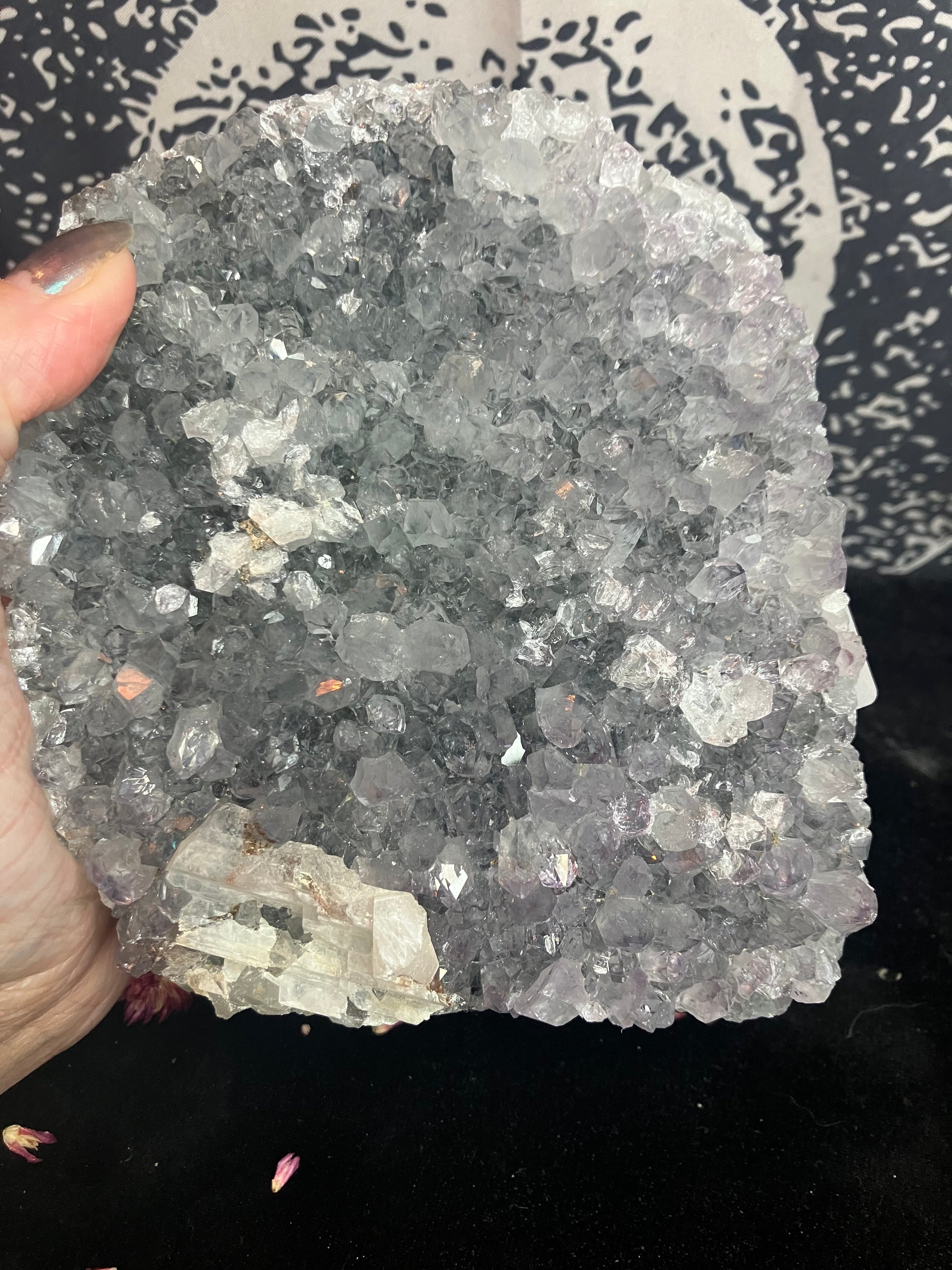 Large stunning piece of snowy amethyst with white calcite. Super sparkly with amazingly calming energy.