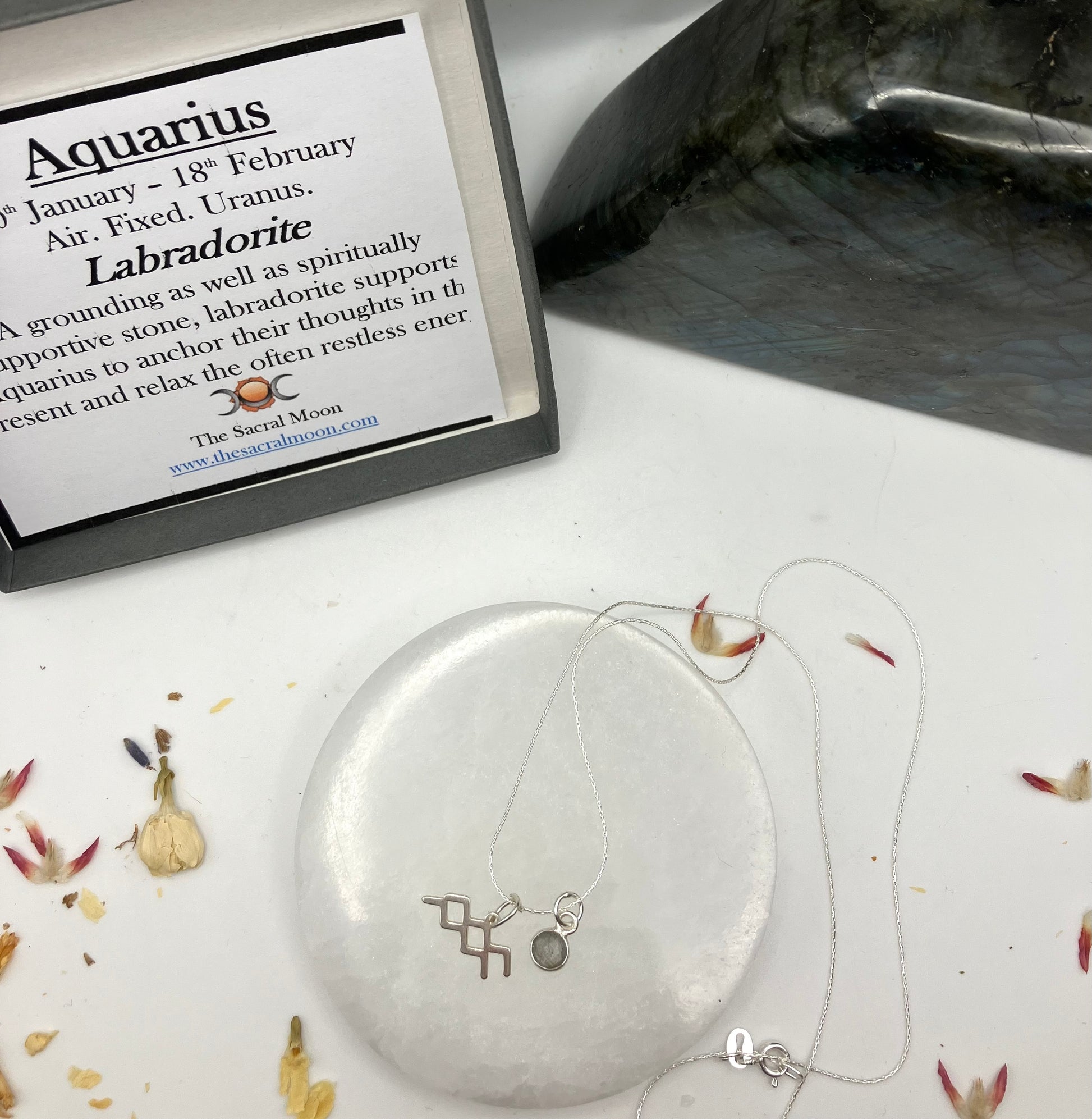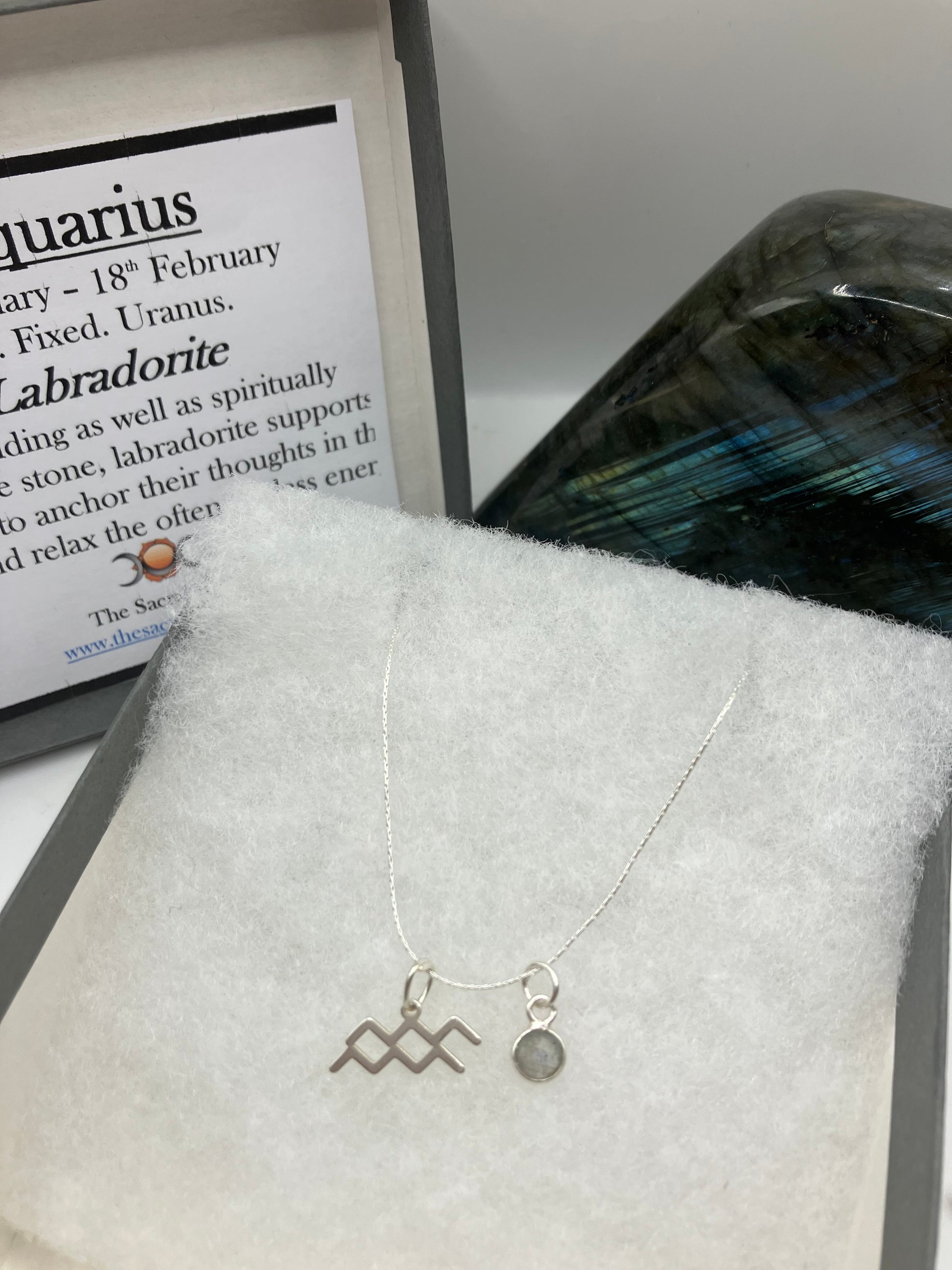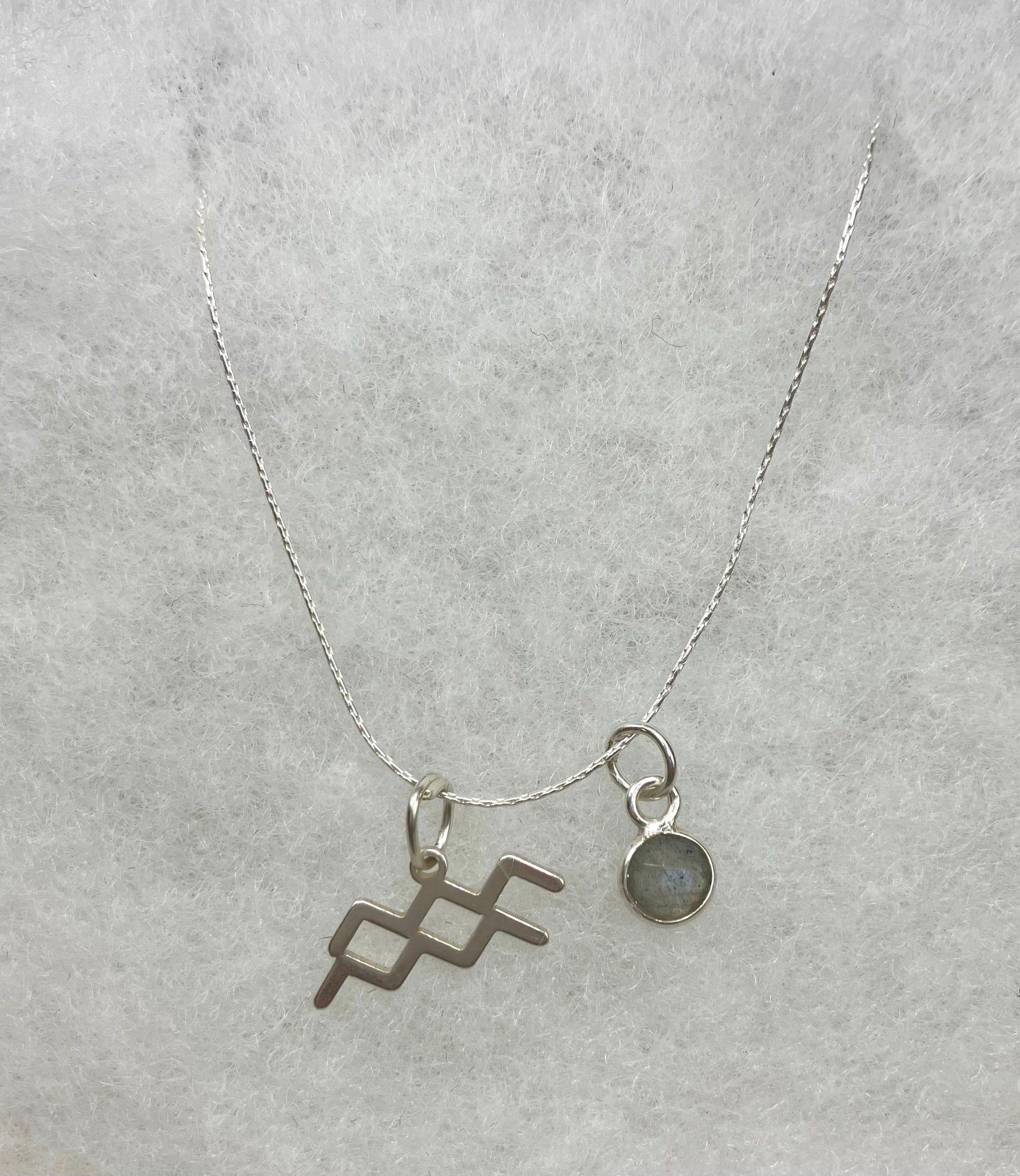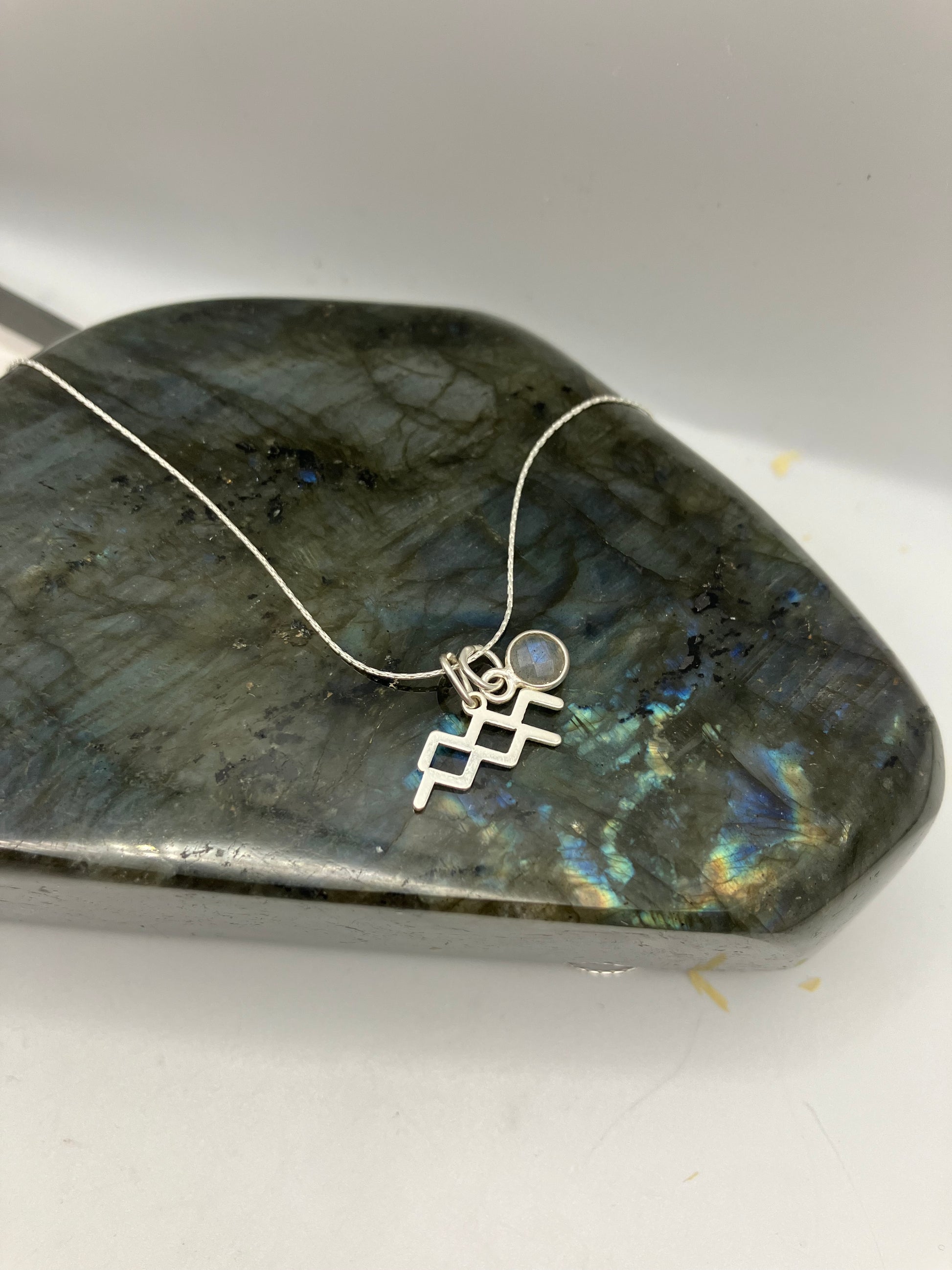 Sterling Silver Aquarius Necklace with Labradorite gem charm.