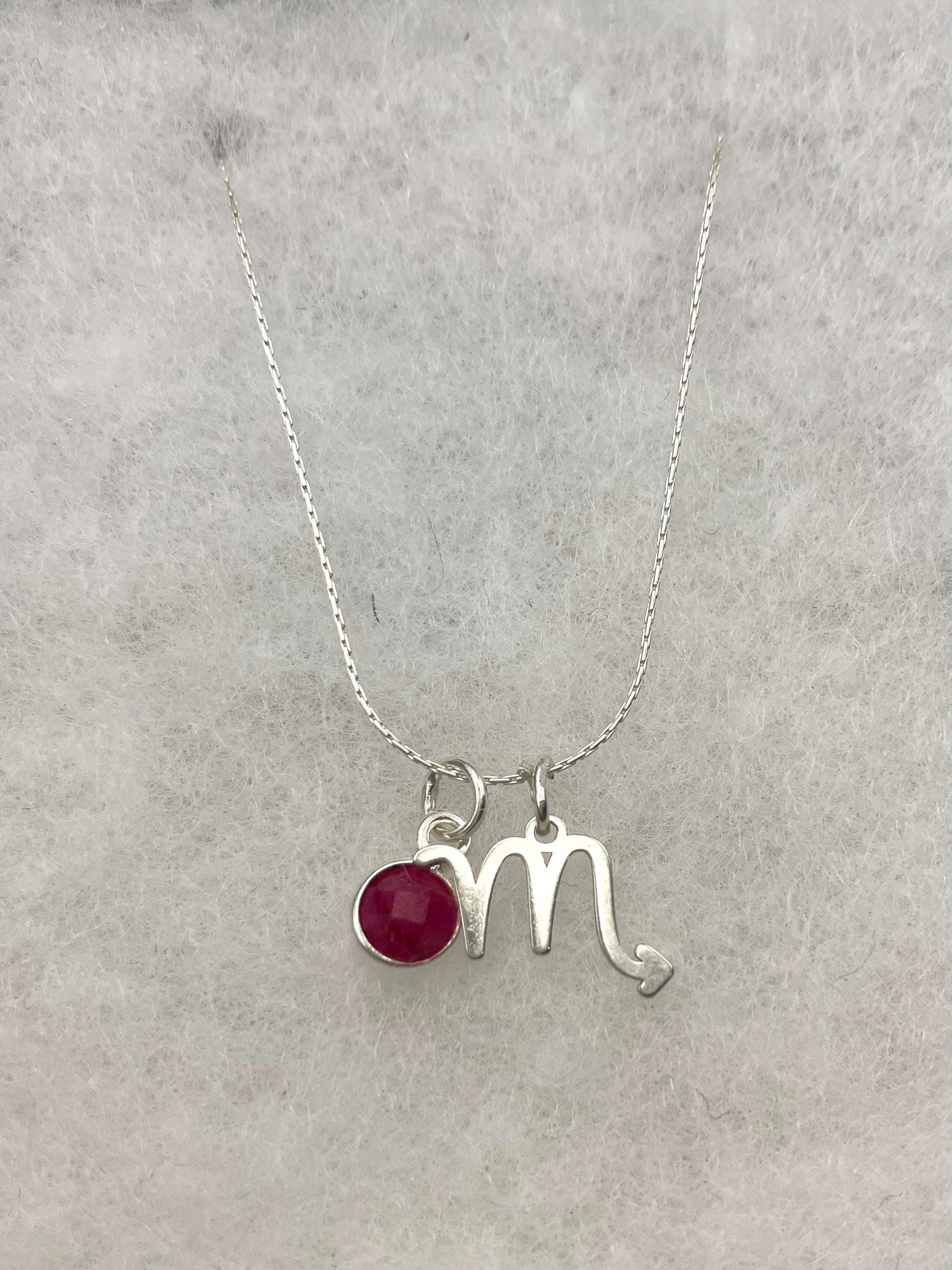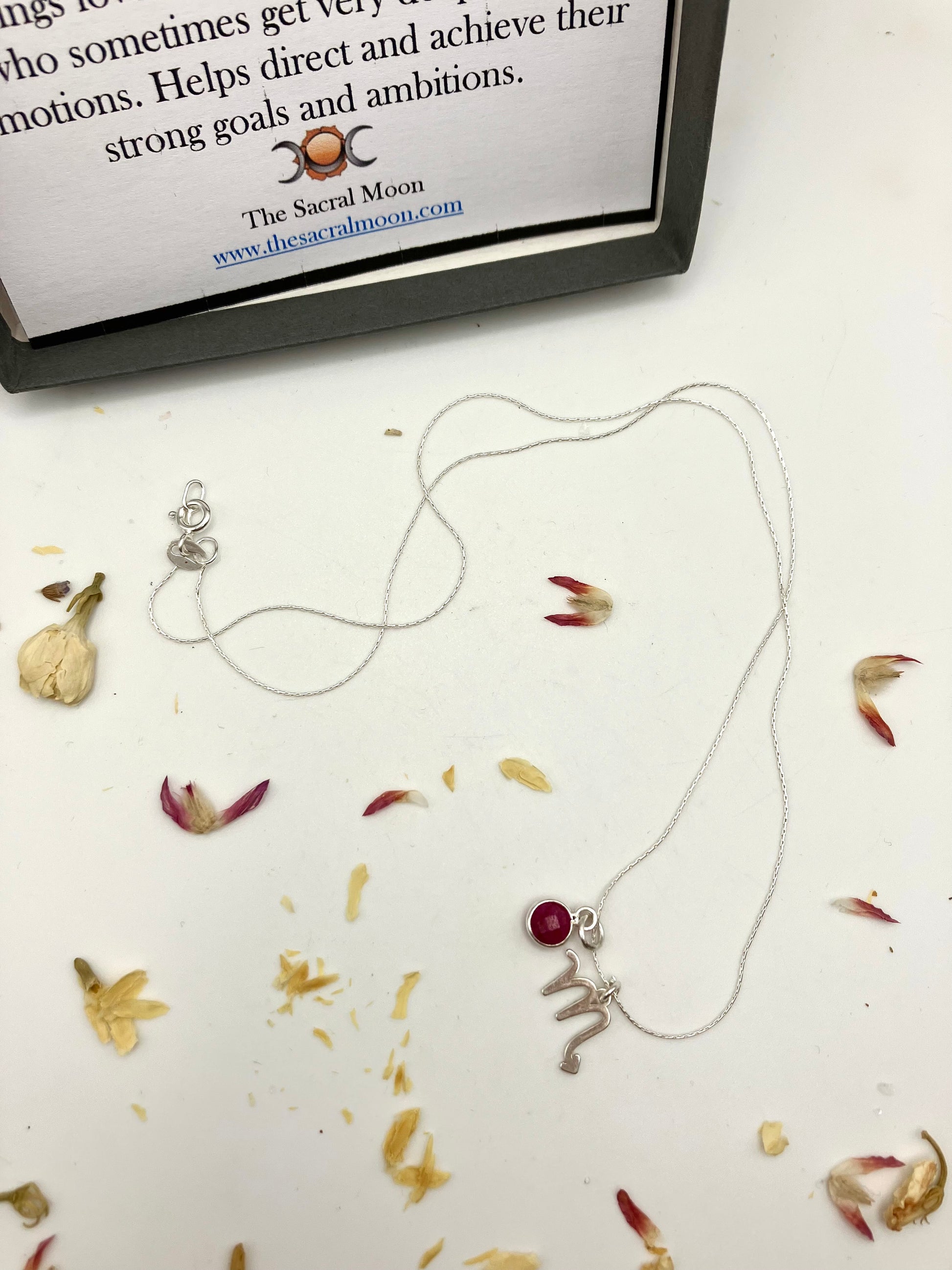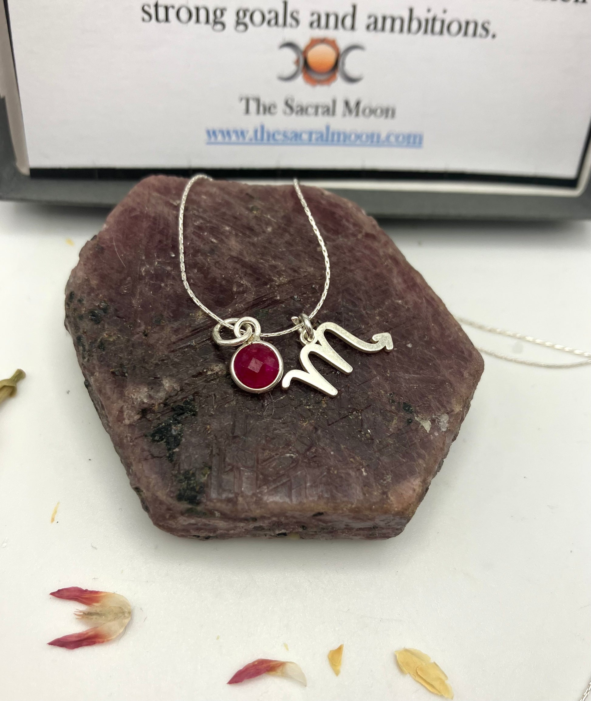 Sterling Silver Scorpio Necklace with Ruby gem charm